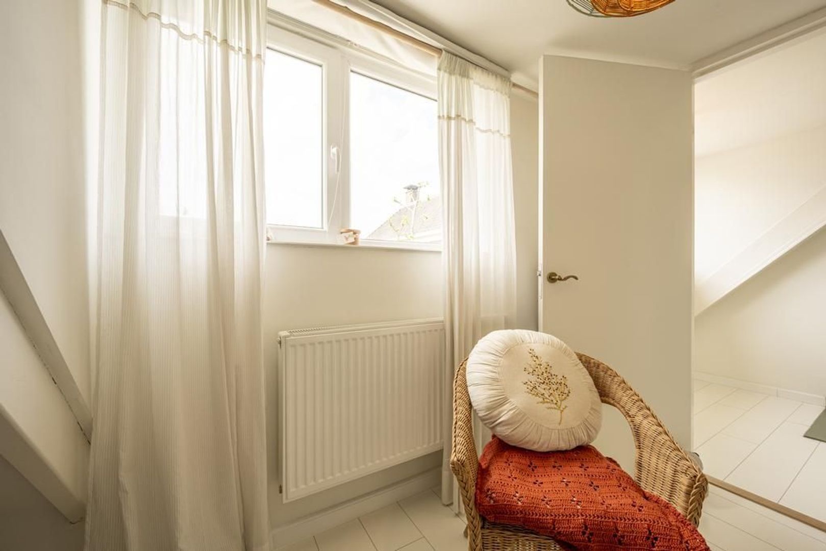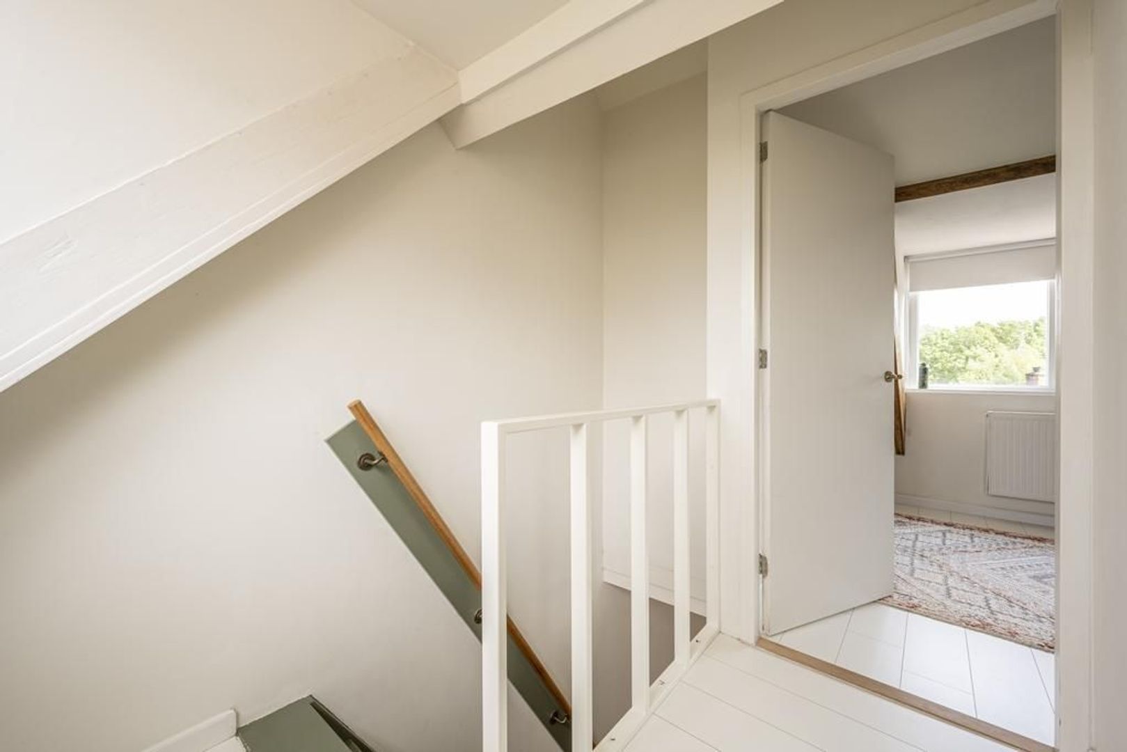 De dakkapel aan de voor- en achterkant van het huis hebben gezorgd voor meer stahoogte en licht op de verdieping. De overloop geeft toegang tot twee slaapkamers, waarvan de grootste is voorzien van een wastafel.