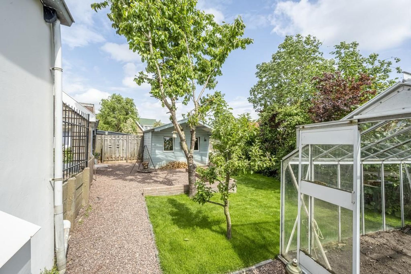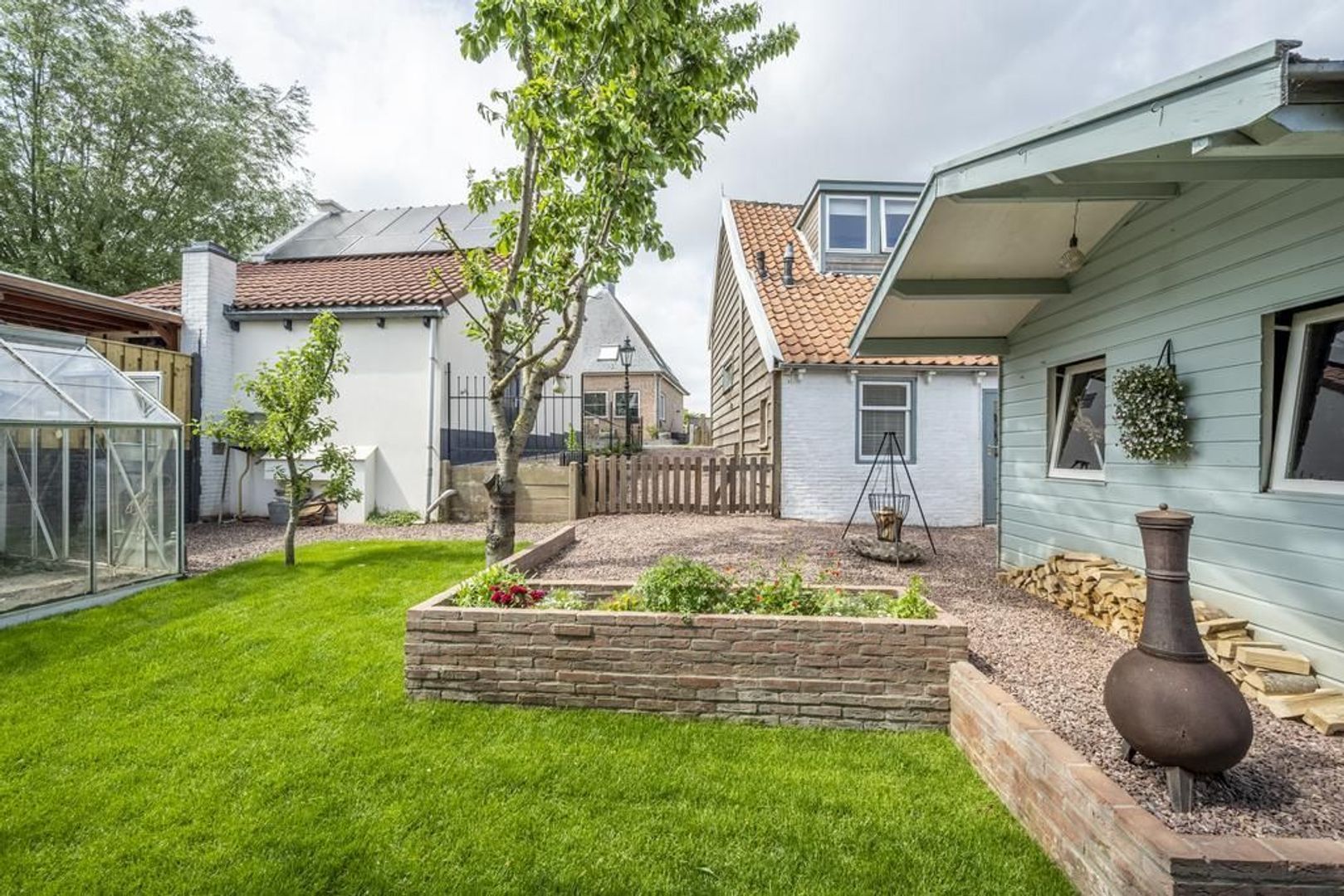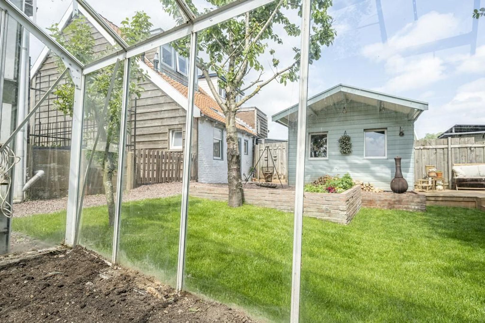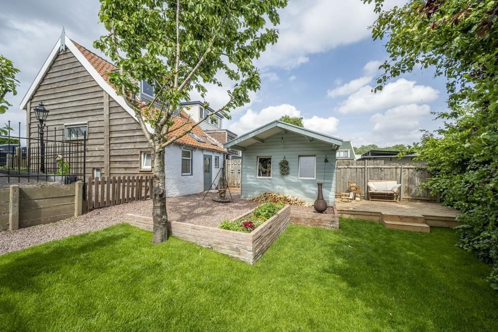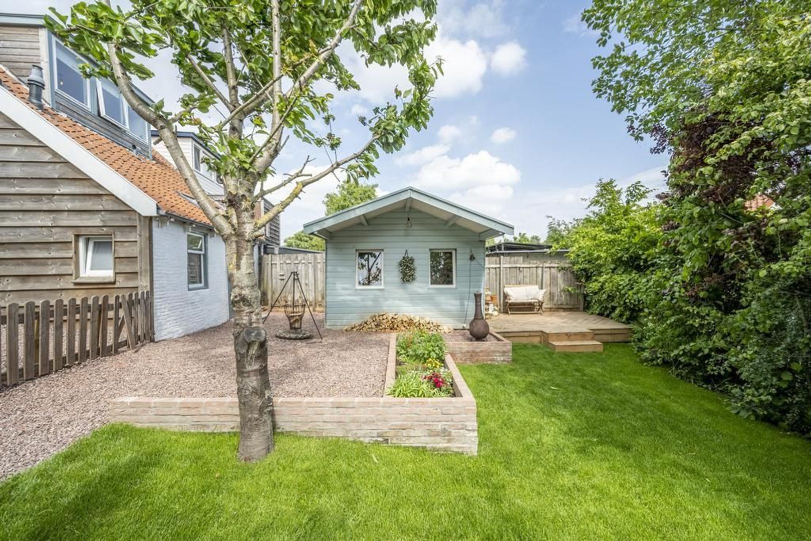 De achtertuin is mooi aangelegd met onder andere diverse terrassen, een houten berging (met aansluiting voor wasdroger) en een plantenkasje.