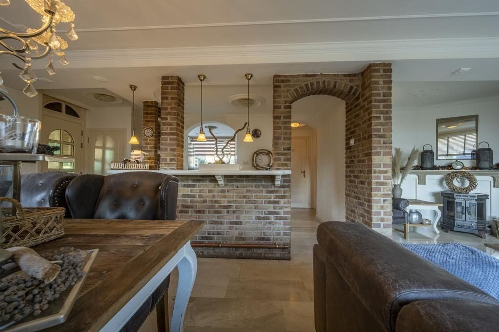 Het woongedeelte is afgewerkt met een natuurstenen vloer.
