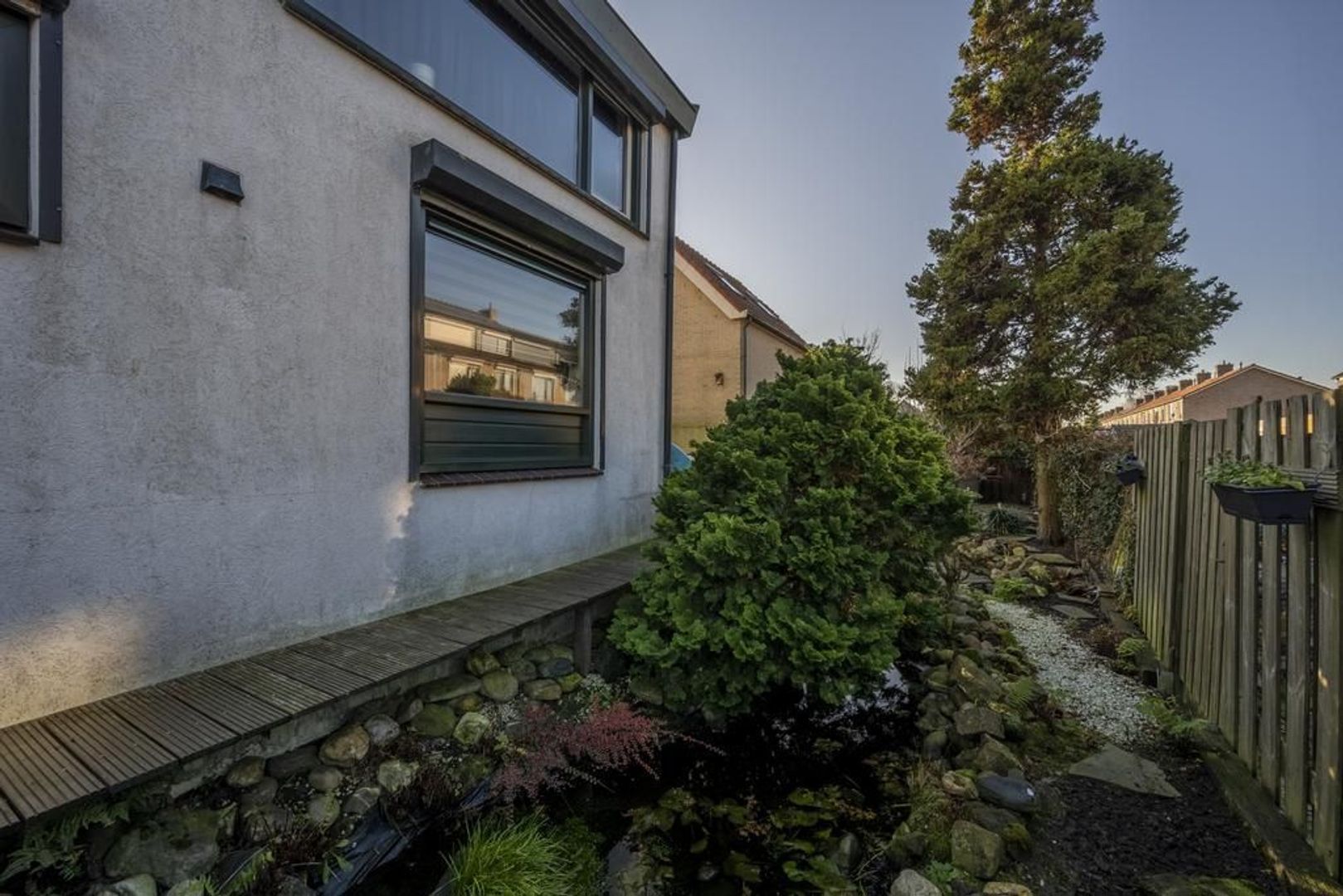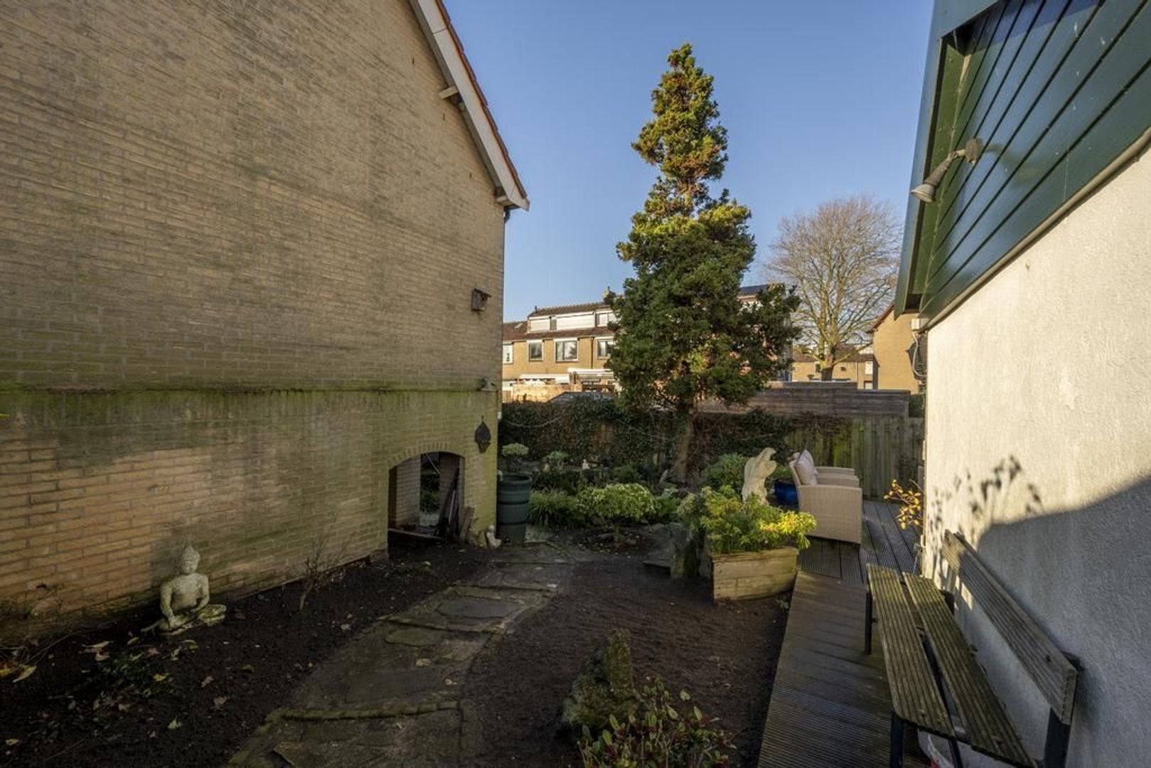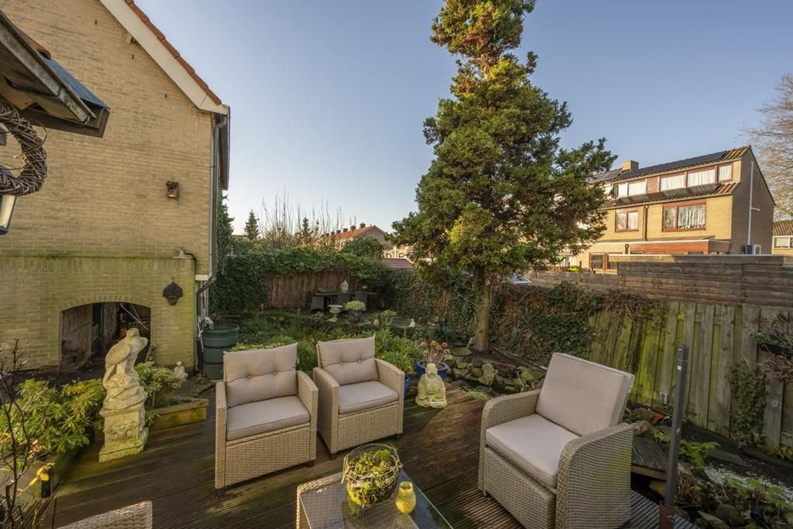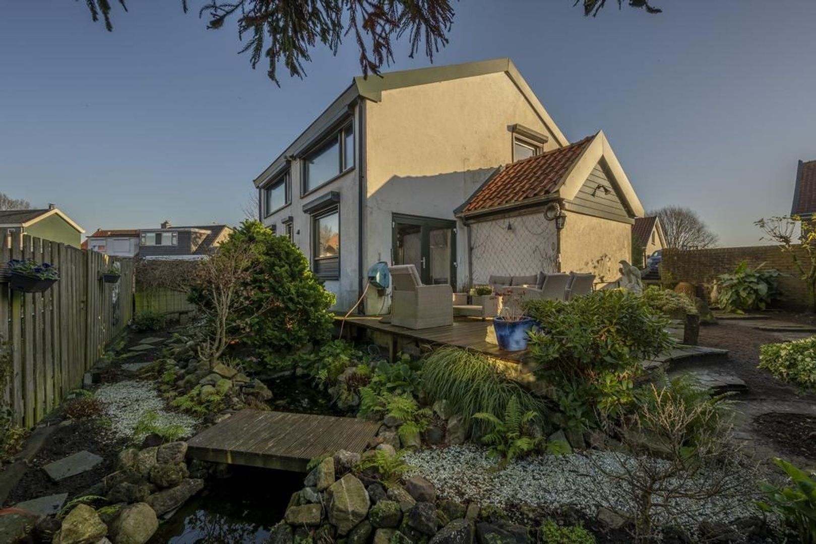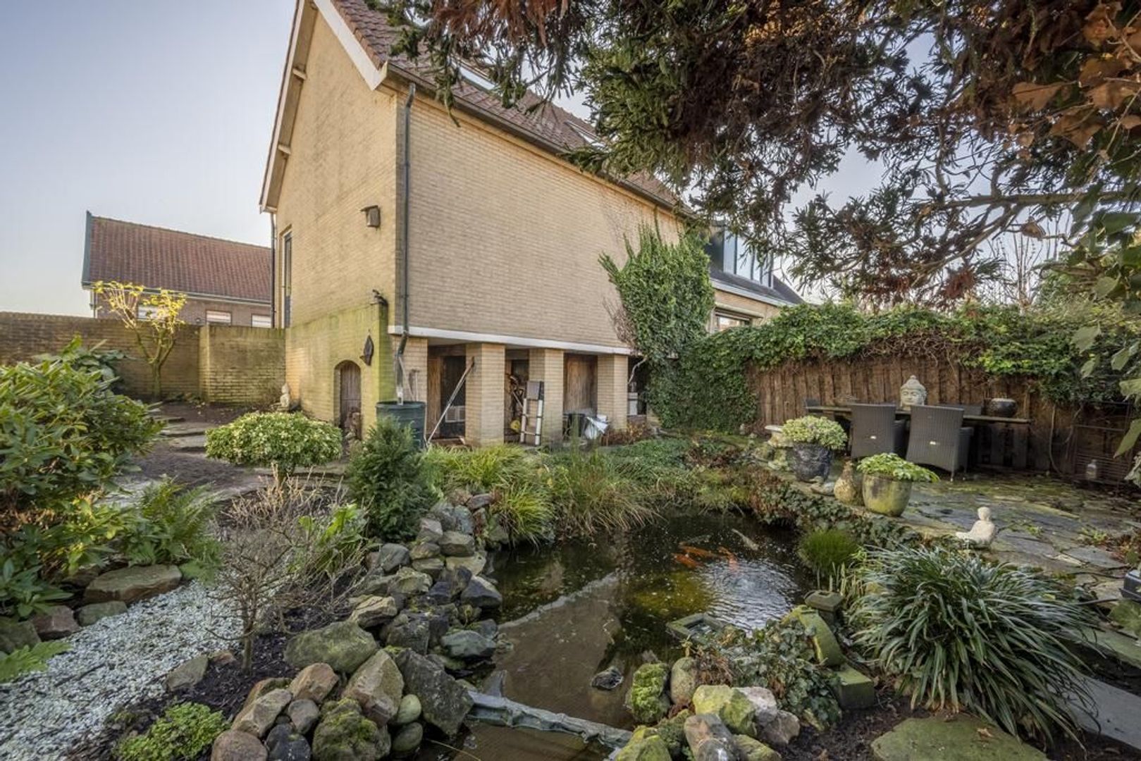 De siertuin ligt achter de woning en bestaat onder andere uit een terras en een siertuin in Japanse stijl met vijverpartij.
