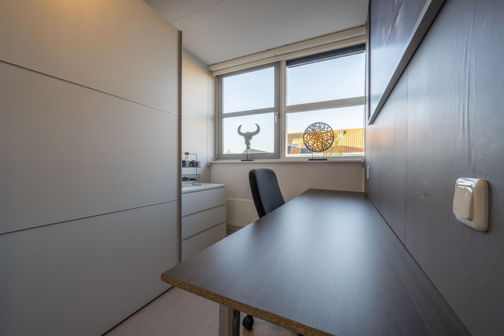 Op de eerste verdieping zijn twee slaapkamers, waarvan er één in gebruik is als werkkamer/kleedkamer.