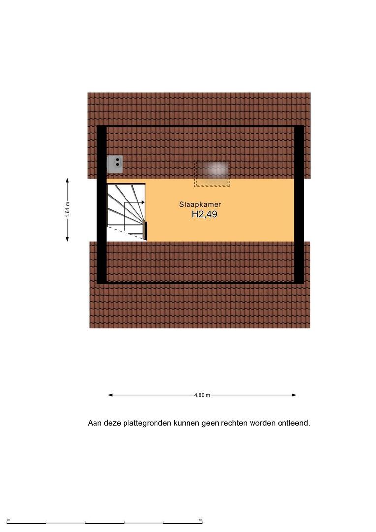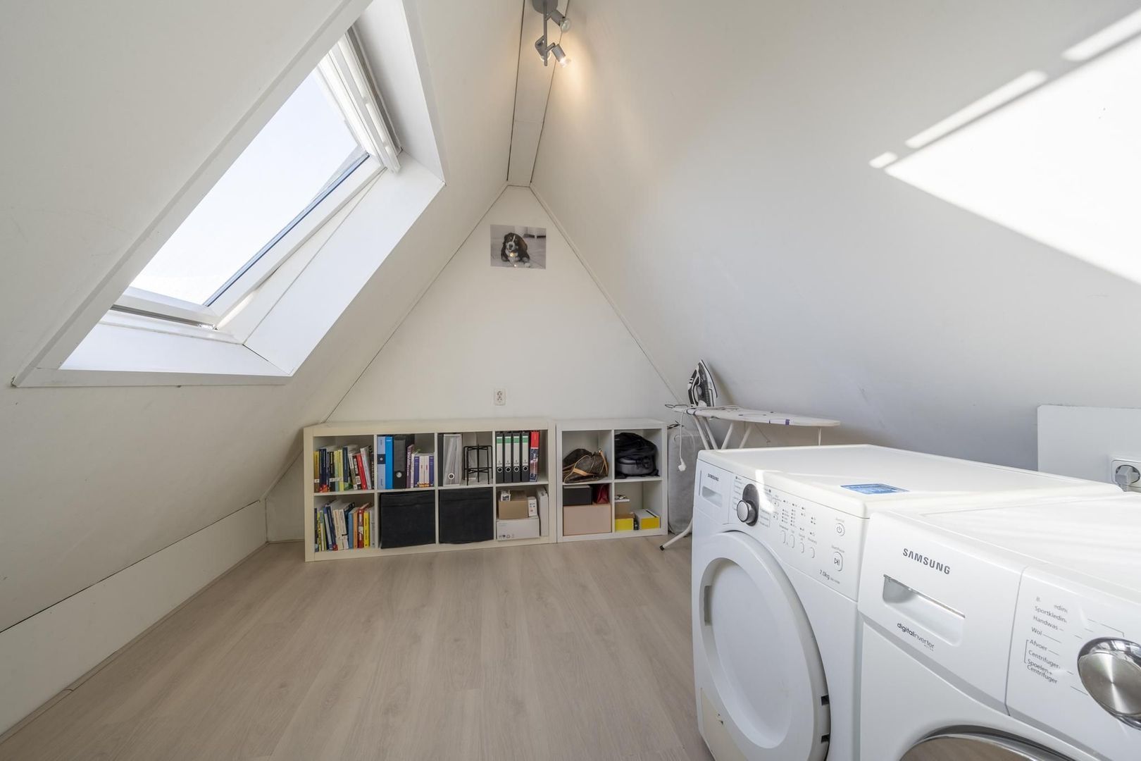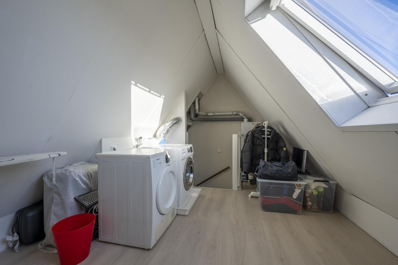 De tweede verdieping is met een vaste trap bereikbaar. Hier is nu een grote open ruimte die wordt gebruikt als was- en bergruimte. Een groot Velux dakraam zorgt voor voldoende licht. Het is mogelijk om hier een extra (slaap)kamer te maken.