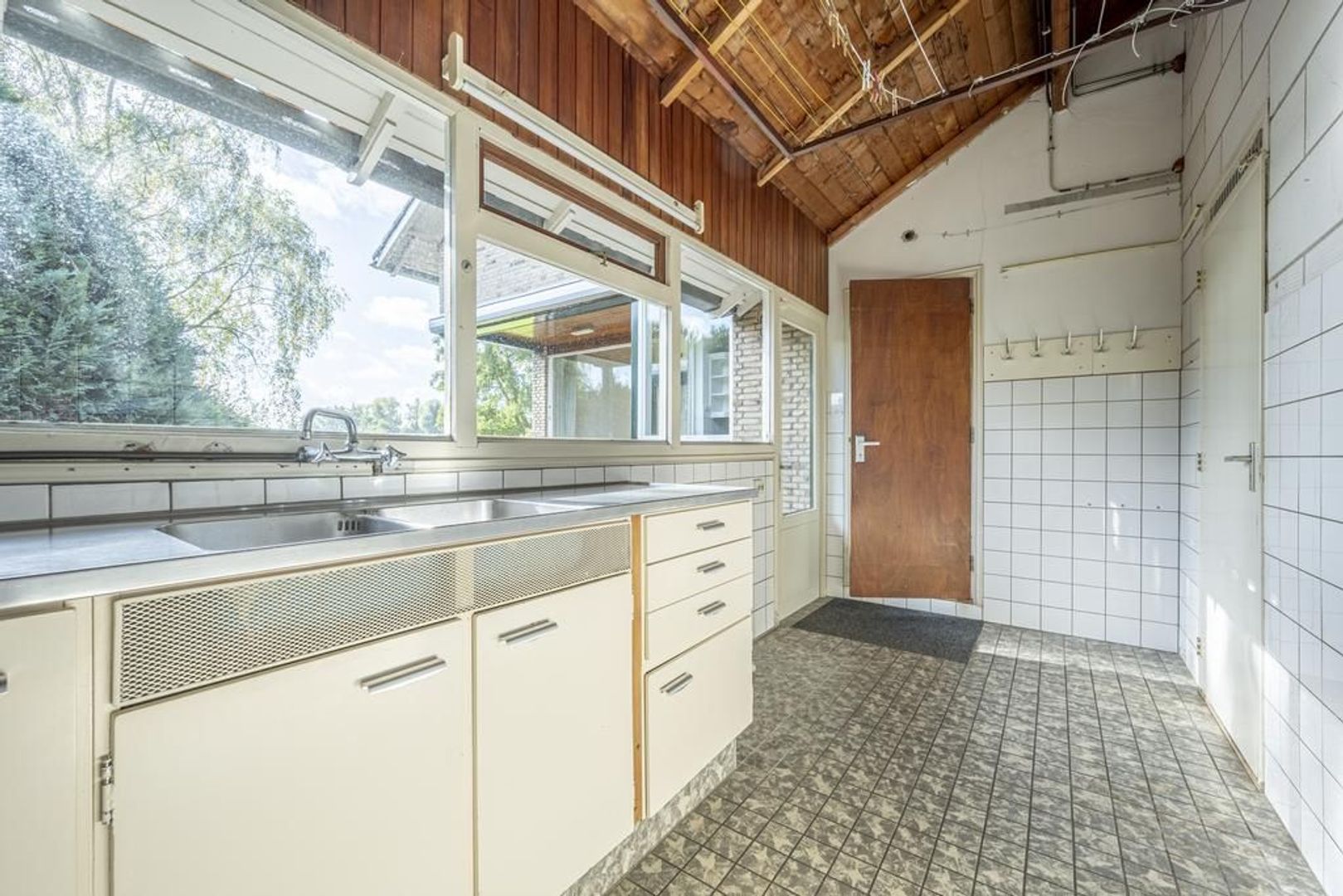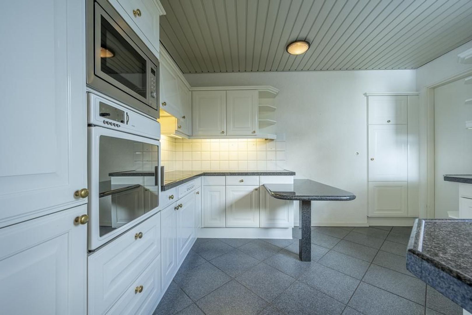 De halfopen keuken heeft een uitgebreide inrichting, voorzien van inbouwapparatuur en comfortabele vloerverwarming. Vanuit de keuken wordt de praktische bijkeuken bereikt, welke tevens toegang geeft tot de dubbele garage.