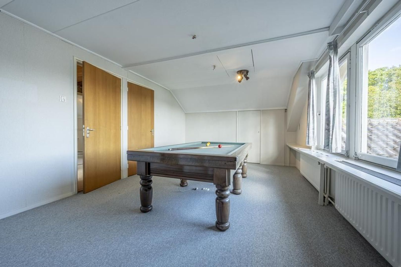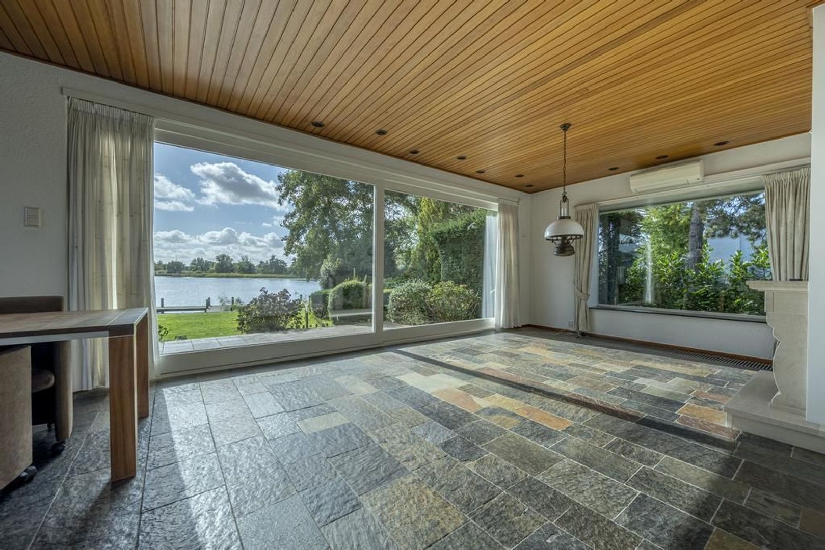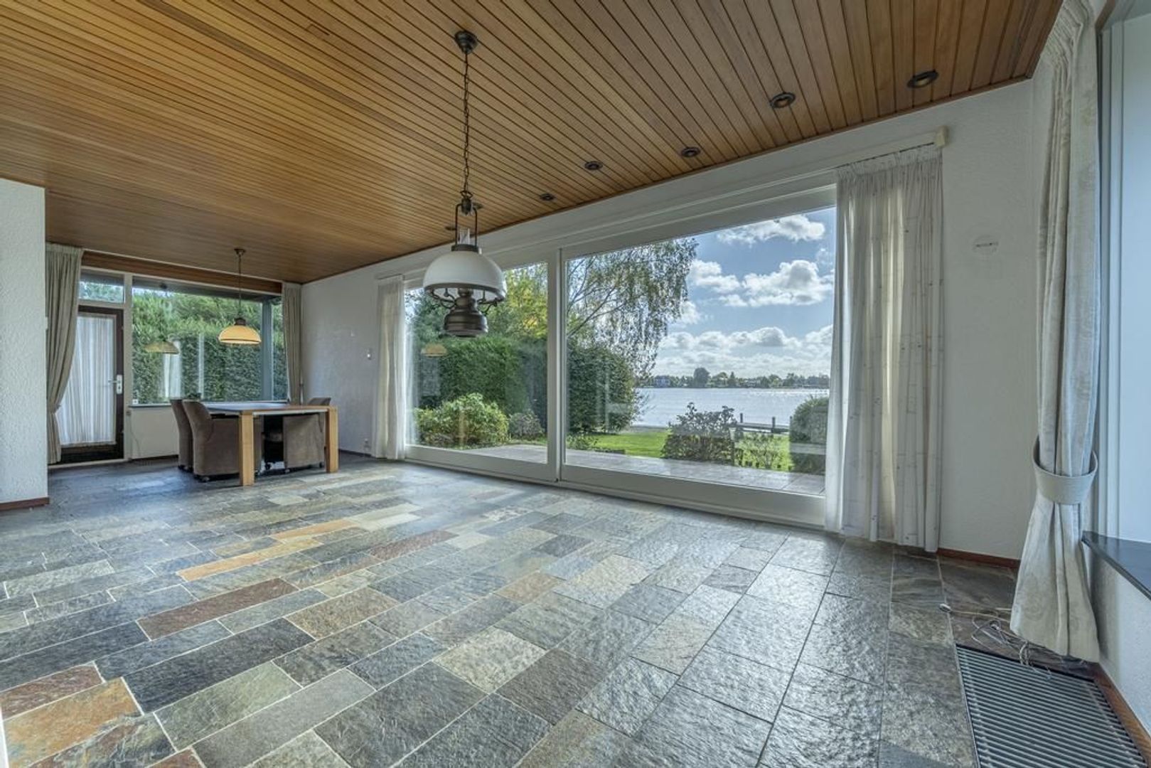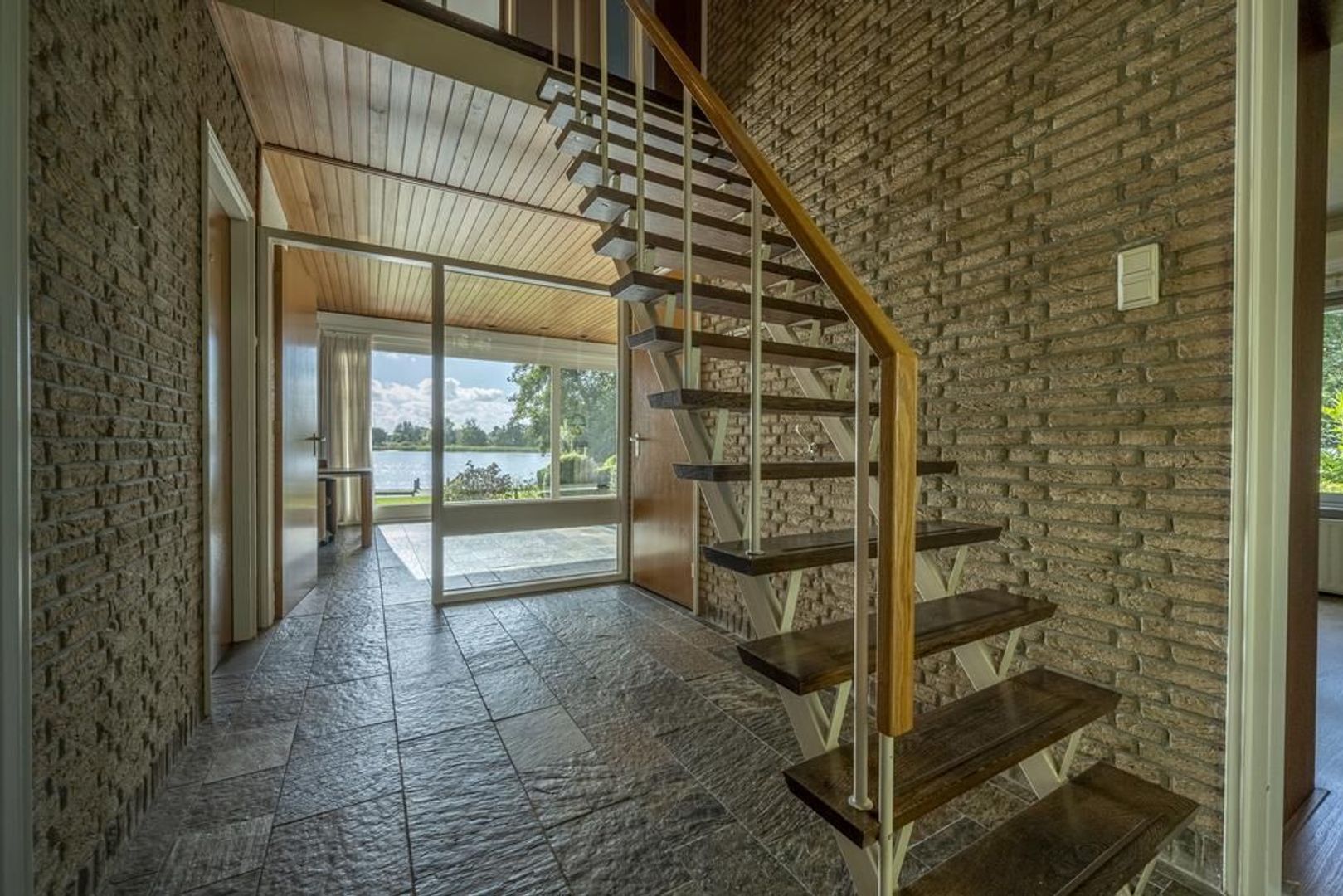 De indeling is globaal als volgt: ruime entreehal die direct toegang biedt tot de woonkamer. Deze ligt over de gehele breedte van het huis en biedt een weids uitzicht over de tuin en het water. De ruimte is uitgevoerd met een sfeervolle schouw met gashaard, airconditioning en een schuifpui naar het terras.