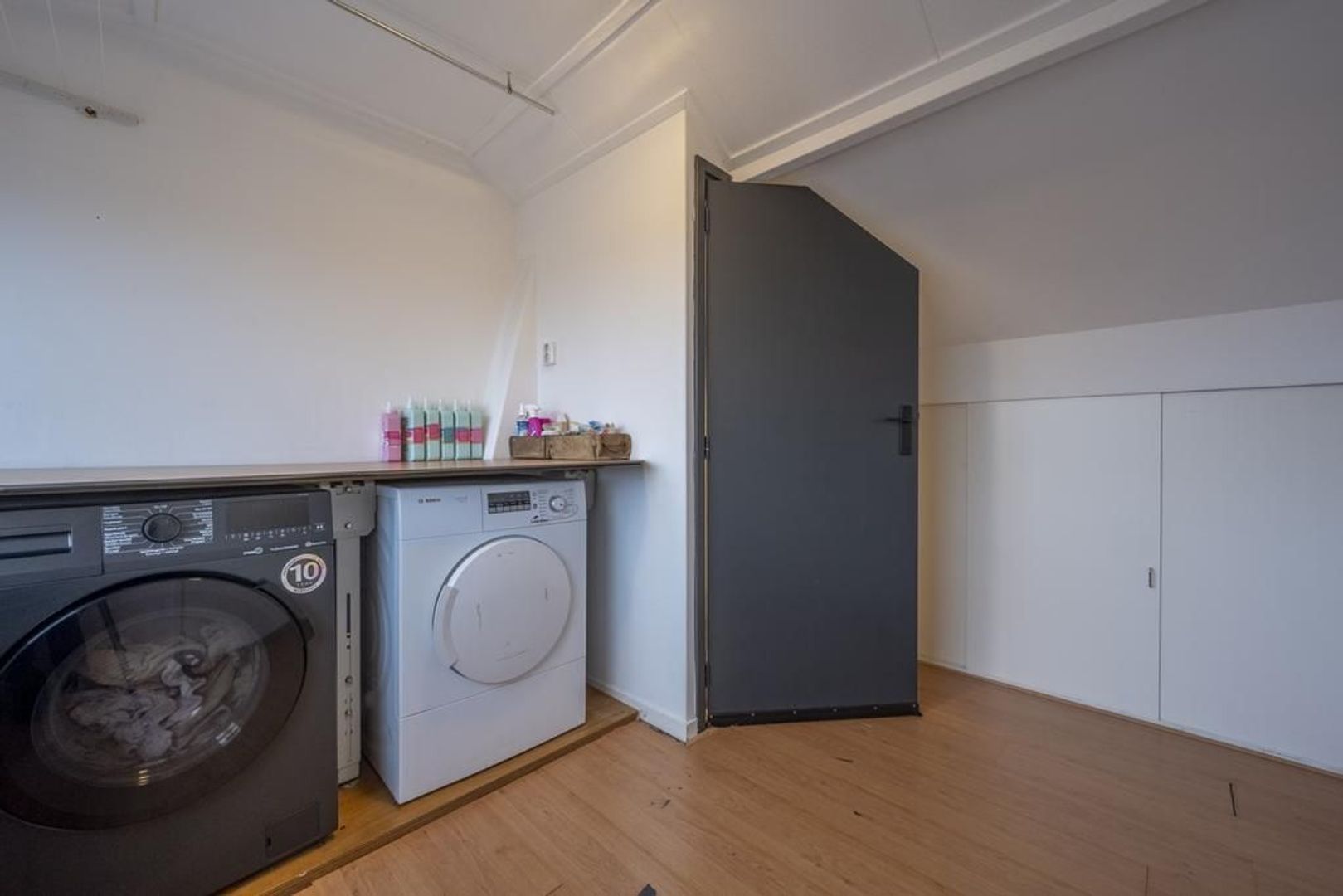 De tweede verdieping is met een vaste trap te bereiken. De dakopbouw zorgt voor voldoende stahoogte en lichtinval, waardoor een derde slaapkamer mogelijk werd. Op de voorzolder is ruimte voor de wasapparatuur.