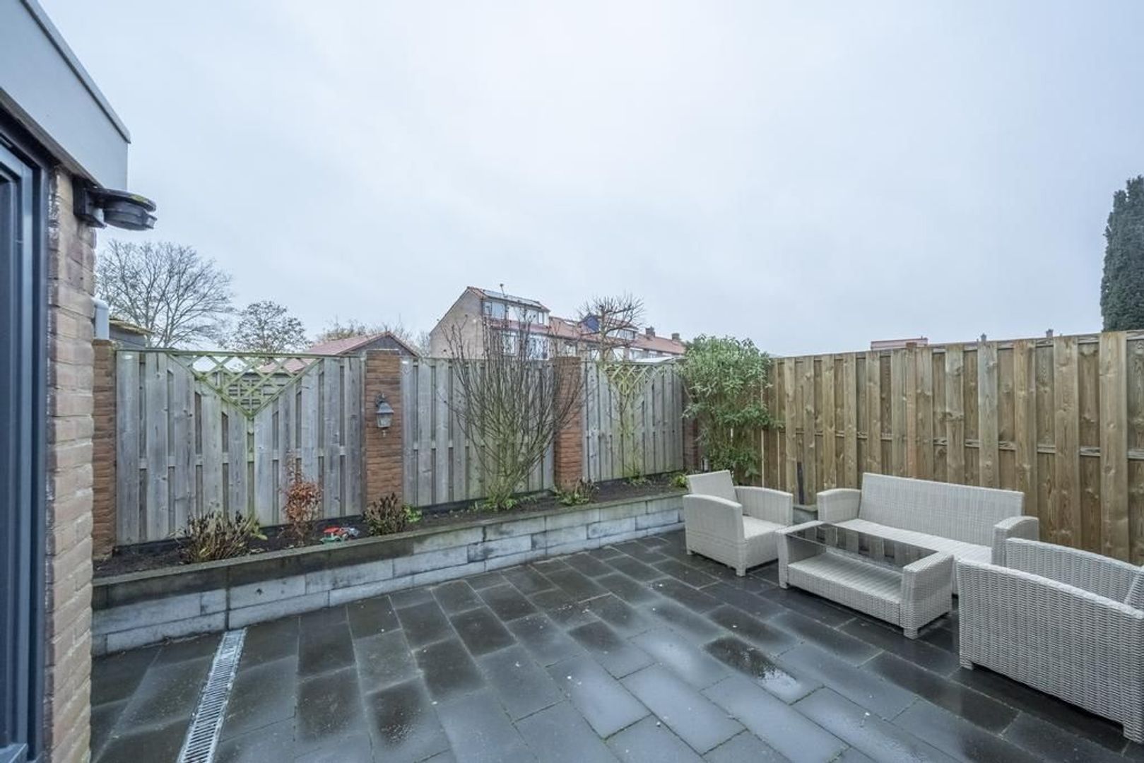 Uitgebouwde, eigentijds afgewerkte tussenwoning met berging en garage, gelegen in een rustige woonwijk op een perceel van 185 m² eigen grond.
