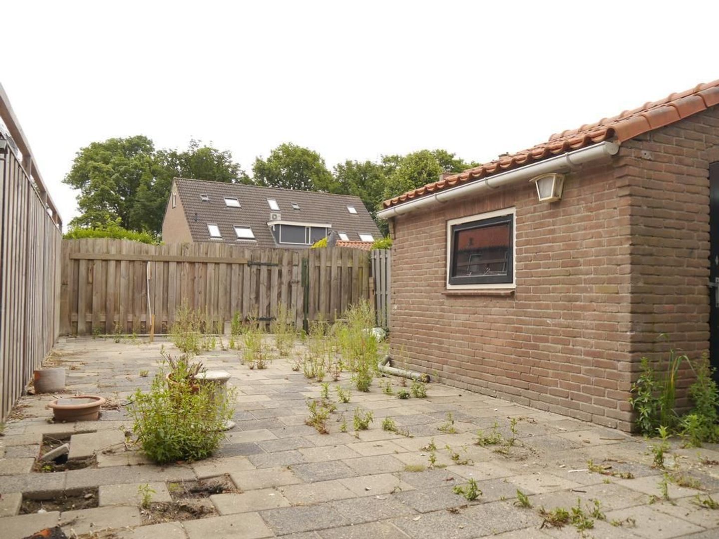 De achtertuin ligt op het zuidoosten. Hierin staat een stenen berging.