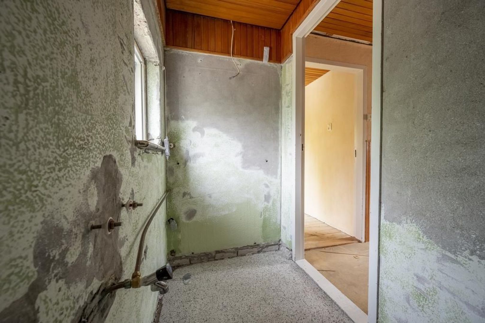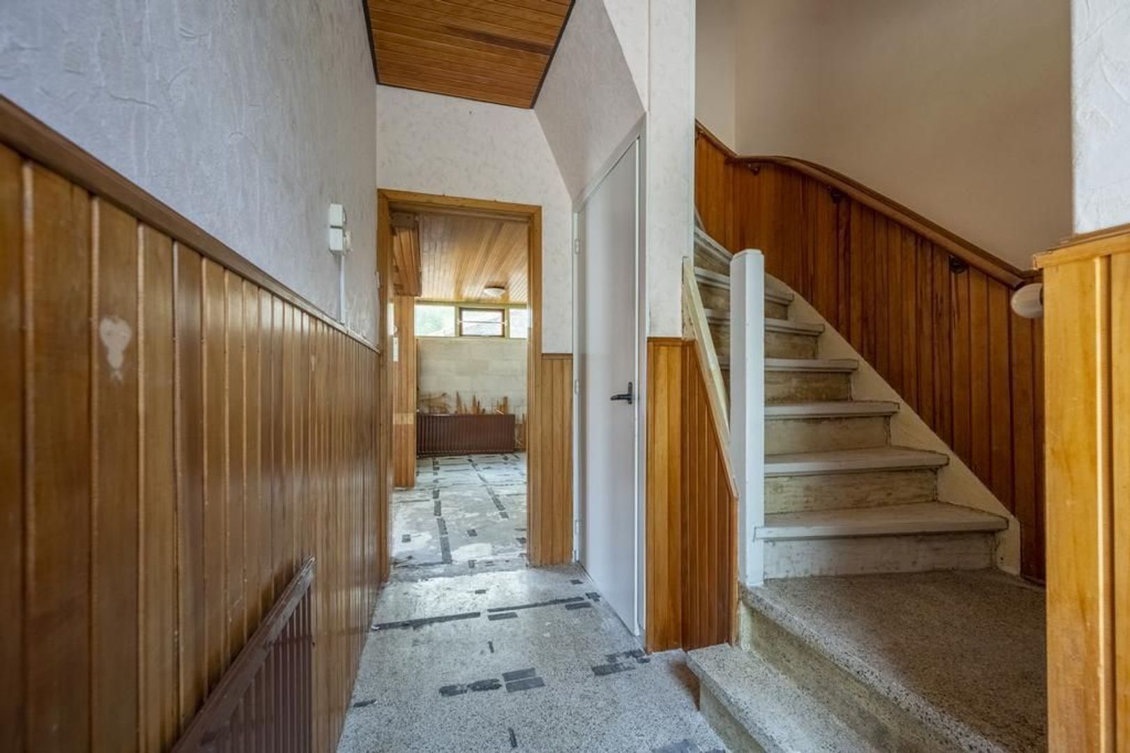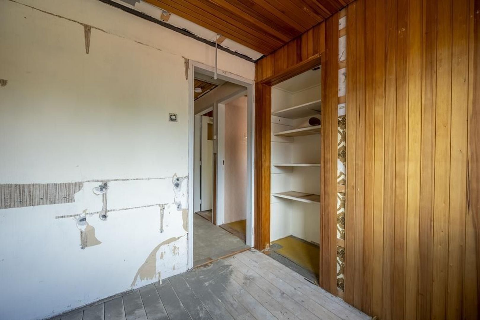 Een schuiftrap geeft toegang tot de tweede verdieping, die voorzien is van een dakraam. Hier hangt de cv-ketel (Vaillant VHR 2021).