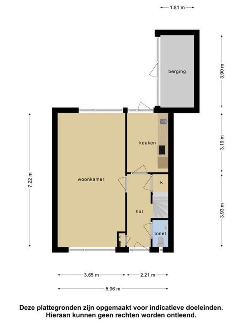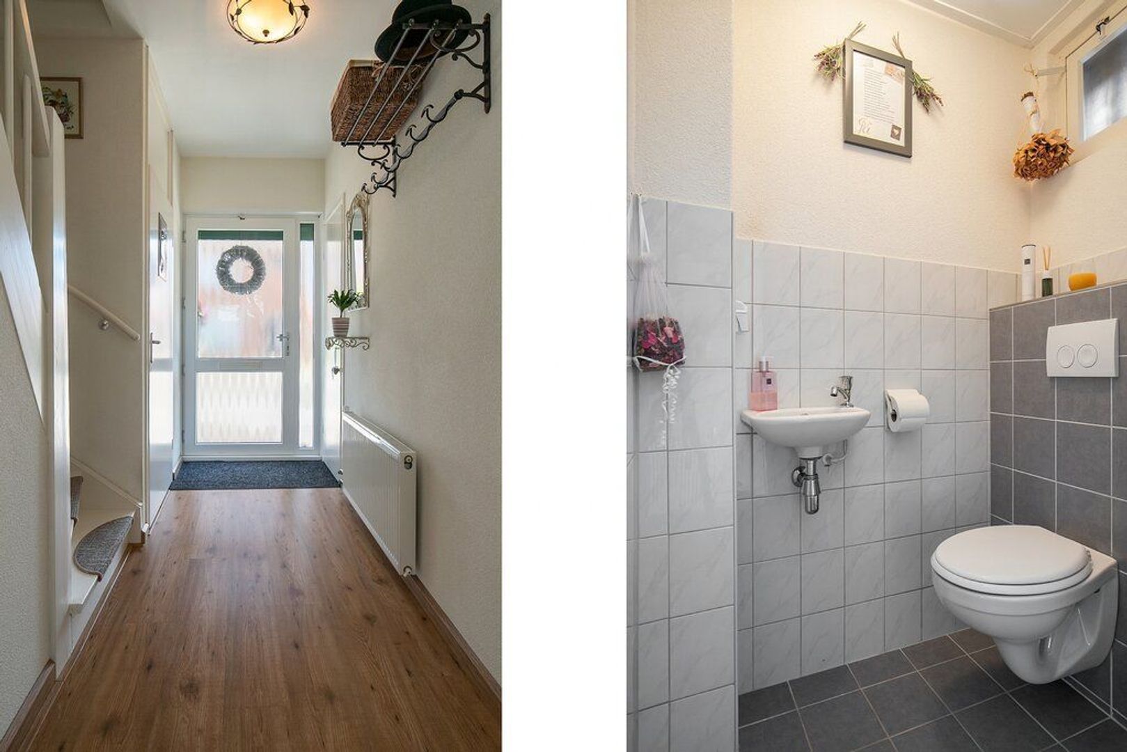 De woning heeft de volgende indeling: entree, hal met meterkast en trapopgang met trapkast. Toiletruimte met wandcloset en fonteinbakje.