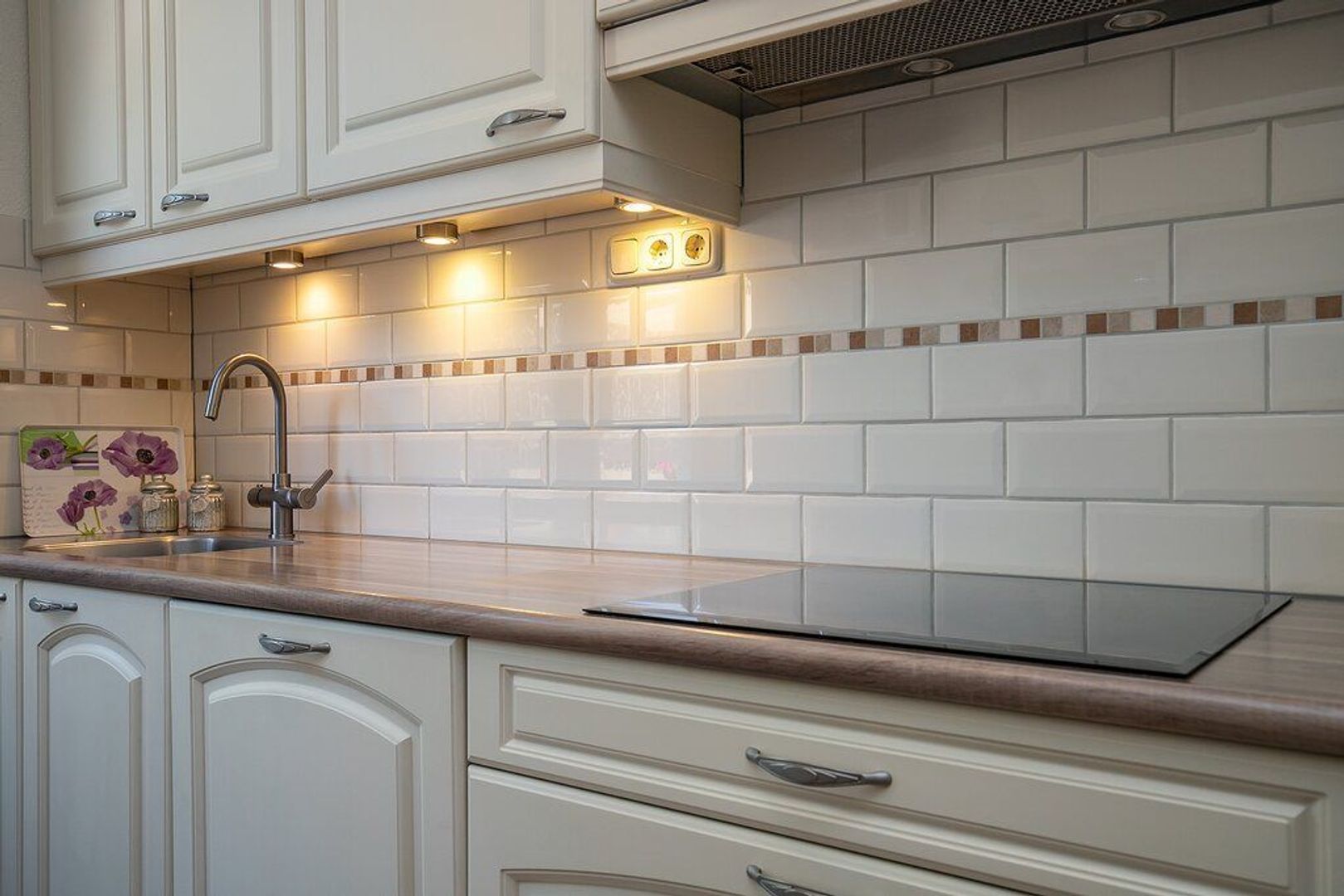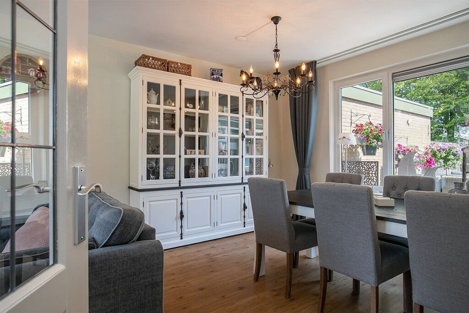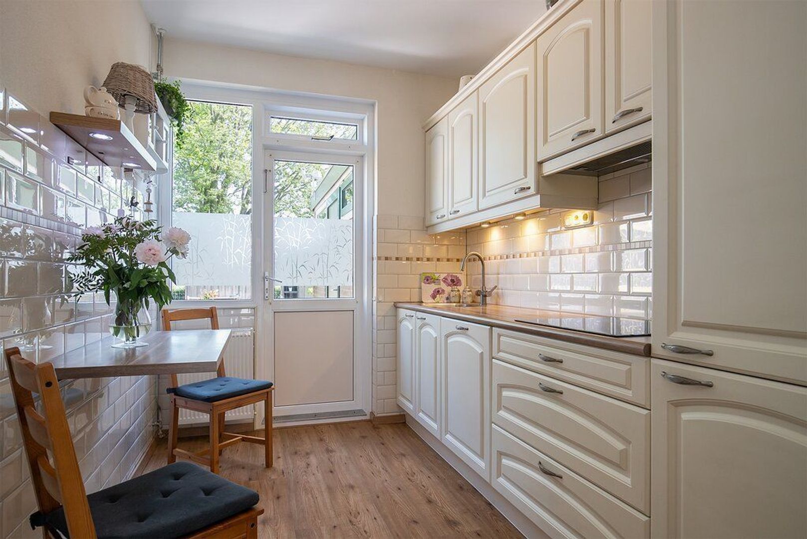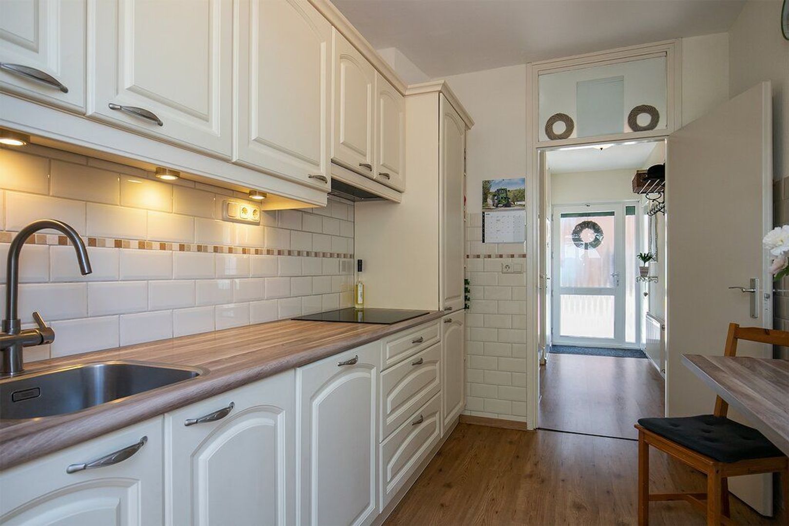Dichte keuken met moderne landelijke inrichting, uitgevoerd met een koel-vriescombinatie, inductie kookplaat, afzuigkap, vaatwasser, 10 liter boiler en Quooker.
