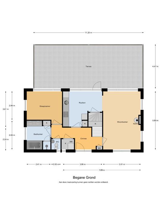 De indeling is als volgt: entree, ruime hal met toiletruimte en vaste kast met de aansluiting voor de wasmachine.