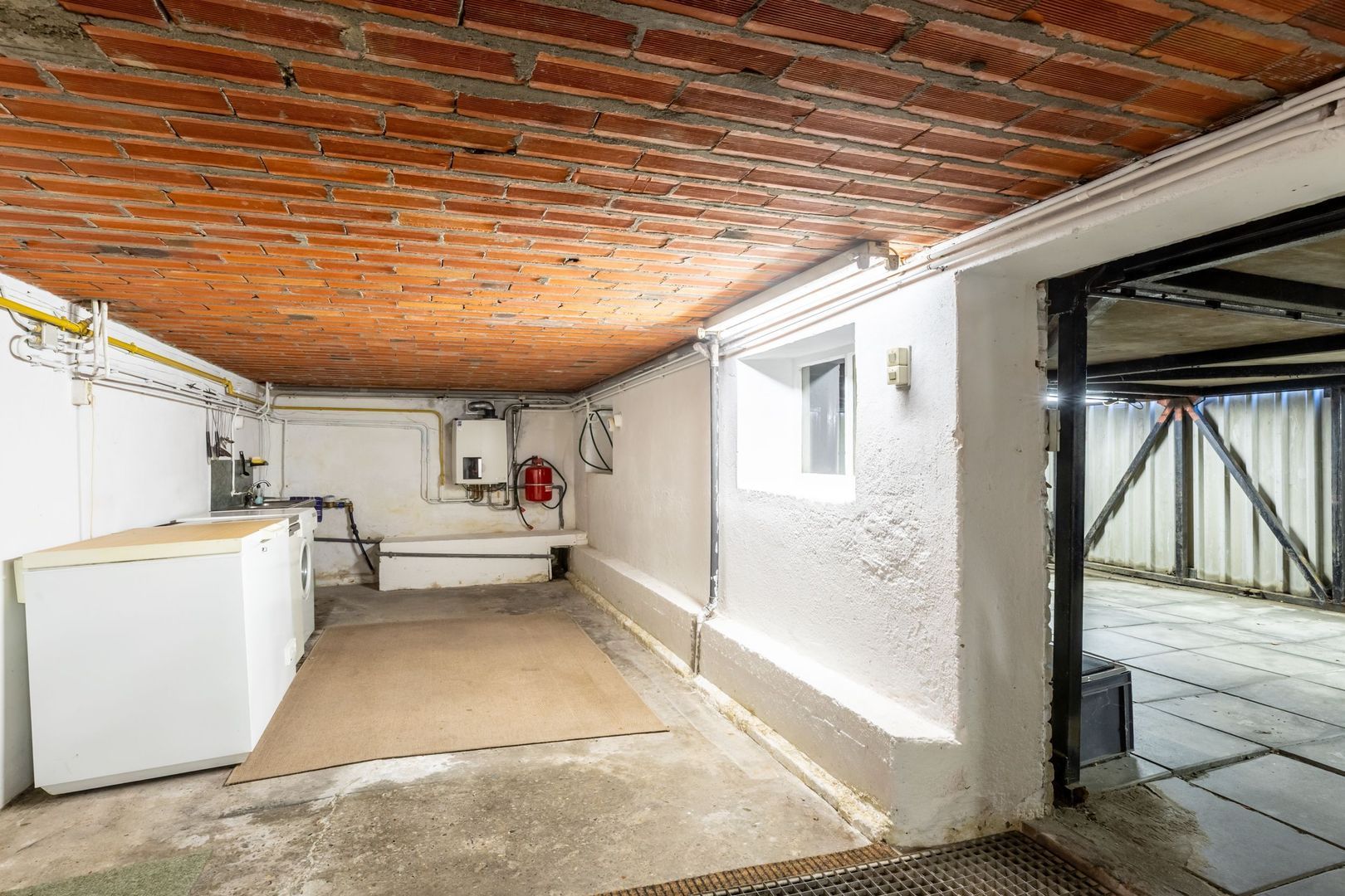 Vanuit de keuken wordt het souterrain bereikt. Dit is een handige ruimte waar onder andere de cv-ketel hangt, eveneens een aansluiting is voor de wasmachine en ook plaats genoeg voor bijvoorbeeld een grote vrieskist.