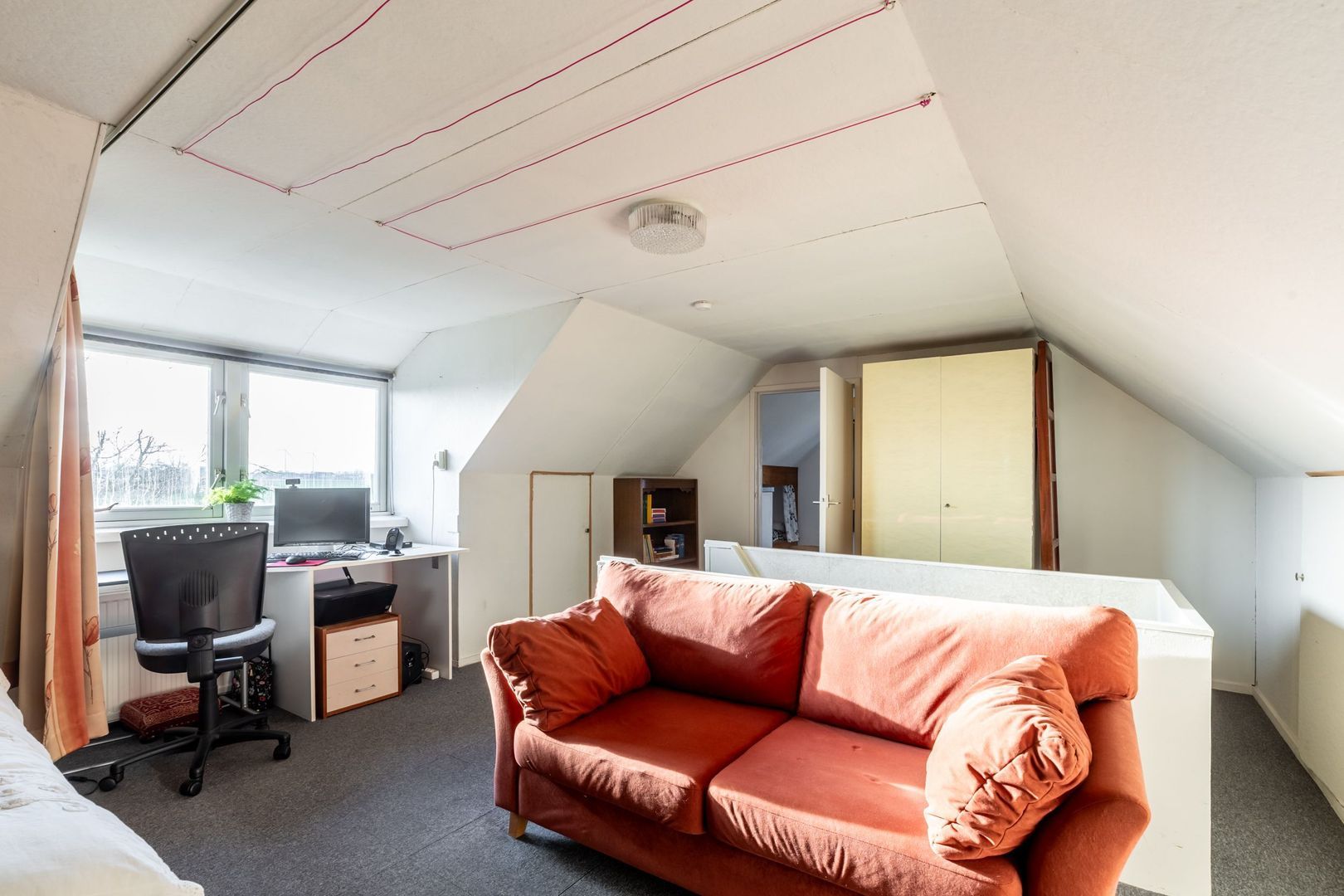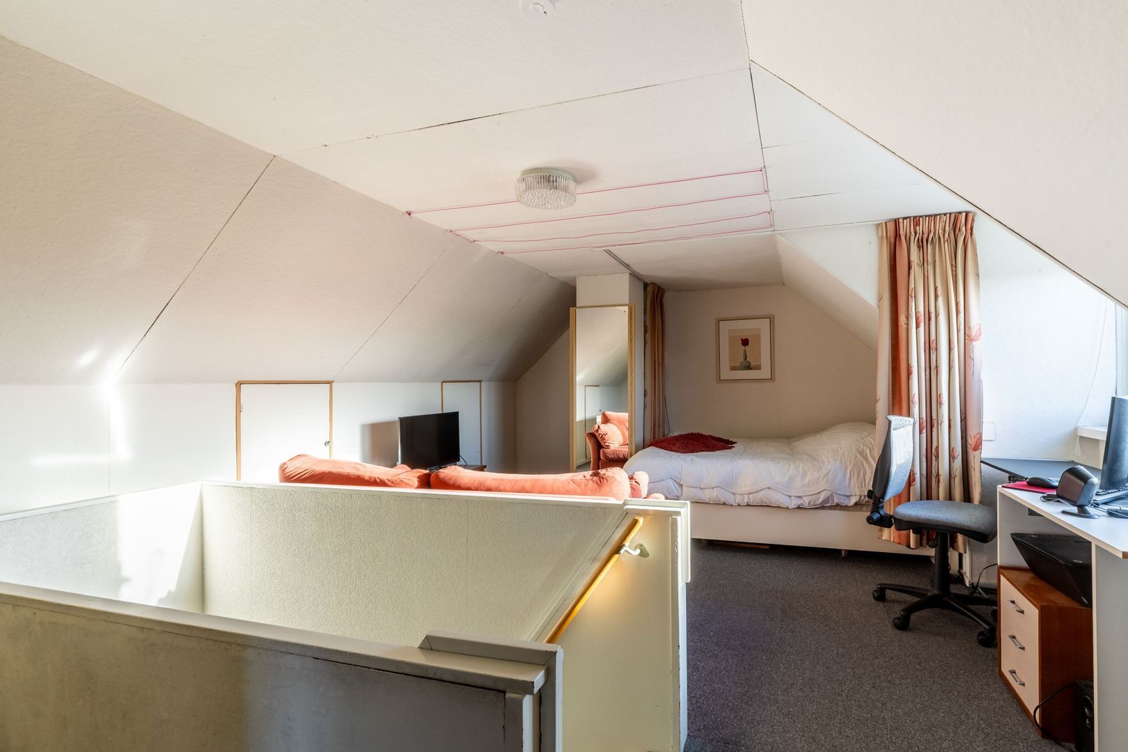 De verdieping is voorzien van een dakkapel. Op de ruime overloop is plaats voor een werk- of hobbyplek. Misschien wel het plekje met het mooiste uitzicht van het huis!