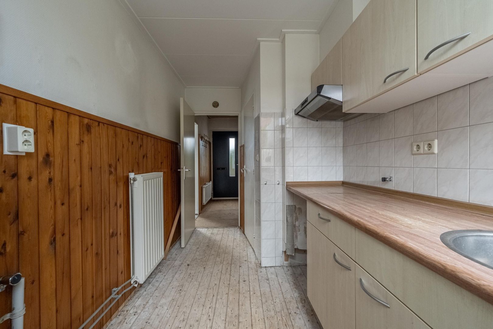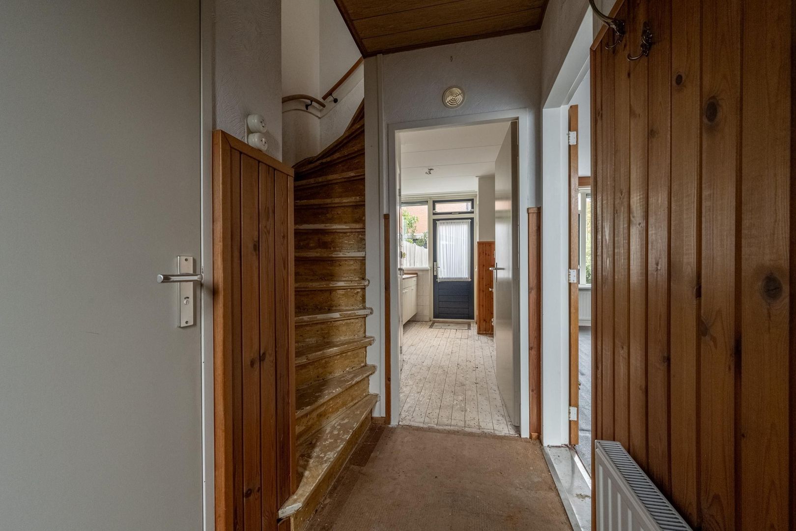 De indeling is globaal als volgt: entree, hal met toiletruimte, meterkast, en trapopgang. Doorzon woonkamer met buiten gebruik zijnde schouw. Dichte keuken met nette wandopstelling met afzuigkap en trapkast.