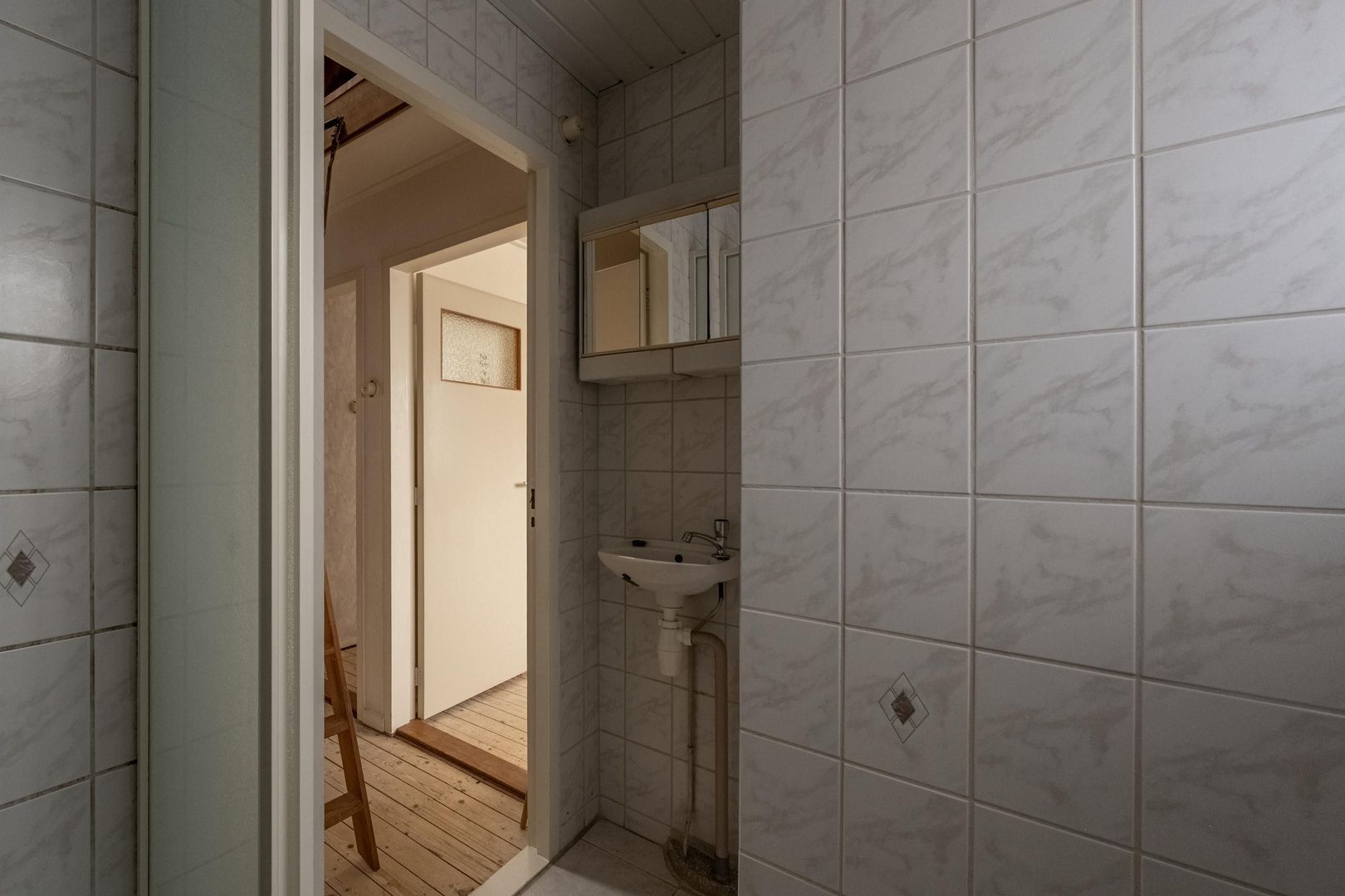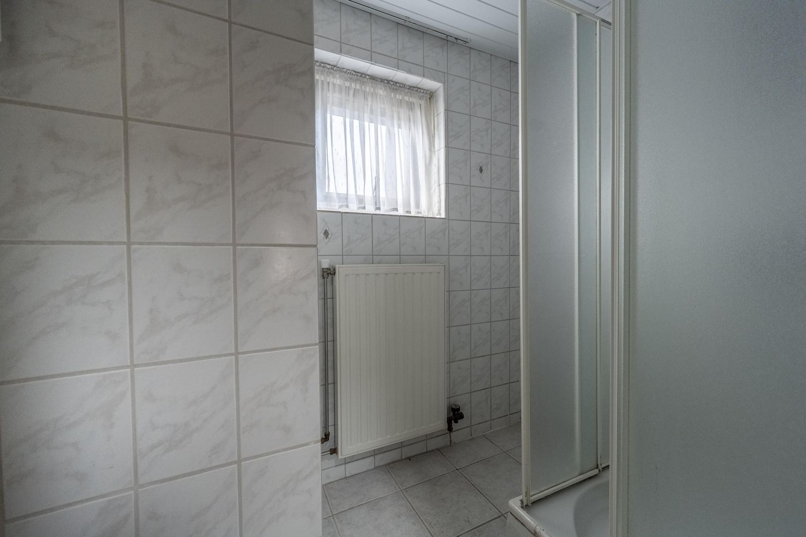 Op de eerste verdieping zijn drie slaapkamers. De badkamer is eenvoudig en biedt plaats aan een wastafel en een douchegelegenheid. Het raam kan open en maakt ventileren met frisse buitenlucht mogelijk.