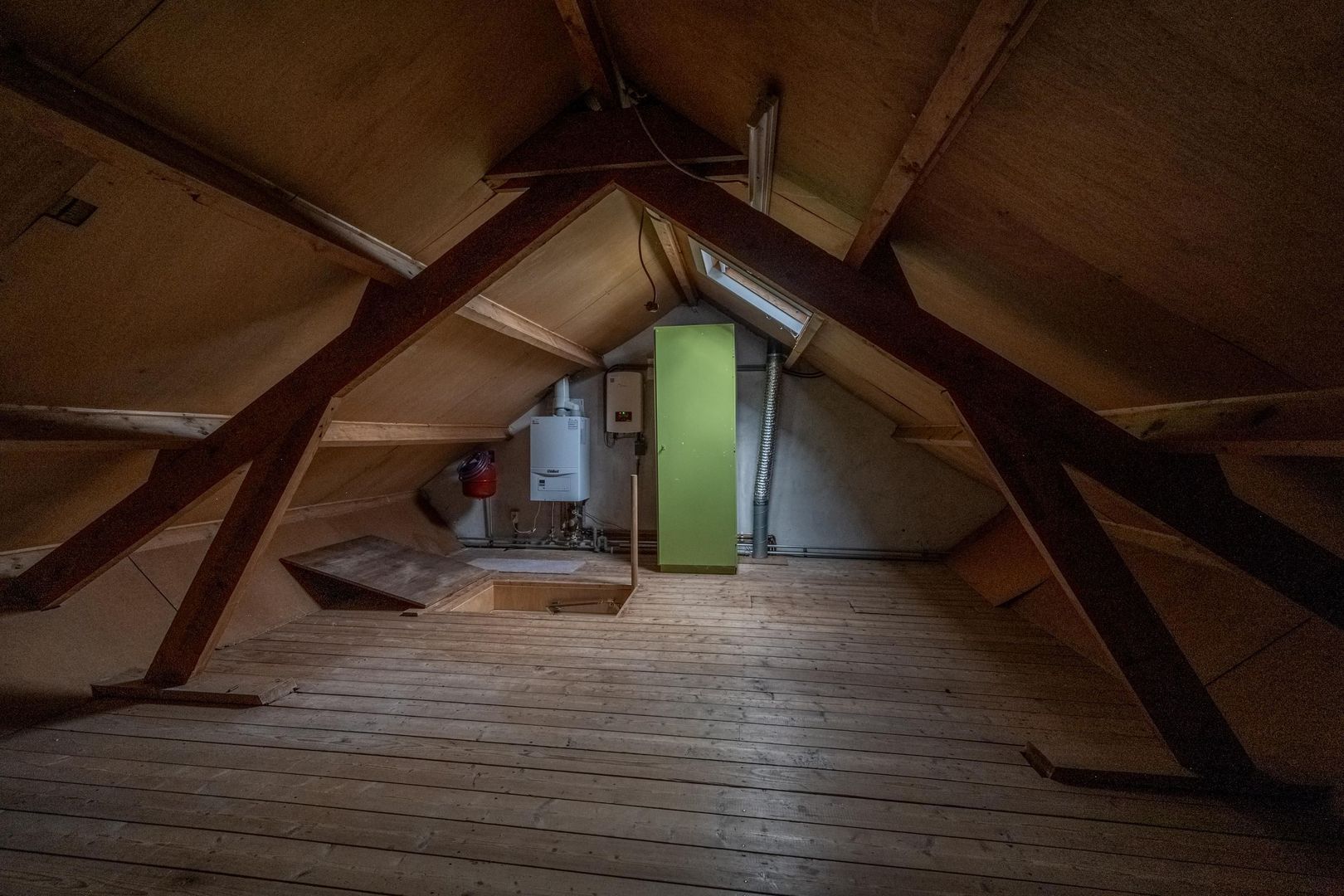 De tweede verdieping is met een vlizotrap bereikbaar. Dit is een grote open ruimte met een dakraam. De cv-ketel en de omvormer van de zonnepanelen hangen hier.