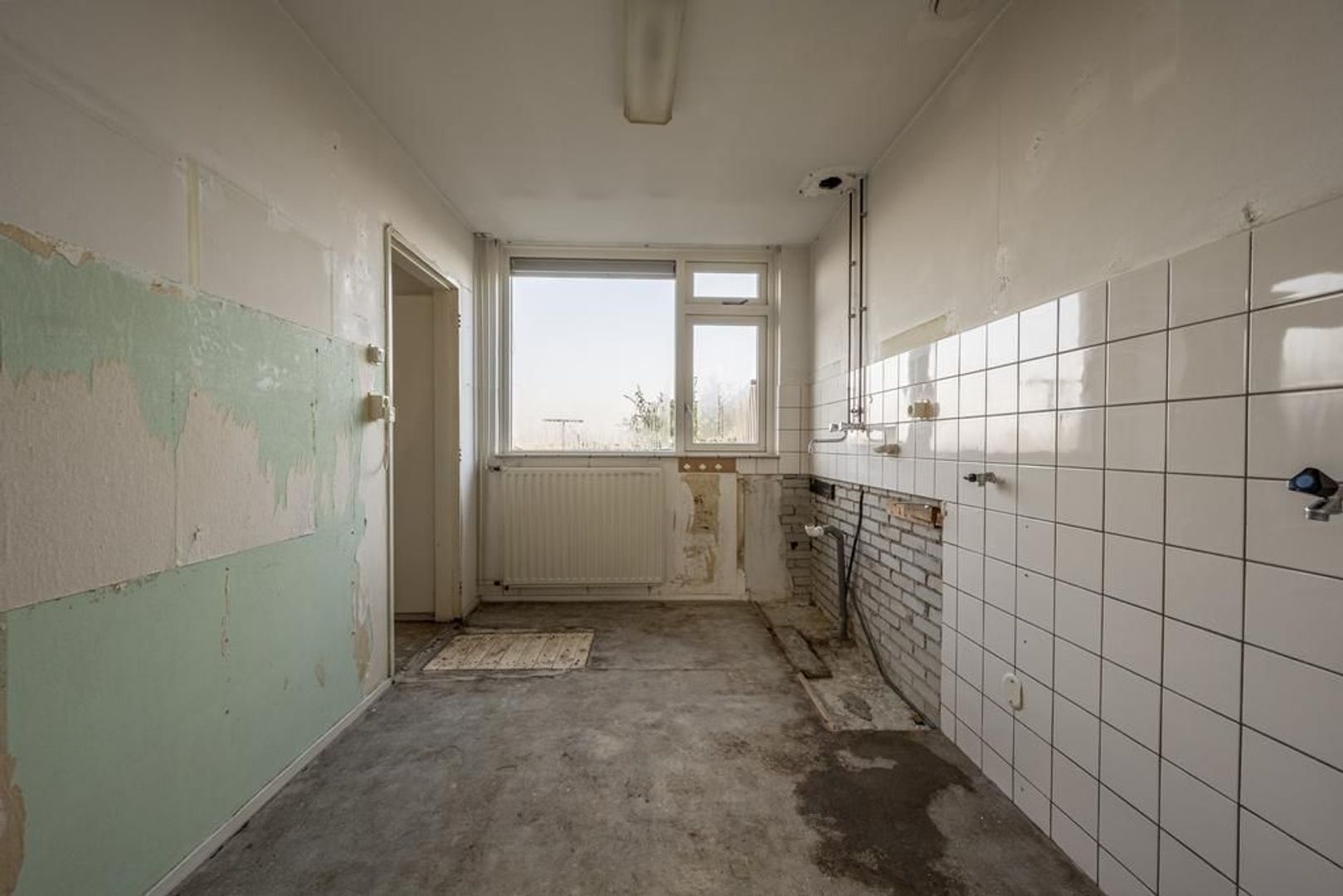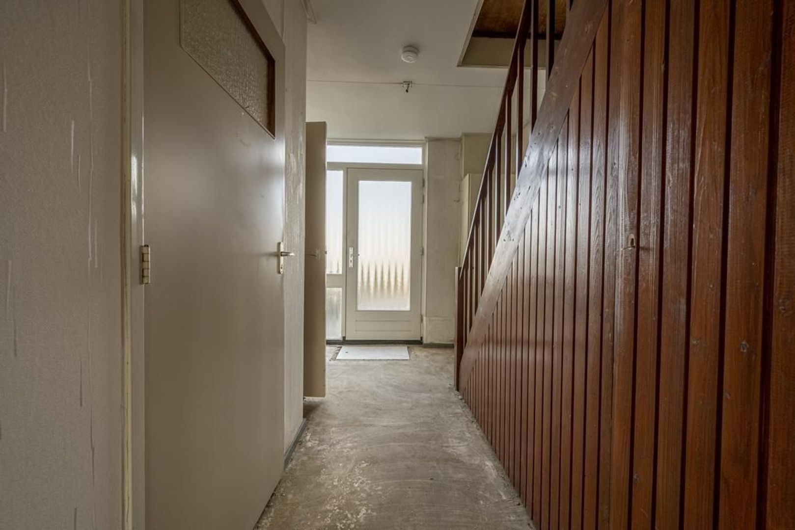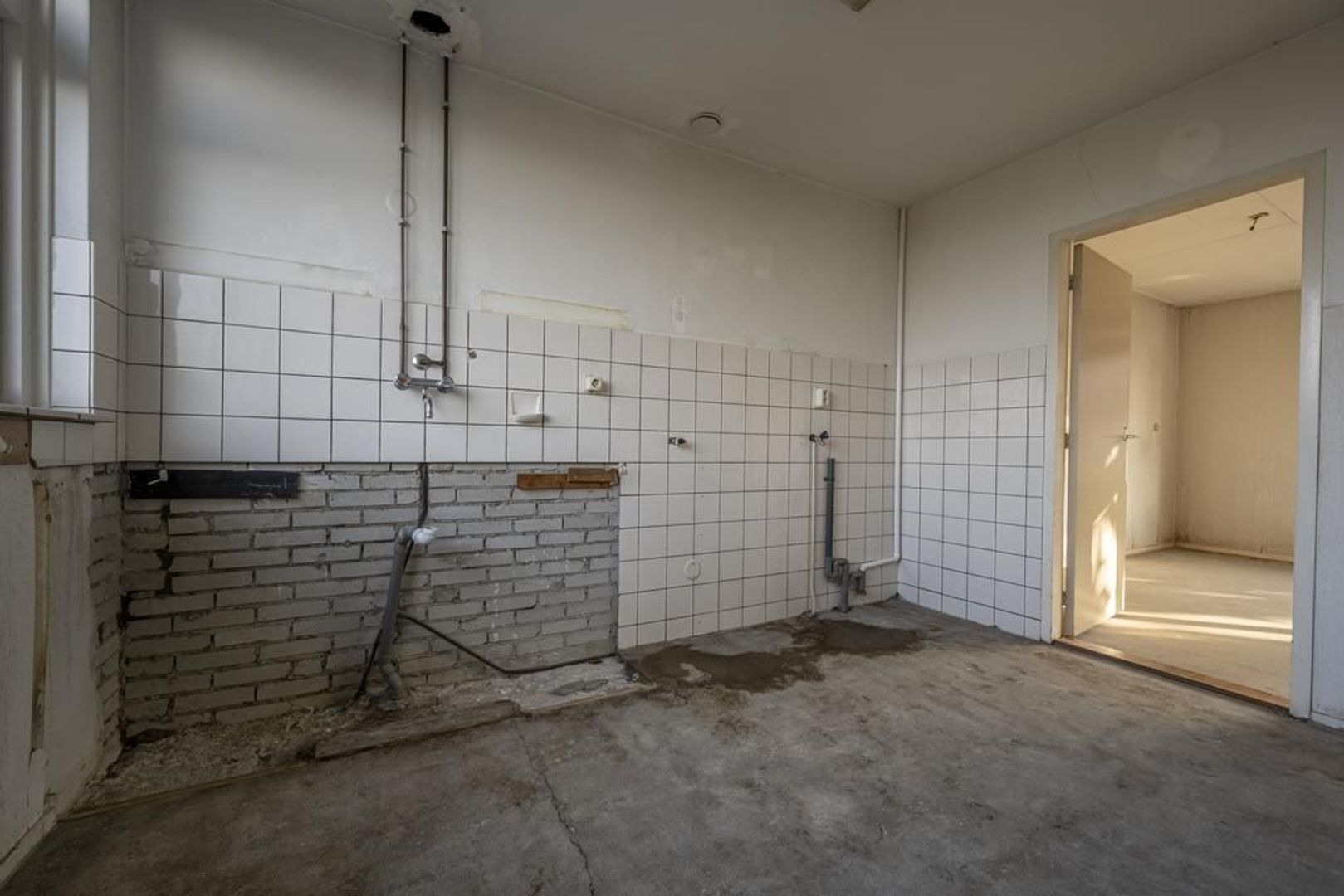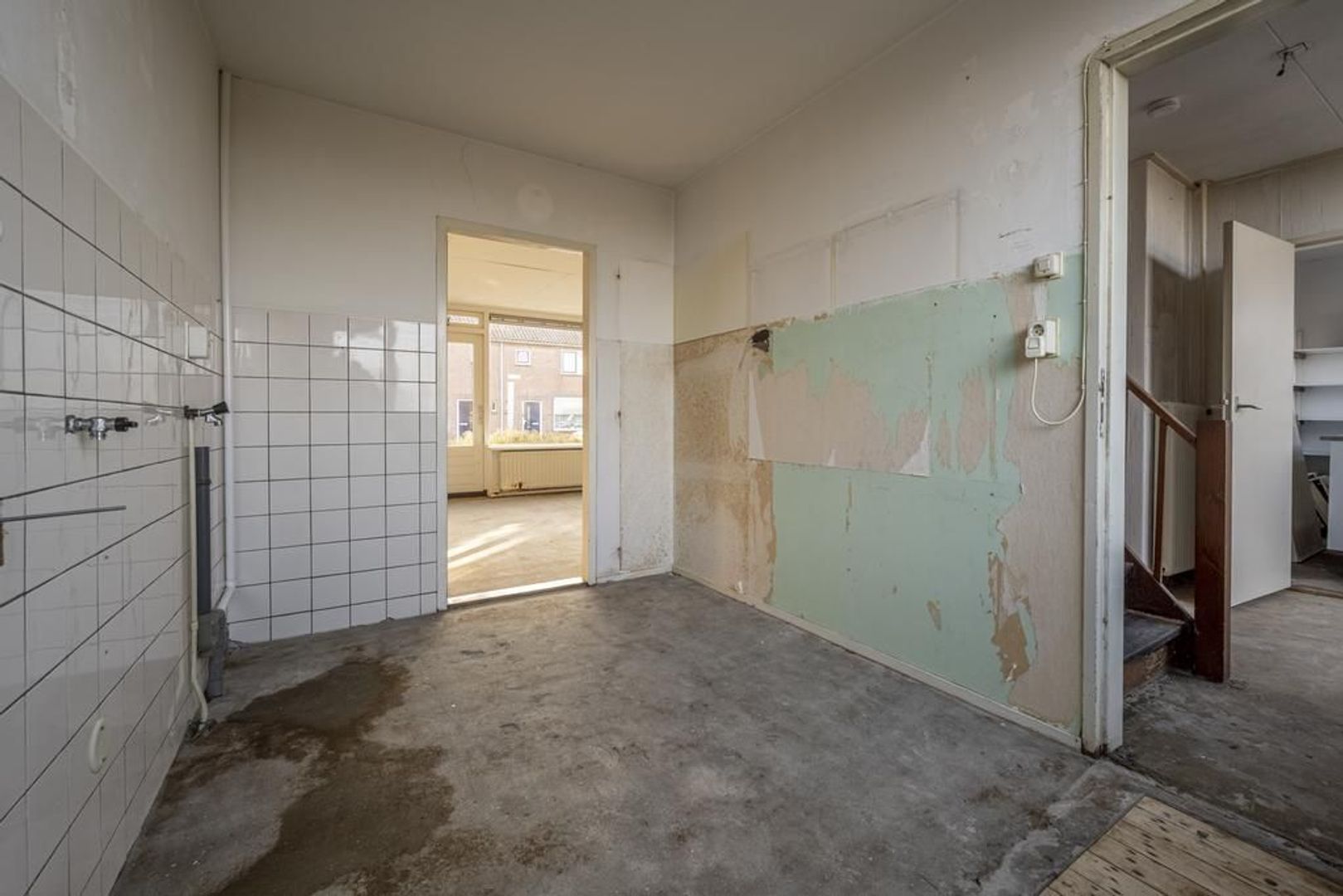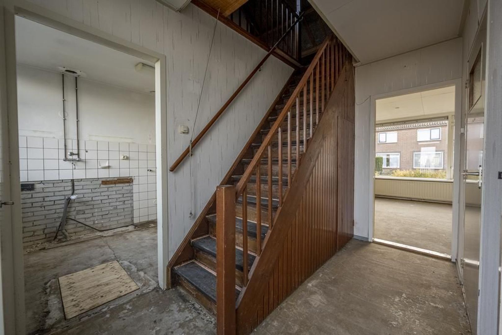 De indeling is globaal als volgt: entree, hal met meterkast, bijkeuken met aansluiting voor de wasmachine, trapopgang met trapkast. De dichte keuken is thans een open ruimte met nog alle mogelijkheden om een leuk keukenblok te plaatsen.