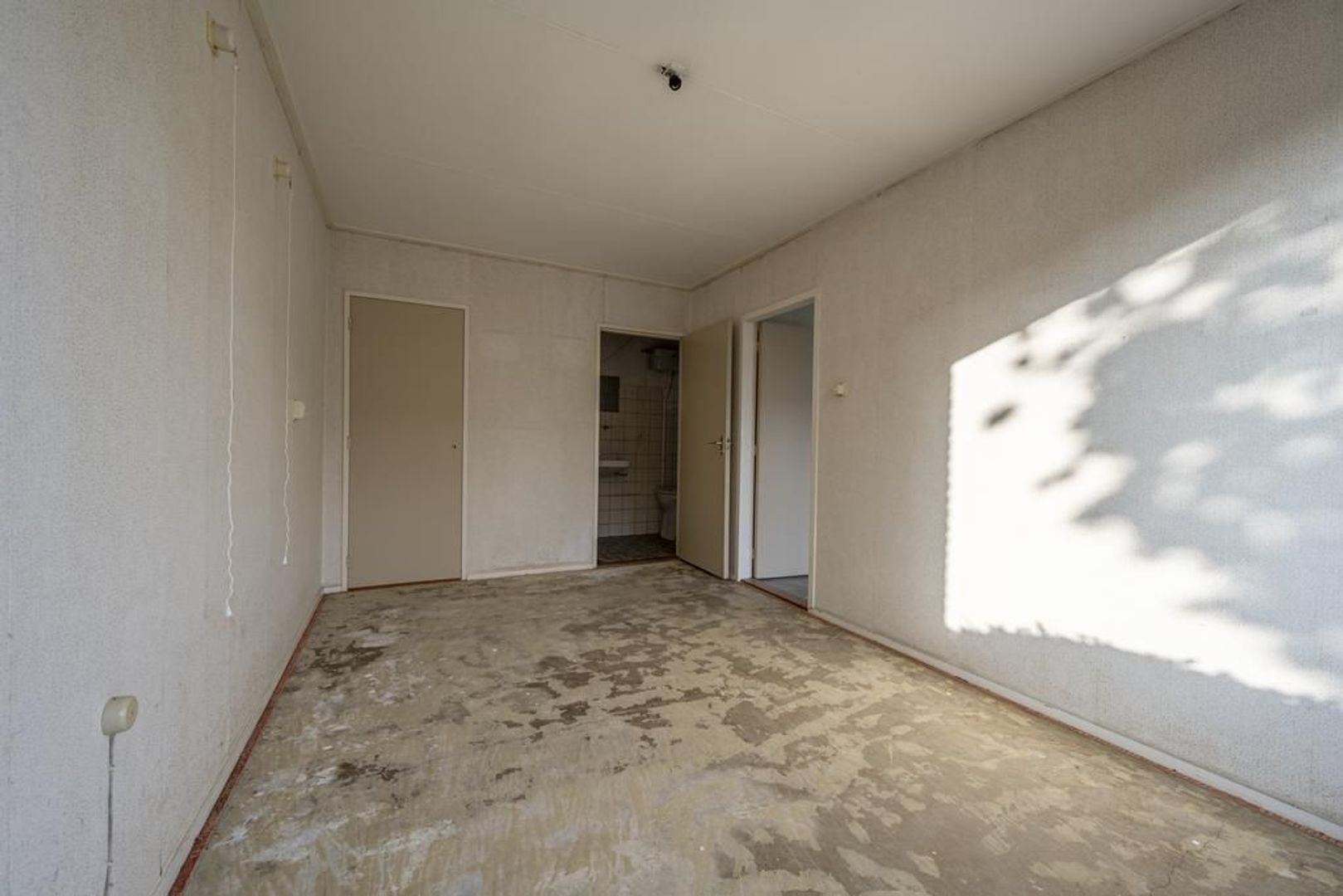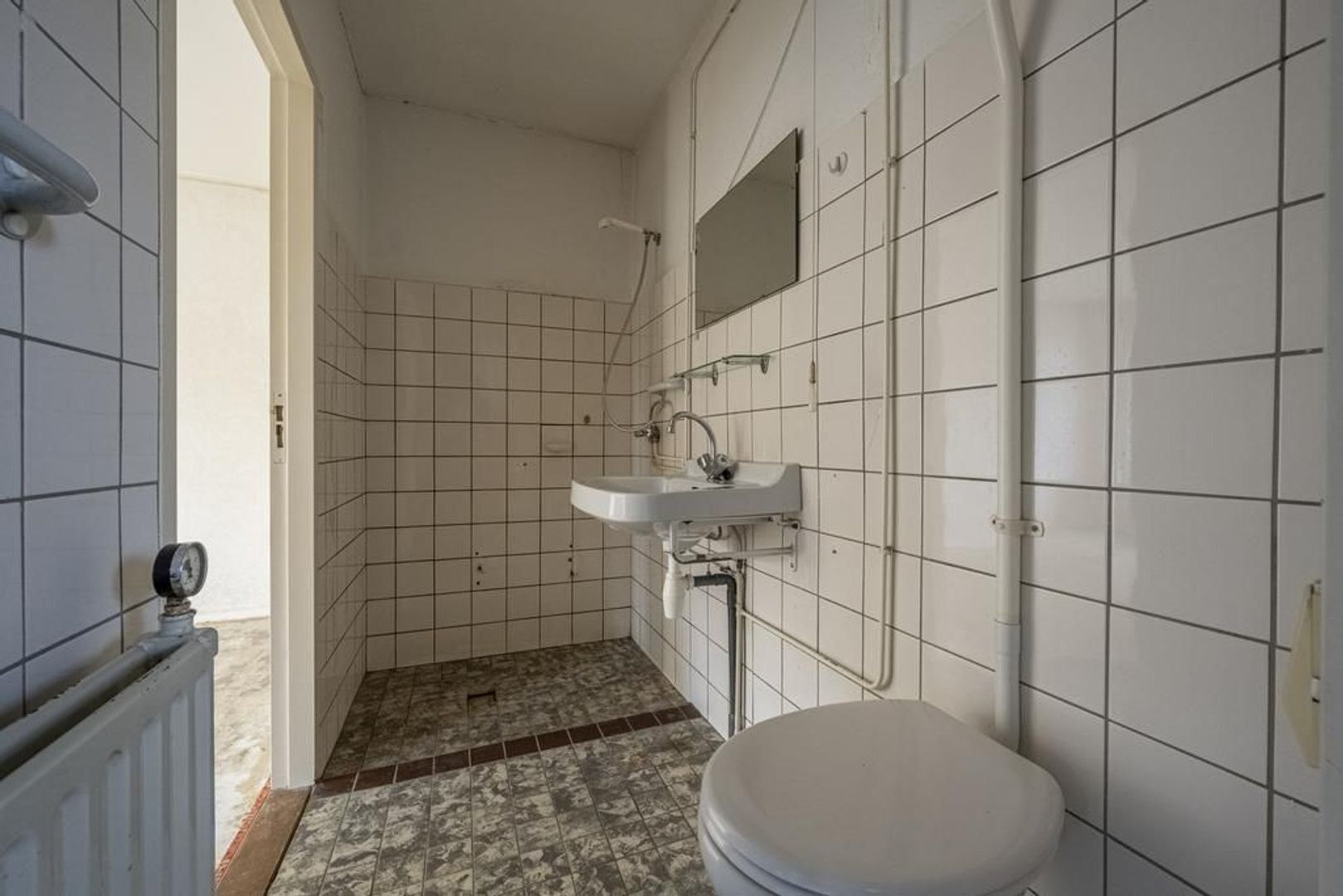 Woonkamer met vaste kast en toegang tot de slaapkamer. De slaapkamer is tevens voorzien van een grote vaste kast. De badkamer is deels betegeld en is uitgevoerd met een douchegelegenheid, wastafel en toilet.