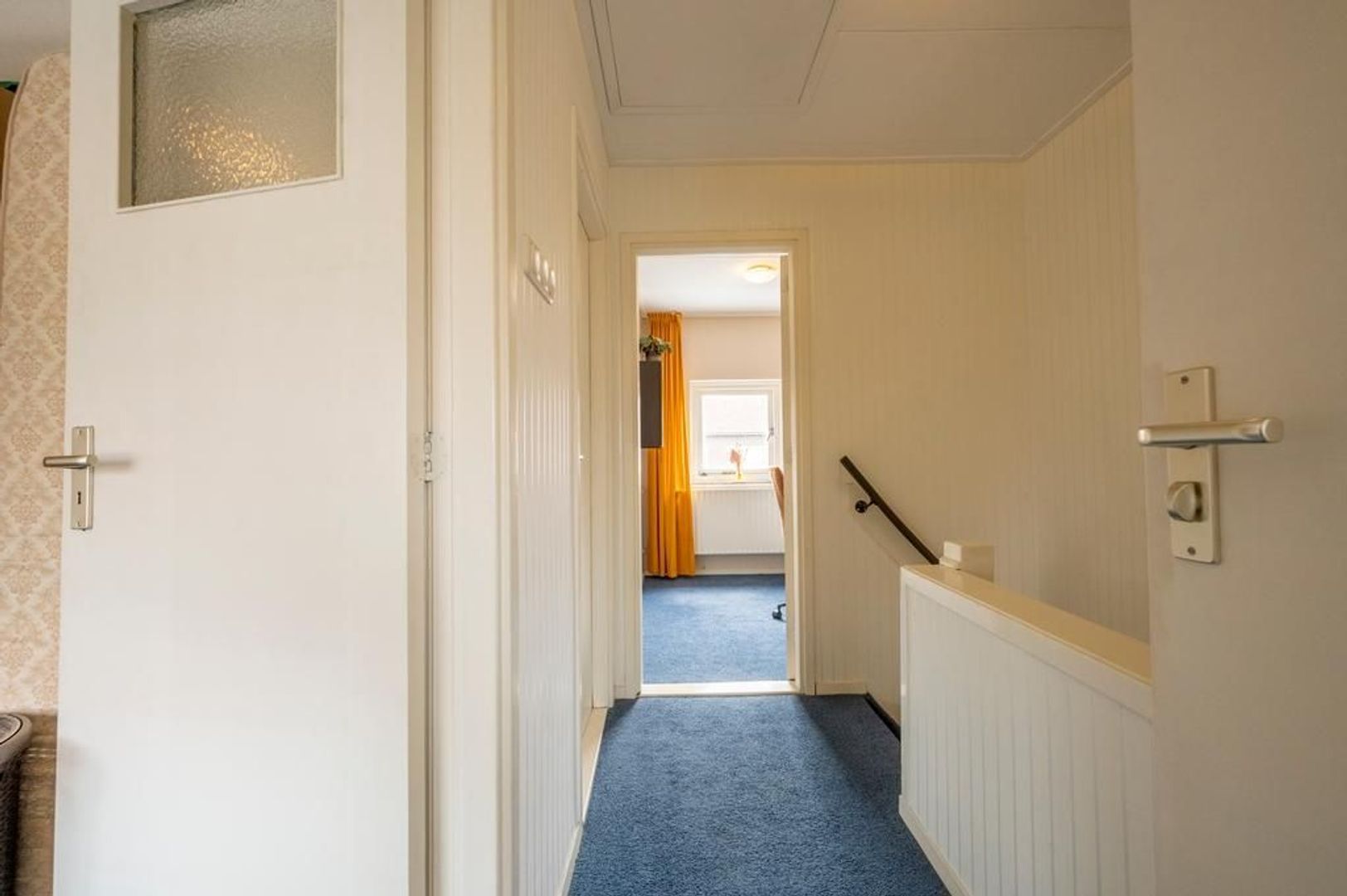 Op de eerste verdieping zijn de overloop, drie slaapkamers en de badkamer. Deze is ingericht met een doucheruimte en een wastafel.