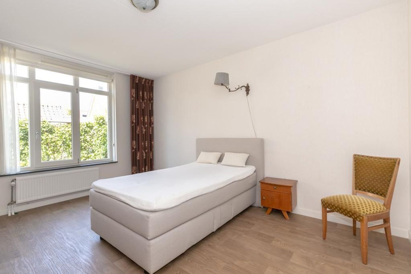Dit huis heeft op de begane grond een slaapkamer en een badkamer, maar heeft ook op de verdieping nog twee mooie slaapkamers. Het is dan ook verrassend groot.