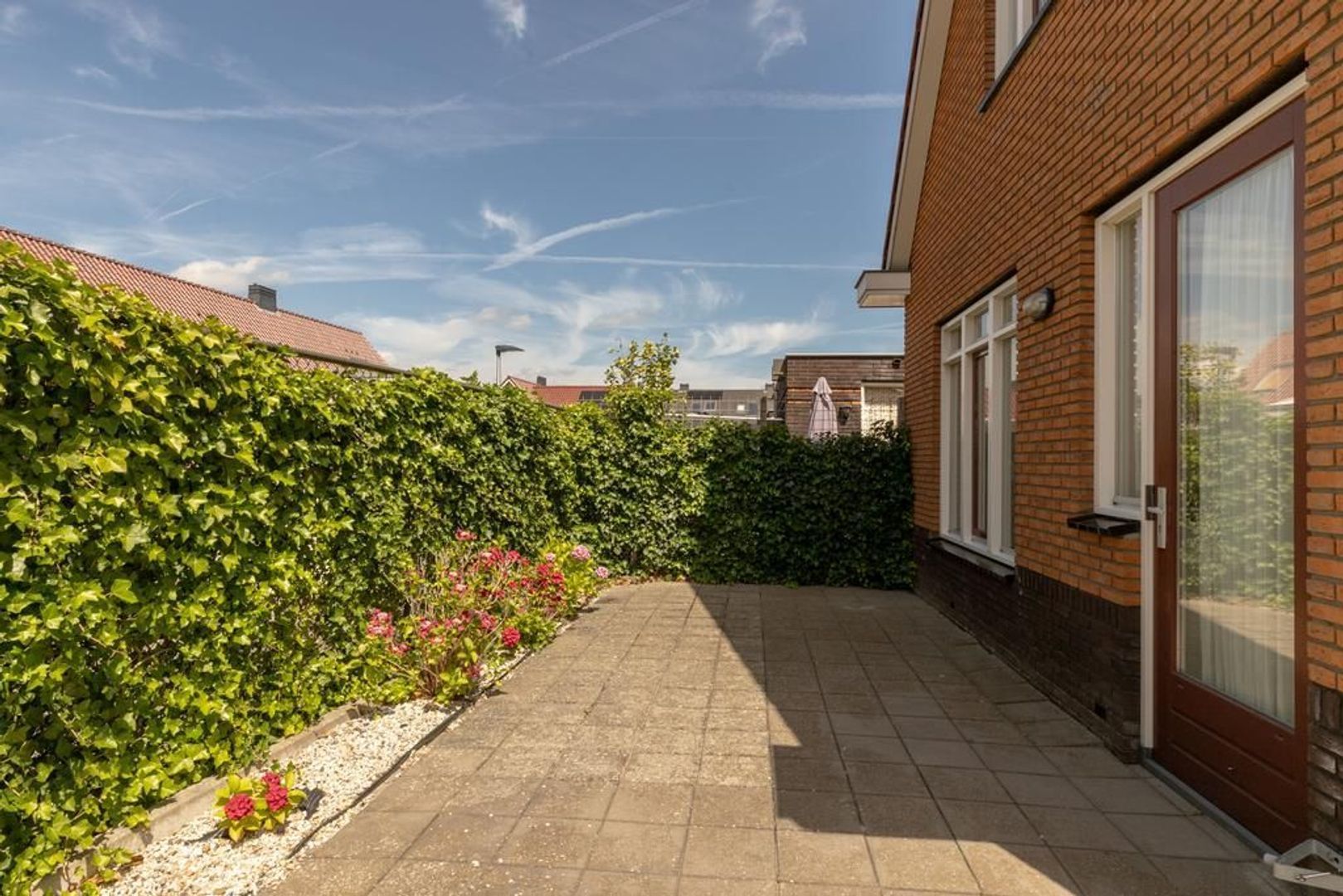 De tuin grenst aan openbaar groen, wat de privacy in de woning vergroot.