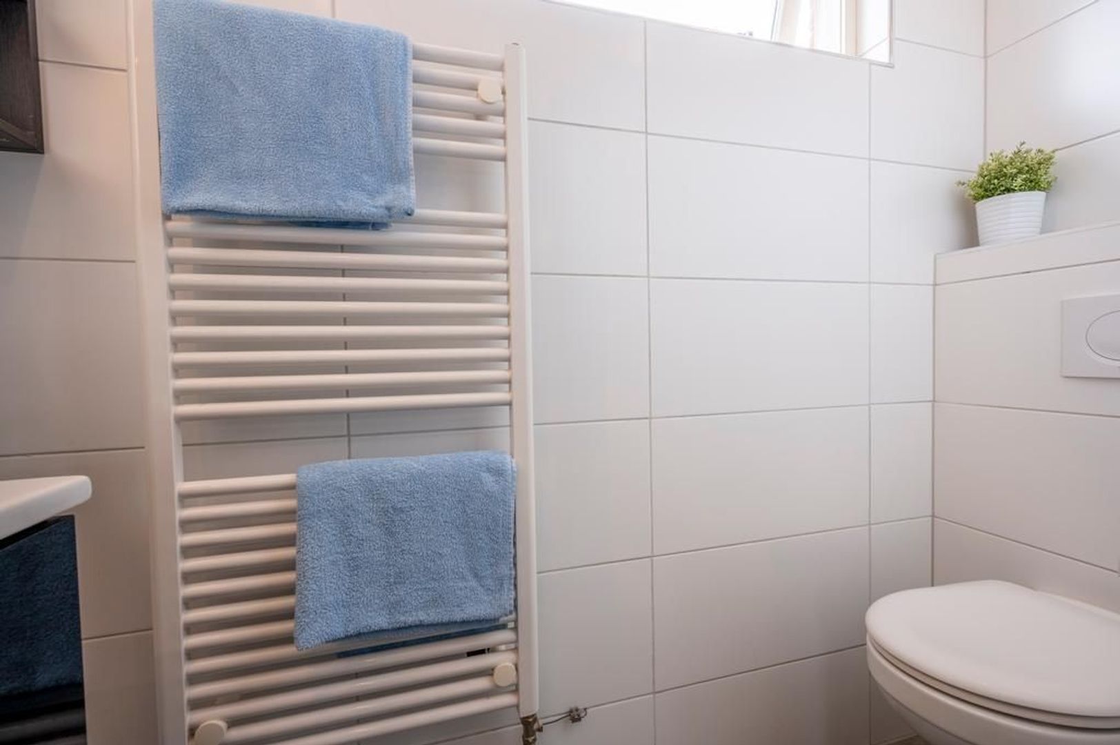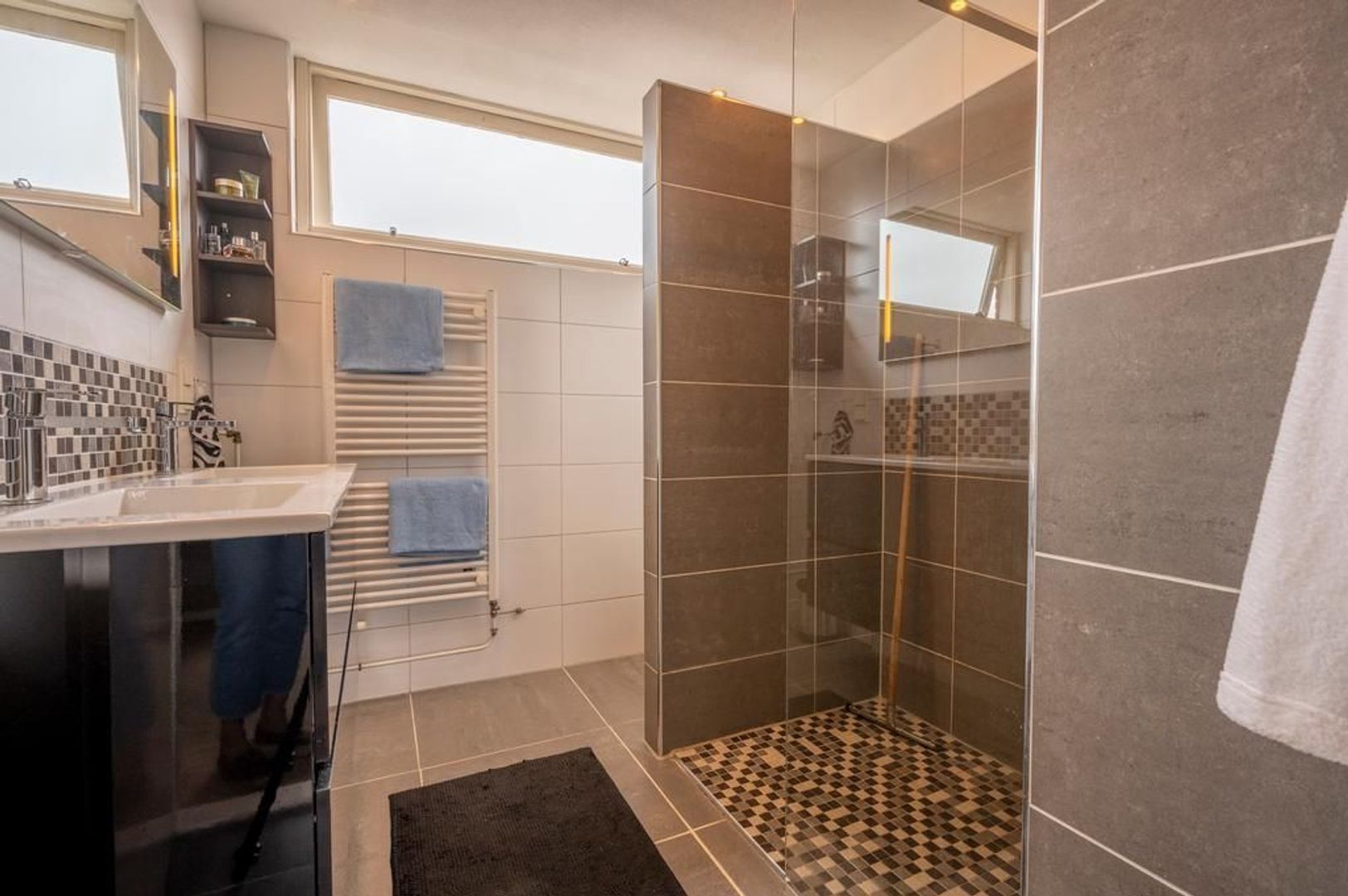 Deze is ingericht met een inloopdouche, een dubbel wastafelmeubel en een wandcloset.