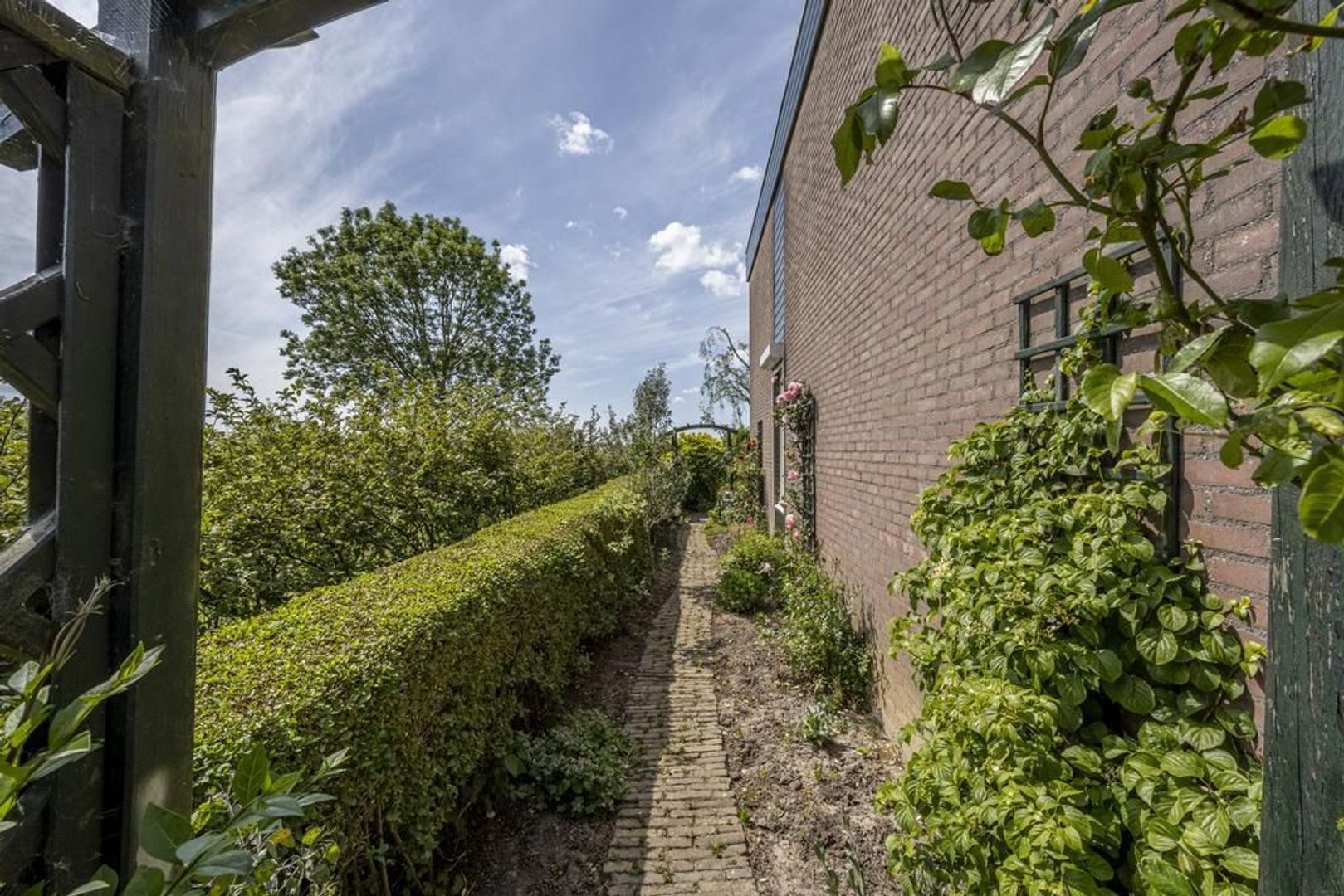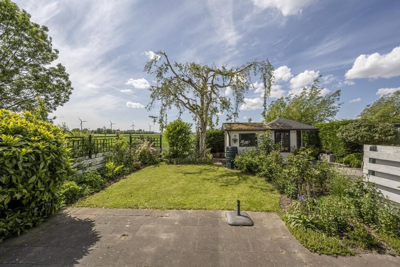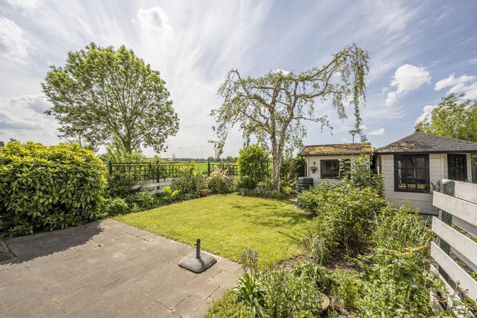 De tuin ligt op het westen. Deze is netjes aangelegd, met behoud van een open karakter. Achterin staat een houten berging.
