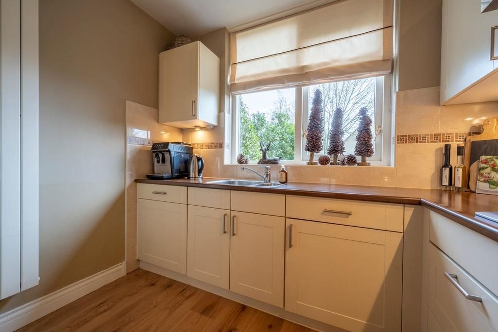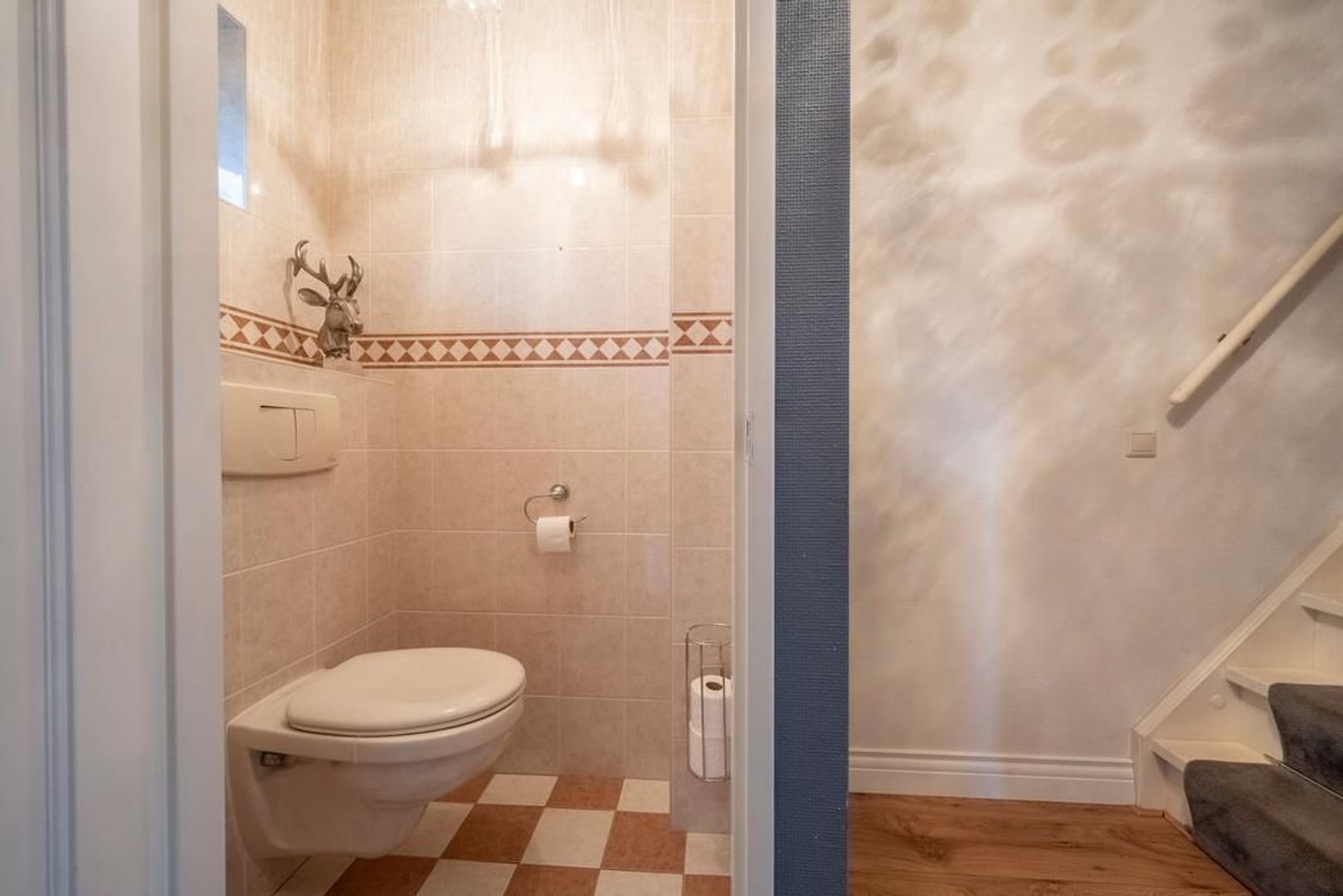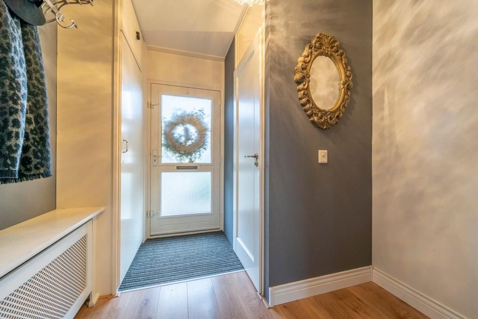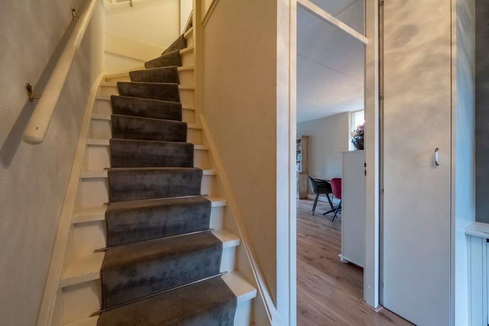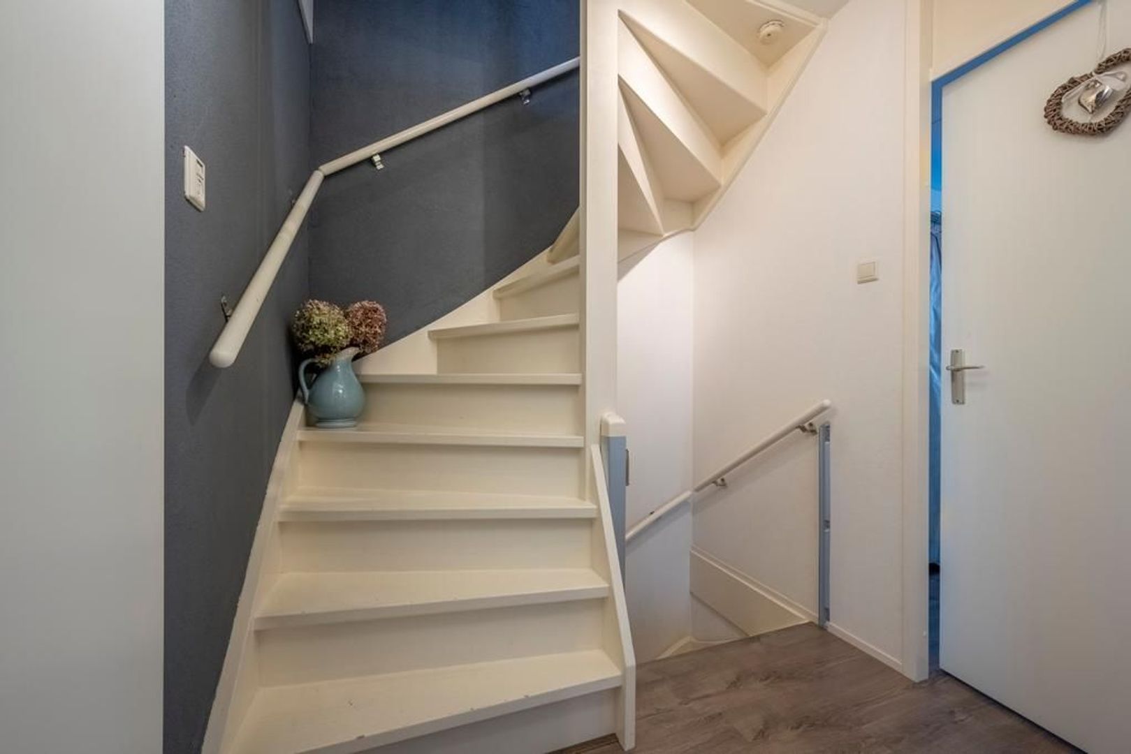 De vloer is afgewerkt met een eigentijdse laminaatvloer, de wanden met glasvezelbehang.