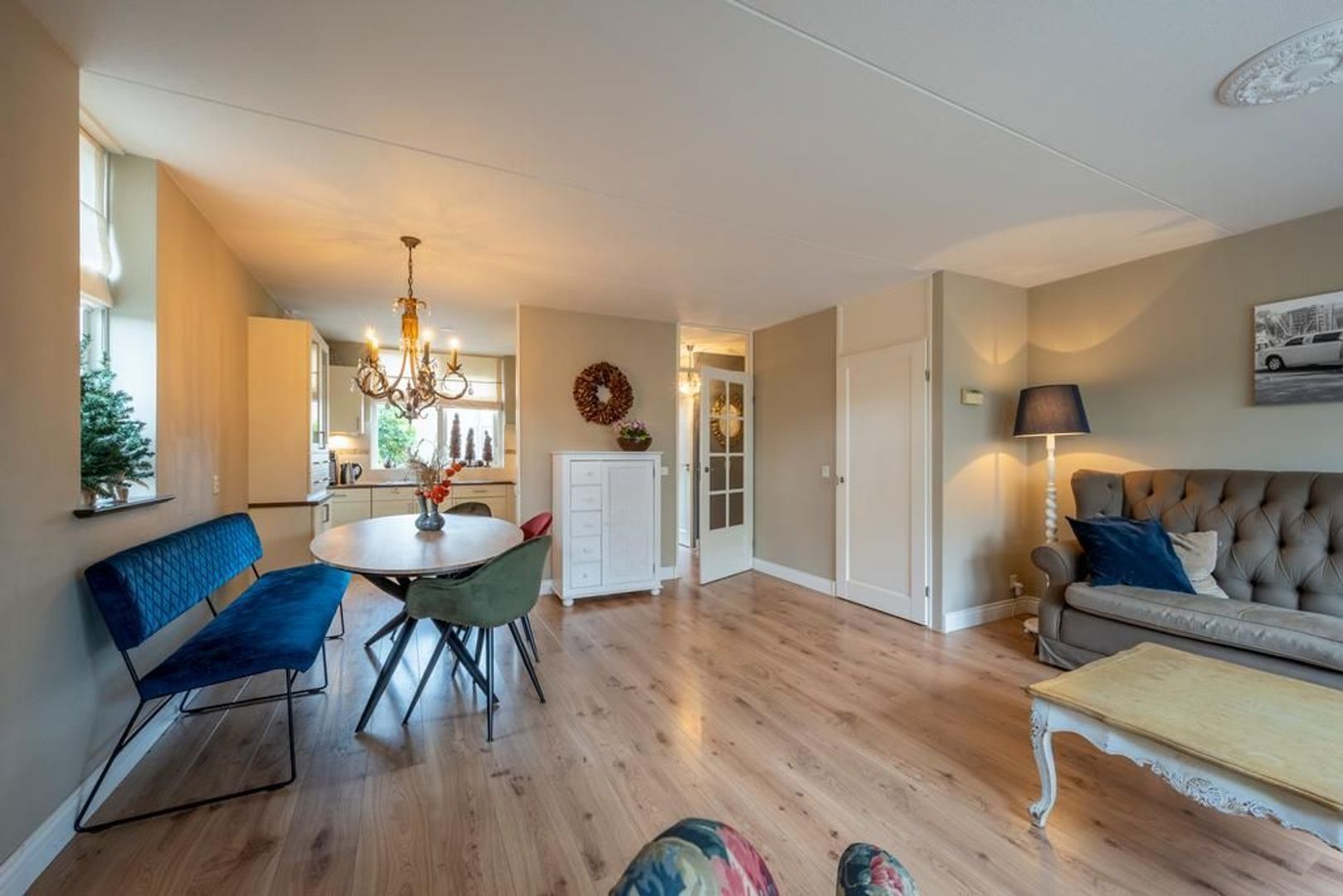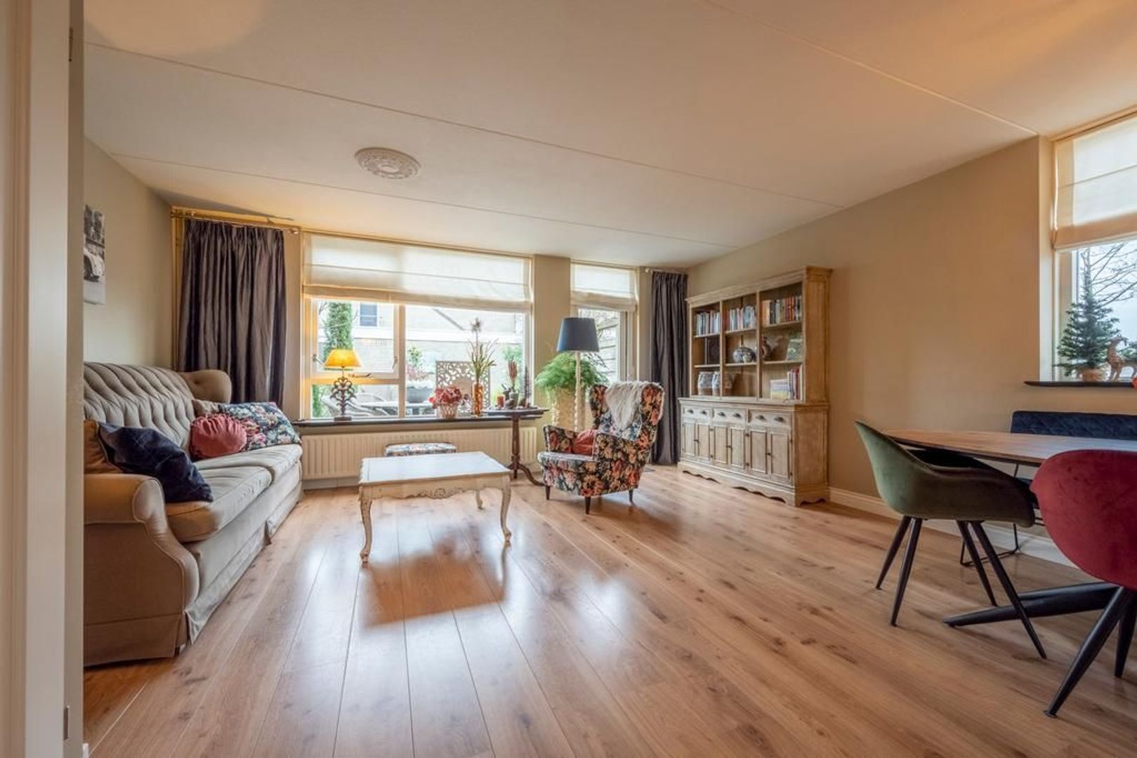 Laminaat vloerafwerking in de gehele woning (m.u.v. toilet en badkamer)