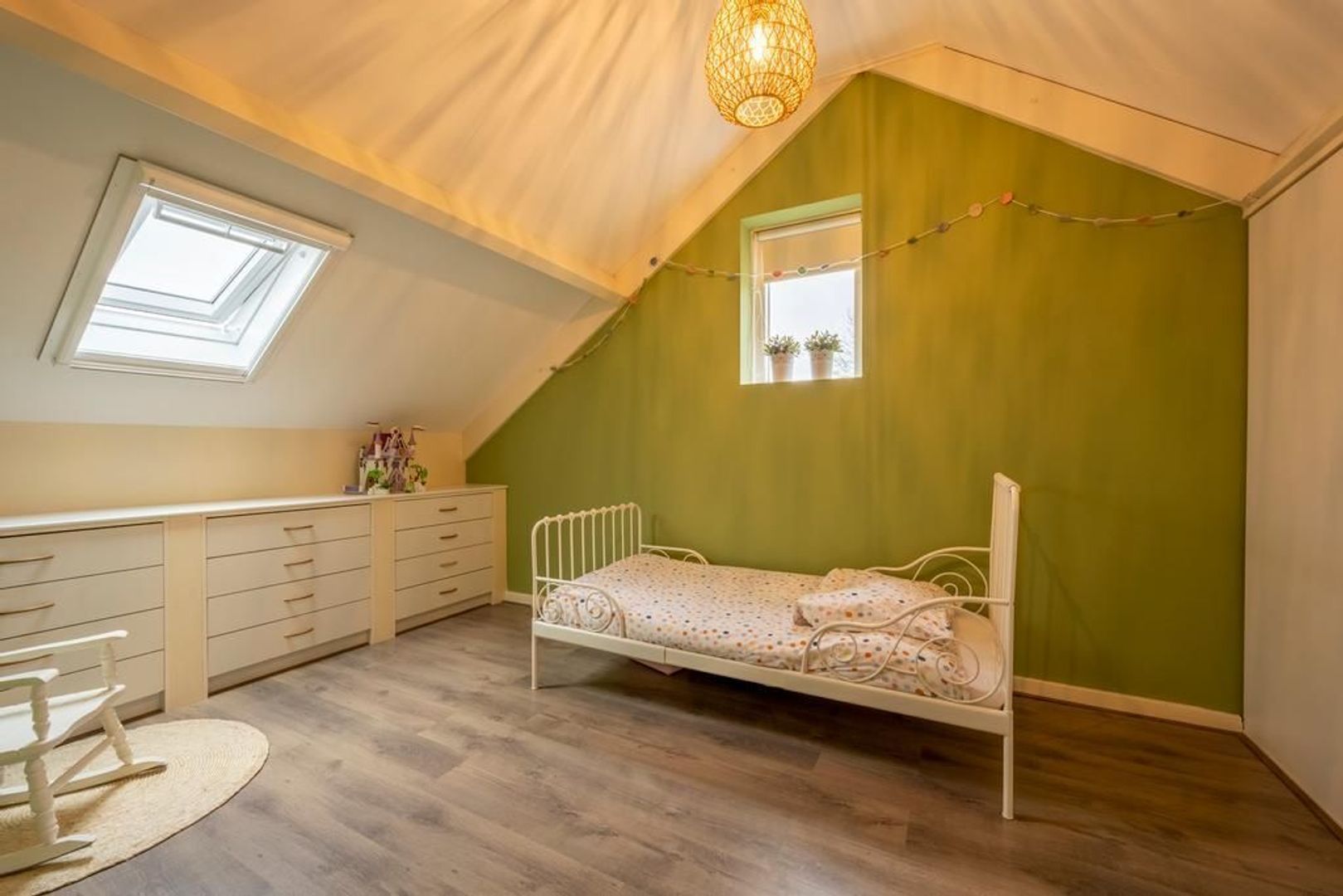 De vierde slaapkamer heeft een extra raam in de zijgevel en beschikt ook over een praktische vaste kast.