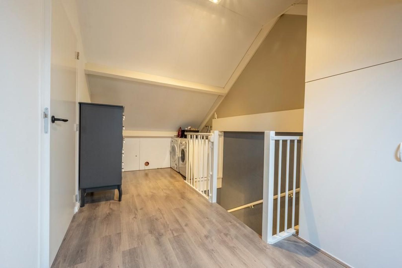 Op de voorzolder is plaats voor de wasmachine, de cv-ketel en de nodige opslagruimte.