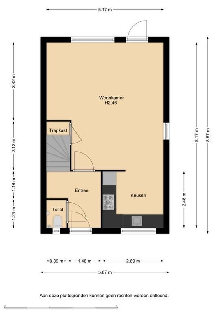 De indeling is als volgt: entree, hal, meterkast, trapopgang en toiletruimte met wandcloset.