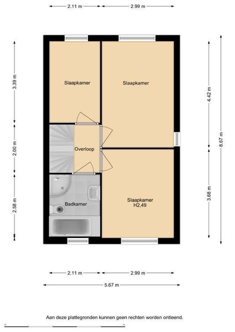 Op de eerste verdieping zijn drie slaapkamers. Deze zijn tevens afgewerkt met een laminaatvloer en glasvezelbehang.