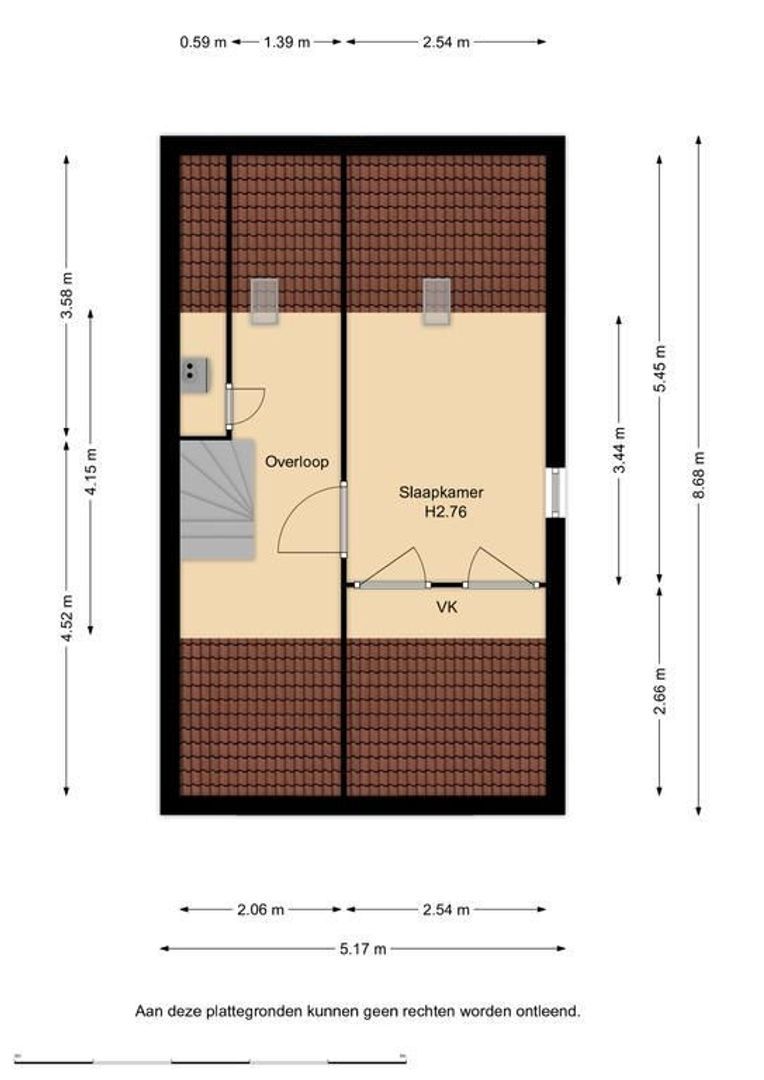 De tweede verdieping is met een vaste trap bereikbaar. Er zijn twee tuimelramen aangebracht, zodat het ook hier prettig licht is.