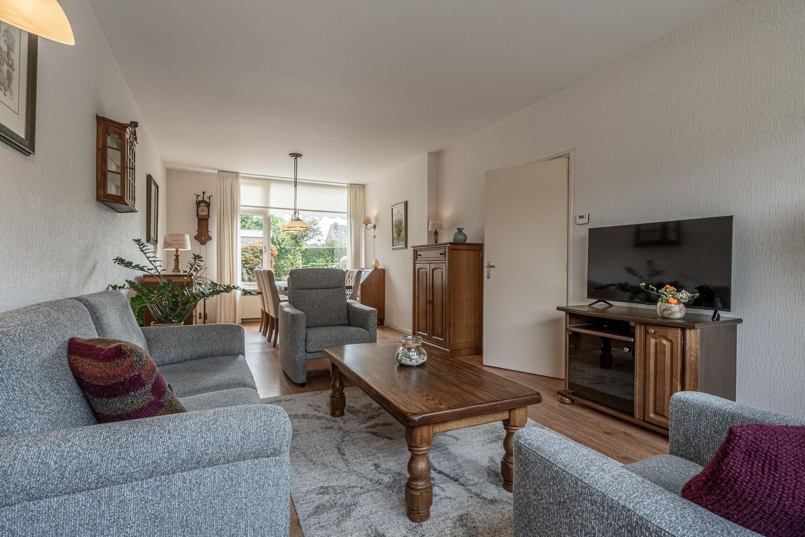 Royale doorzon woonkamer met zeil op de vloer.