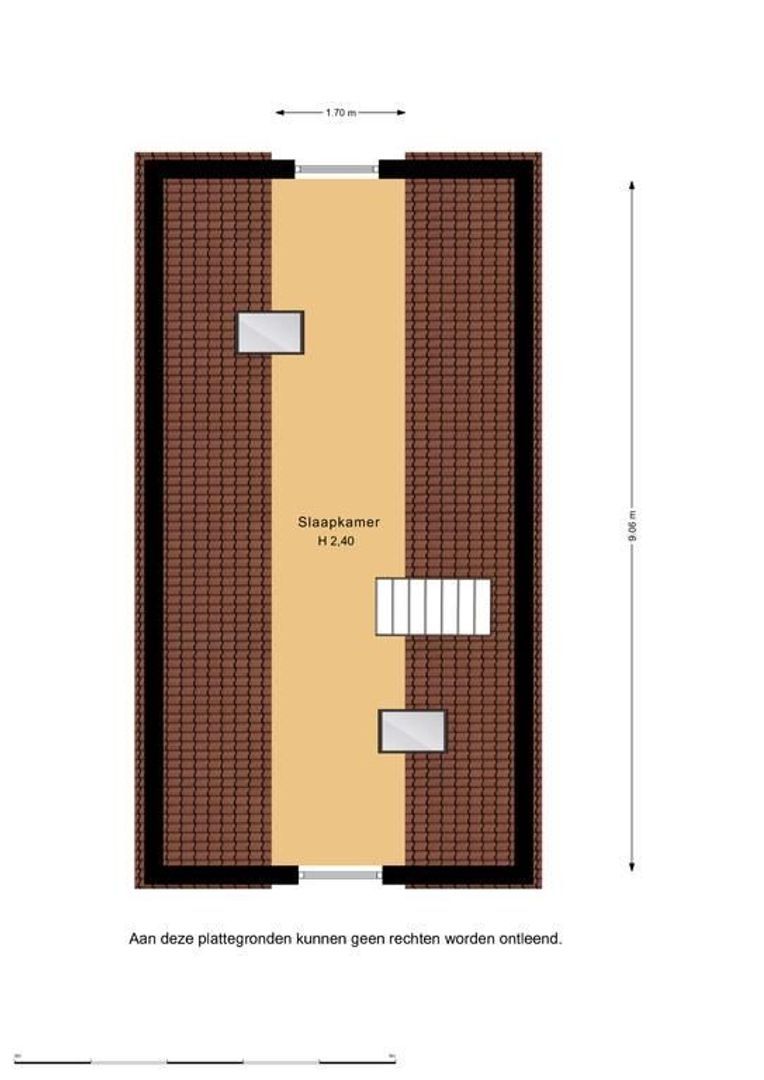 Dit is nu een grote open zolder met twee dakramen en twee zijramen. Het maken van één of twee extra kamers is hier mogelijk.