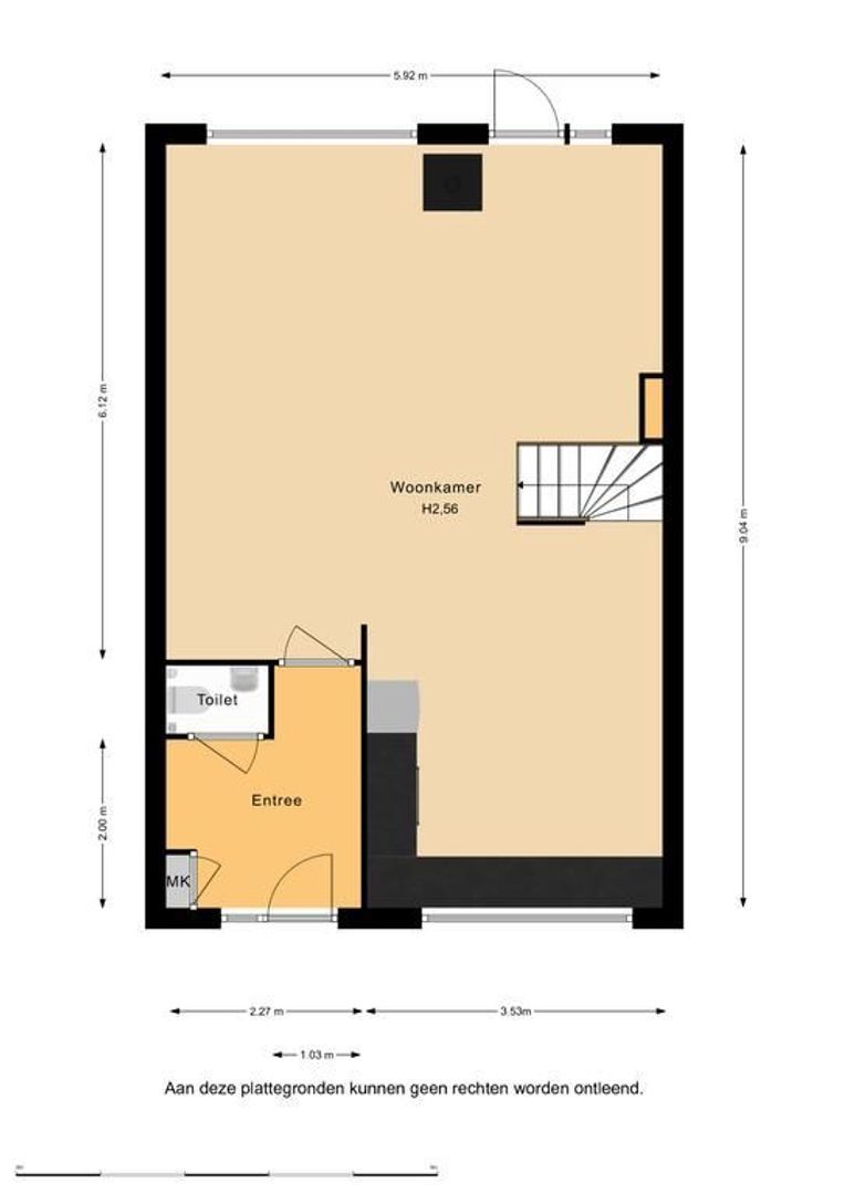 Het huis ligt in het midden van een rij van 5 geschakelde woningen en heeft de volgende indeling: entree, hal met meterkast en nette toiletruimte met wandcloset.