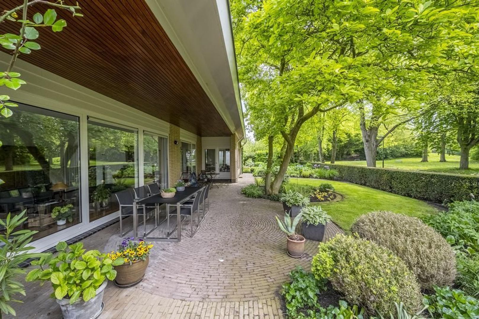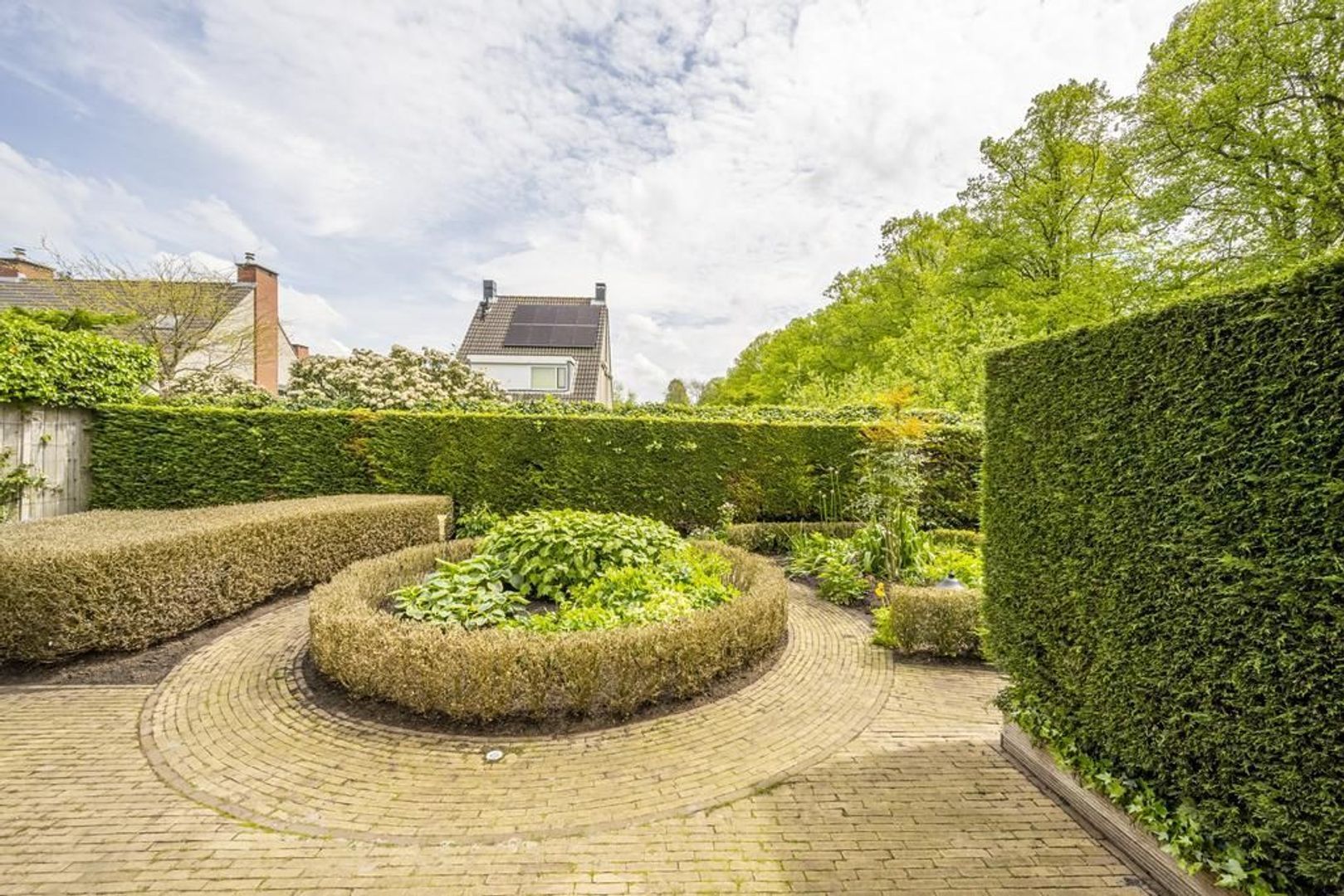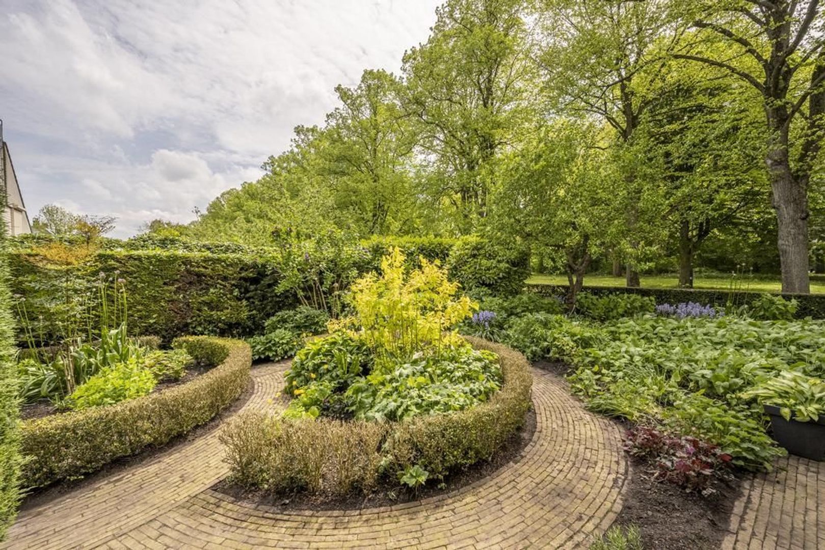 De tuin ligt aan drie kanten om het huis. Aan de zuidkant bevindt zich een mooi terras, dat uitkijkt op het park.