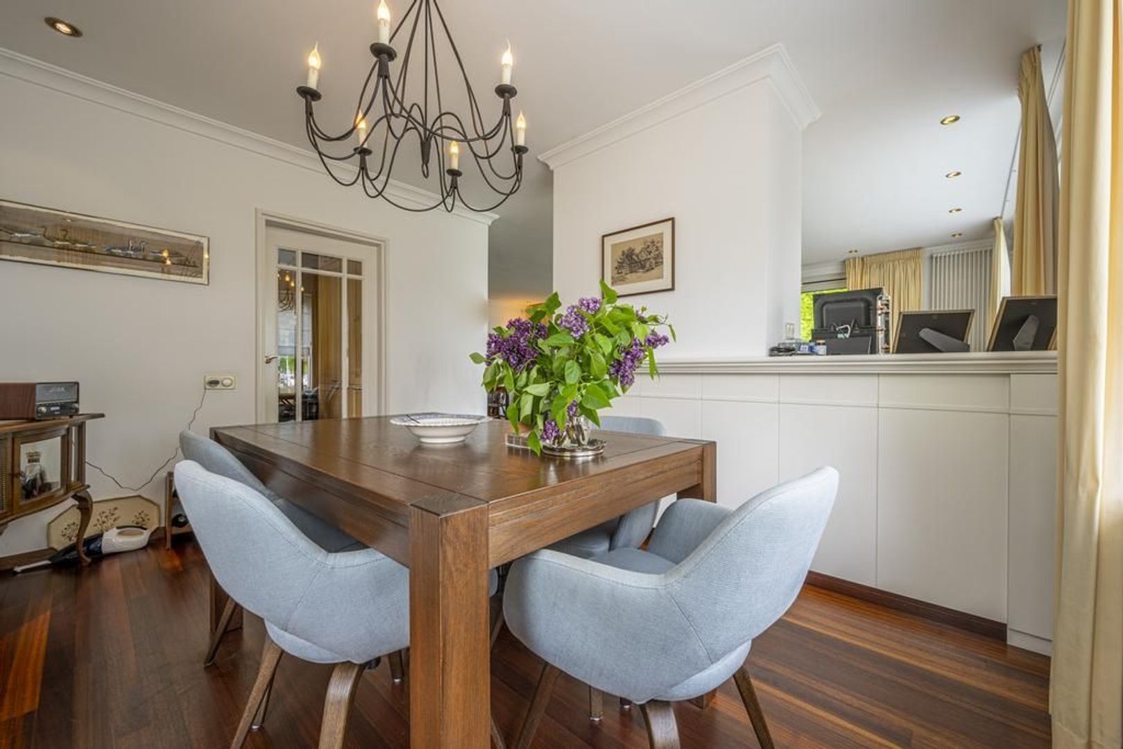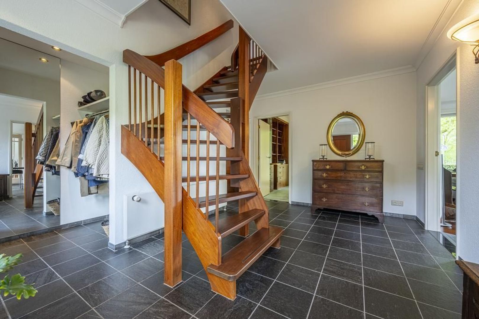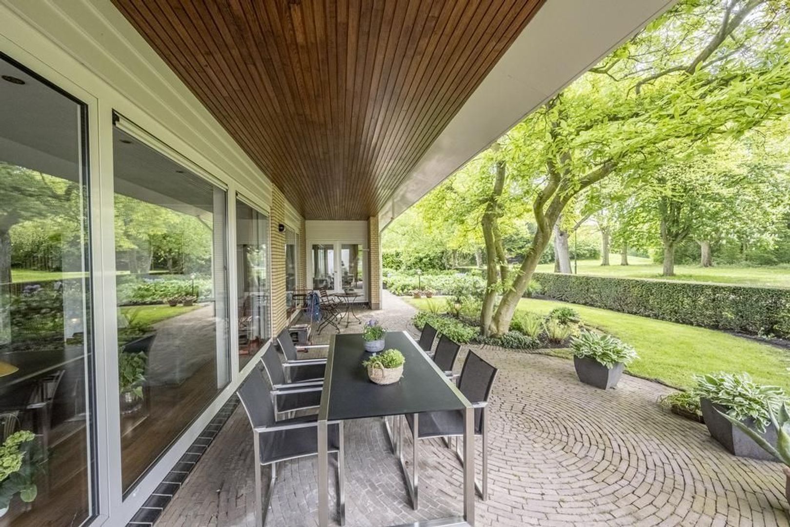 De tuin ligt aan drie kanten om het huis. Aan de zuidkant bevindt zich een mooi terras, dat uitkijkt op het park.