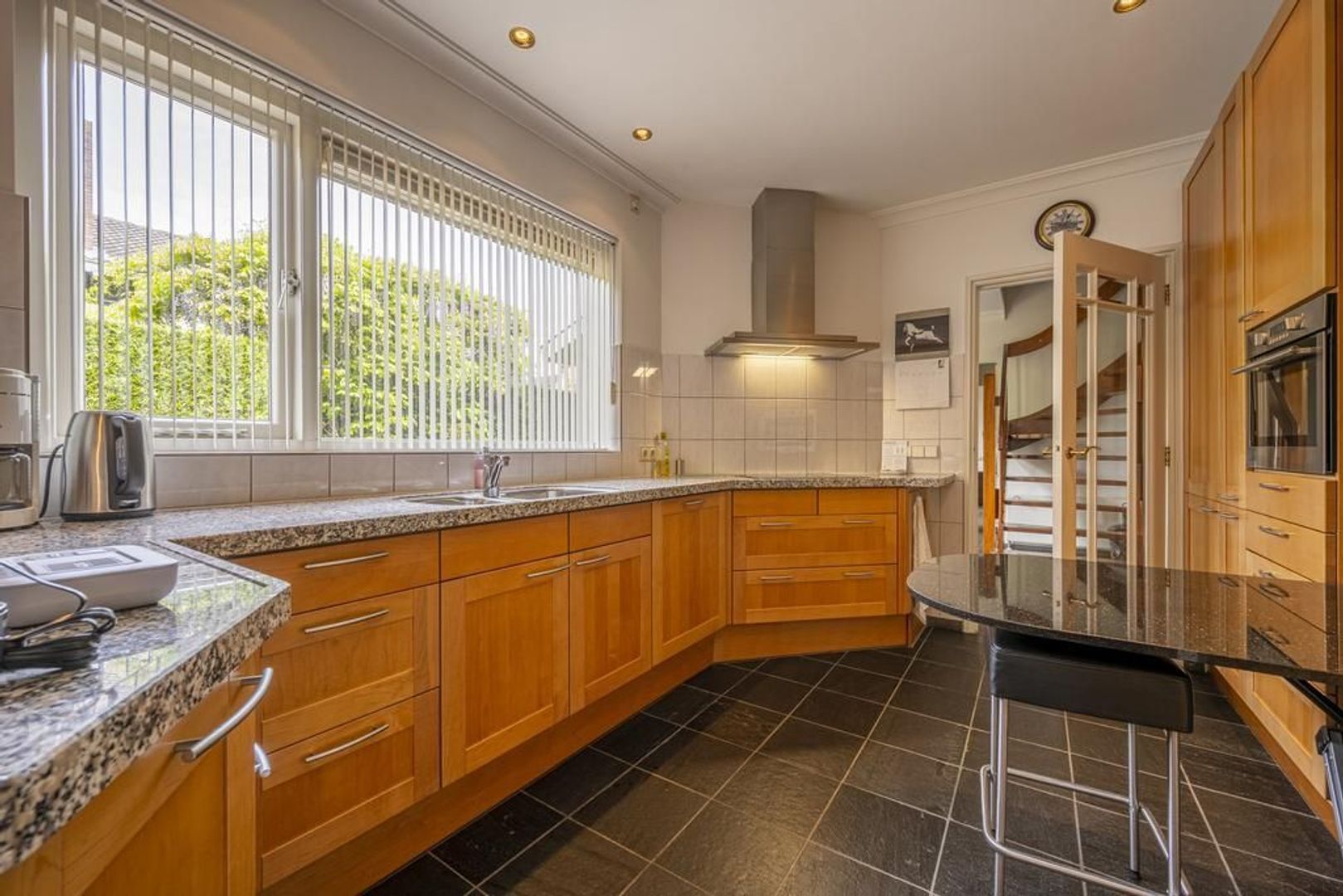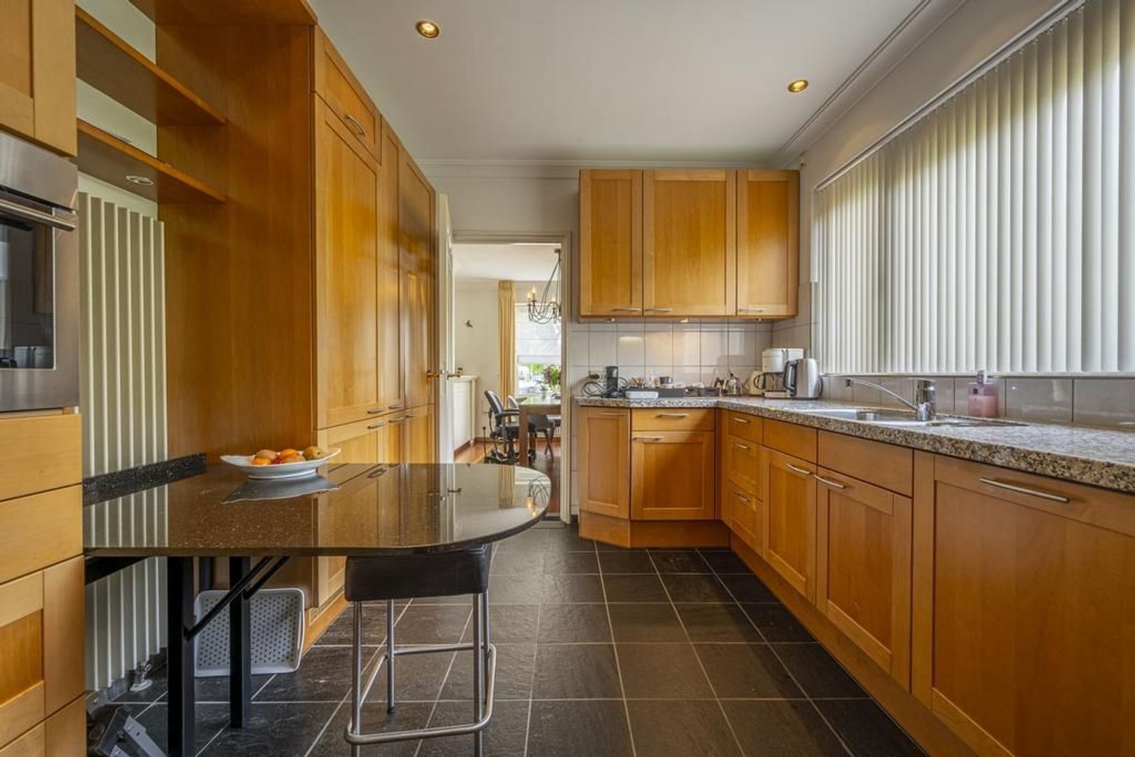 De dichte keuken is voorzien van een wandopstelling met granieten aanrechtblad en diverse inbouwapparaten. Daarnaast zijn er veel vaste kasten, dus voldoende bergruimte.