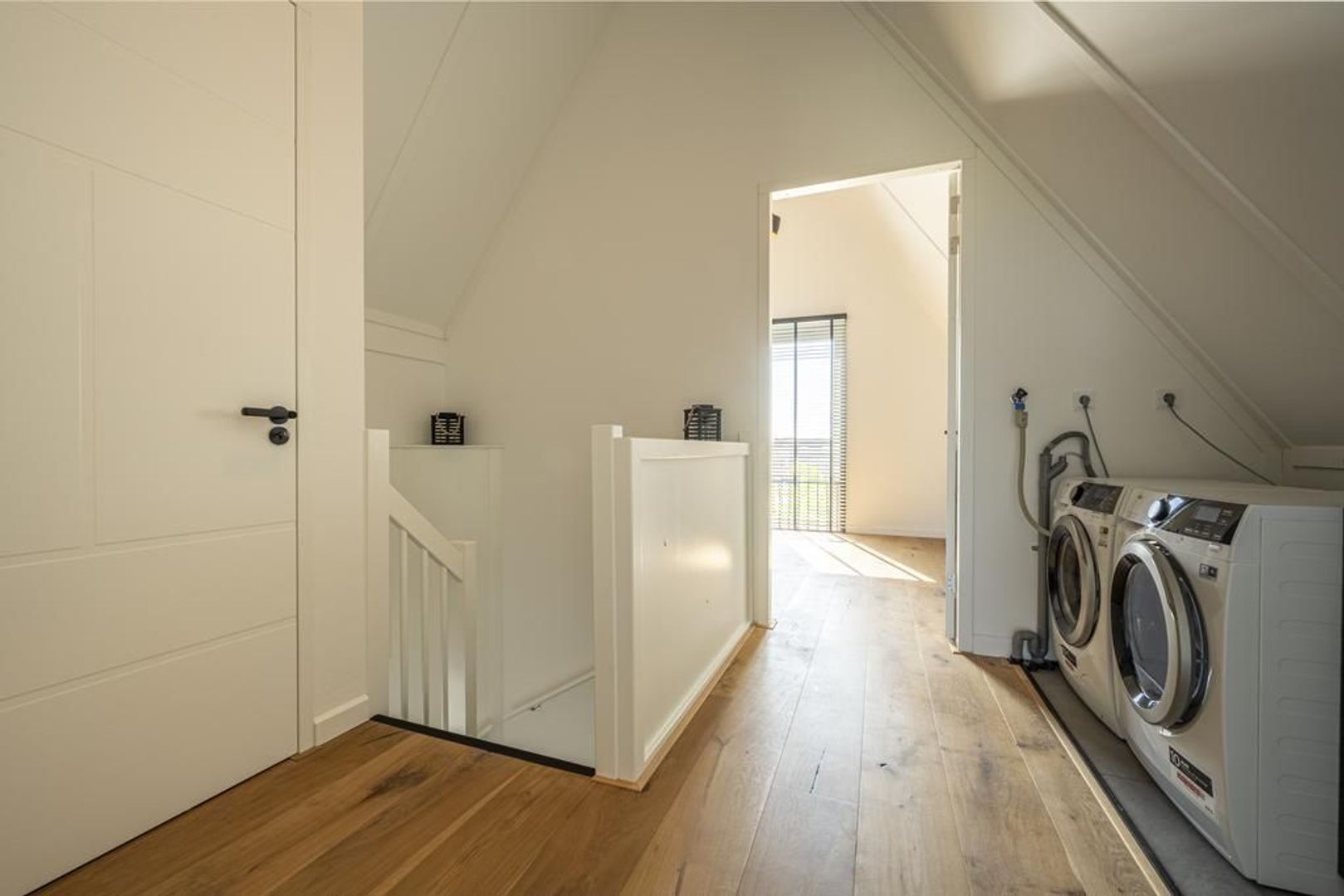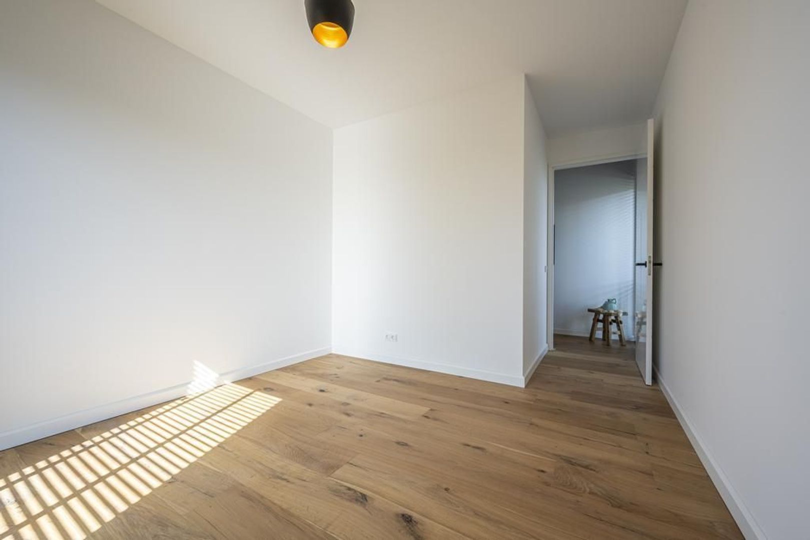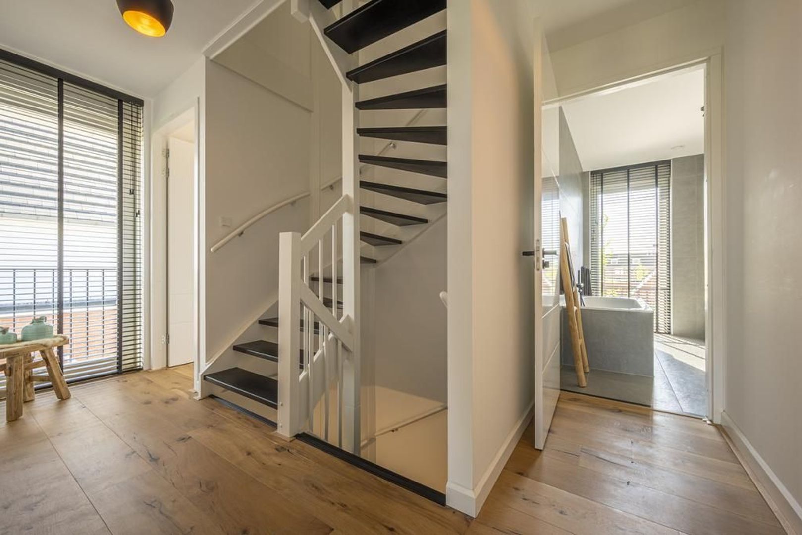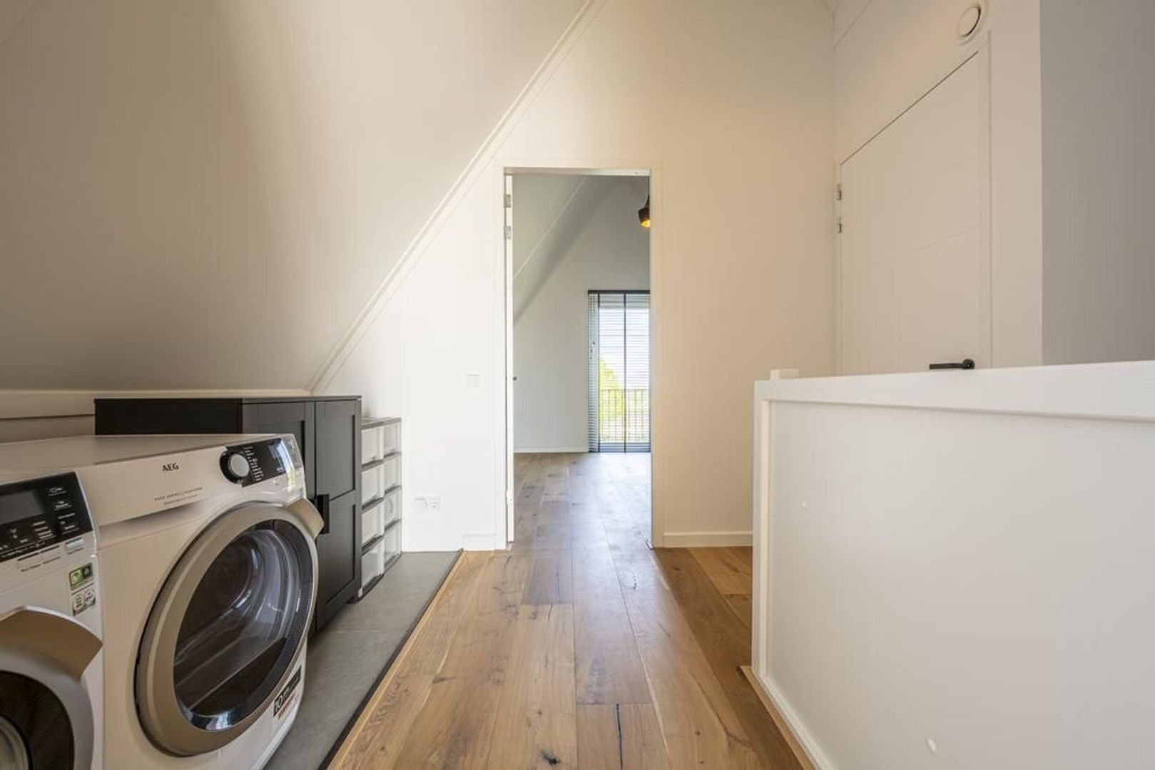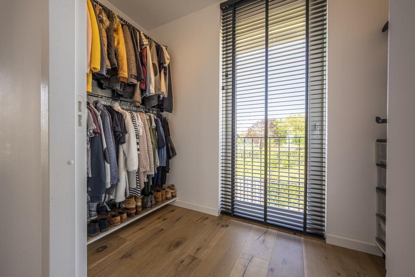 De tweede verdieping is ook verassend ruim, met een overloop voor de wasapparatuur en een aparte cv-kast, met hierin de Intergas HR cv-combiketel, mechanische ventilatie en omvormer zonnepanelen. Verder twee grote slaapkamers, waarvan één met rolluik op zonne-energie. Ook op deze verdieping ligt een eiken lamelparketvloer.