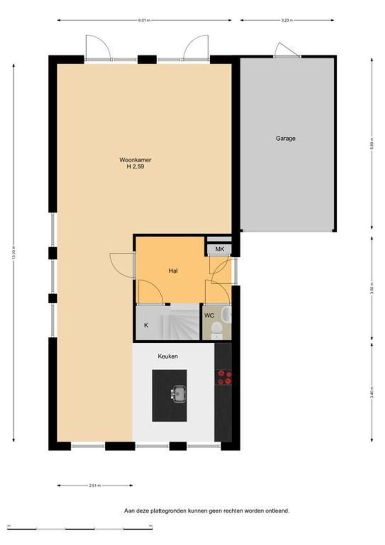 De indeling is globaal als volgt: entree, hal met toiletruimte, trapkast en trapopgang naar de eerste verdieping. Royale L-vormige woonkamer met diverse openslaande deuren naar de zij- en achtertuin.