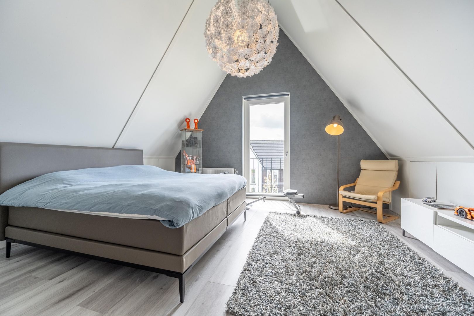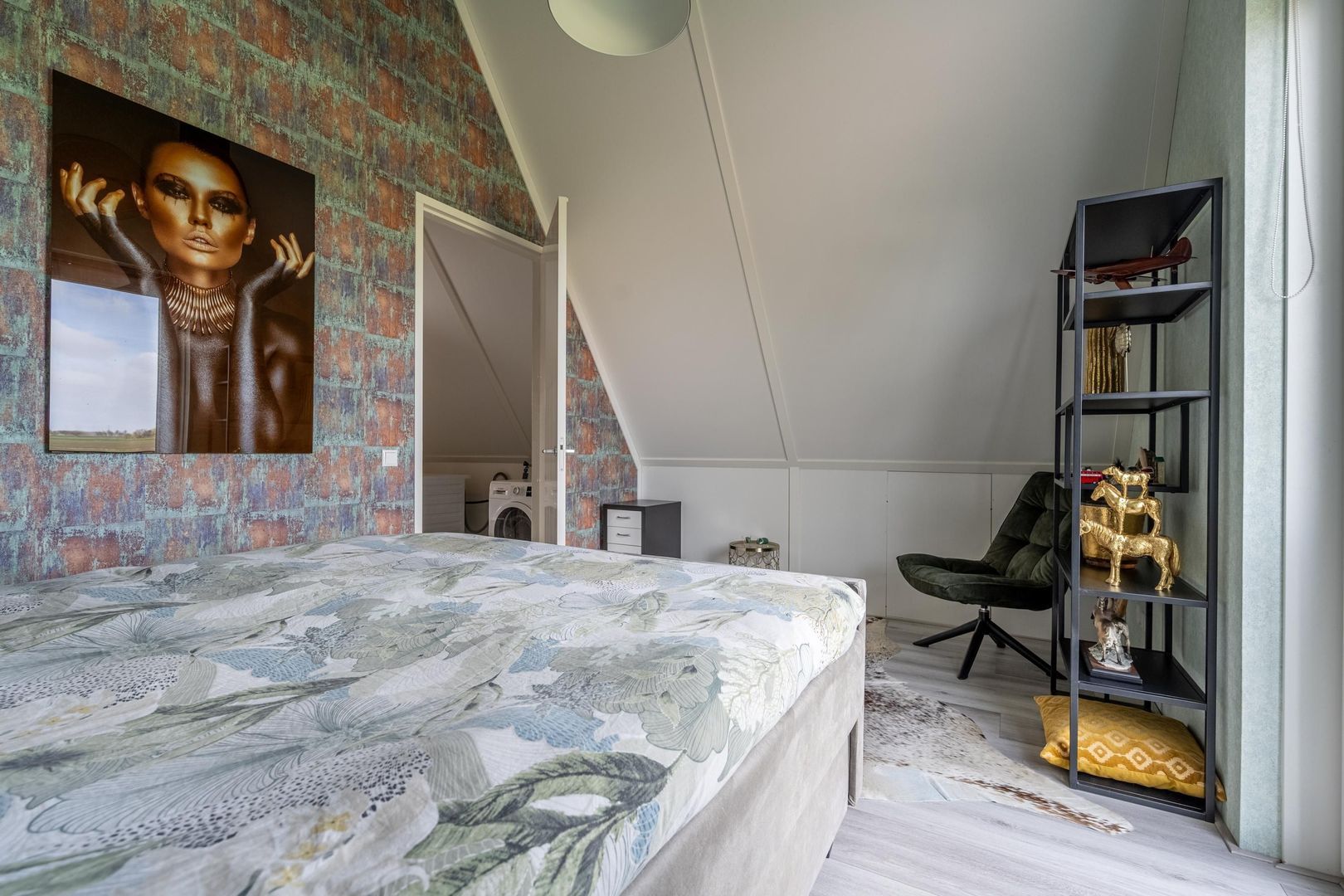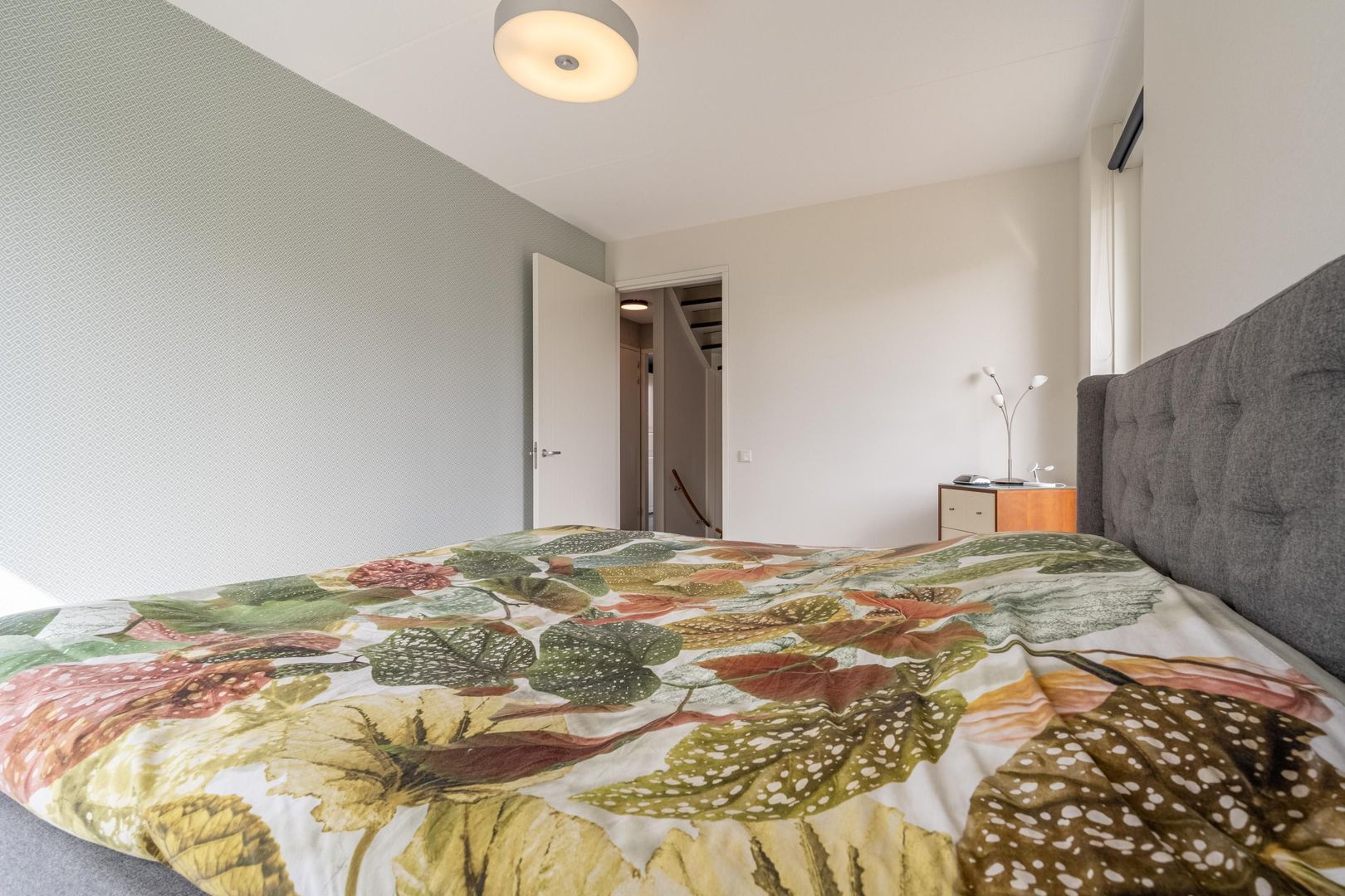 De tweede verdieping is met een vaste trap bereikbaar. Omdat het huis zo hoog is, konden hier met gemak nog twee extra slaapkamers worden gerealiseerd. Op de overloop/voorzolder is ruimte voor de wasapparatuur en in de kast hangt de cv-ketel.