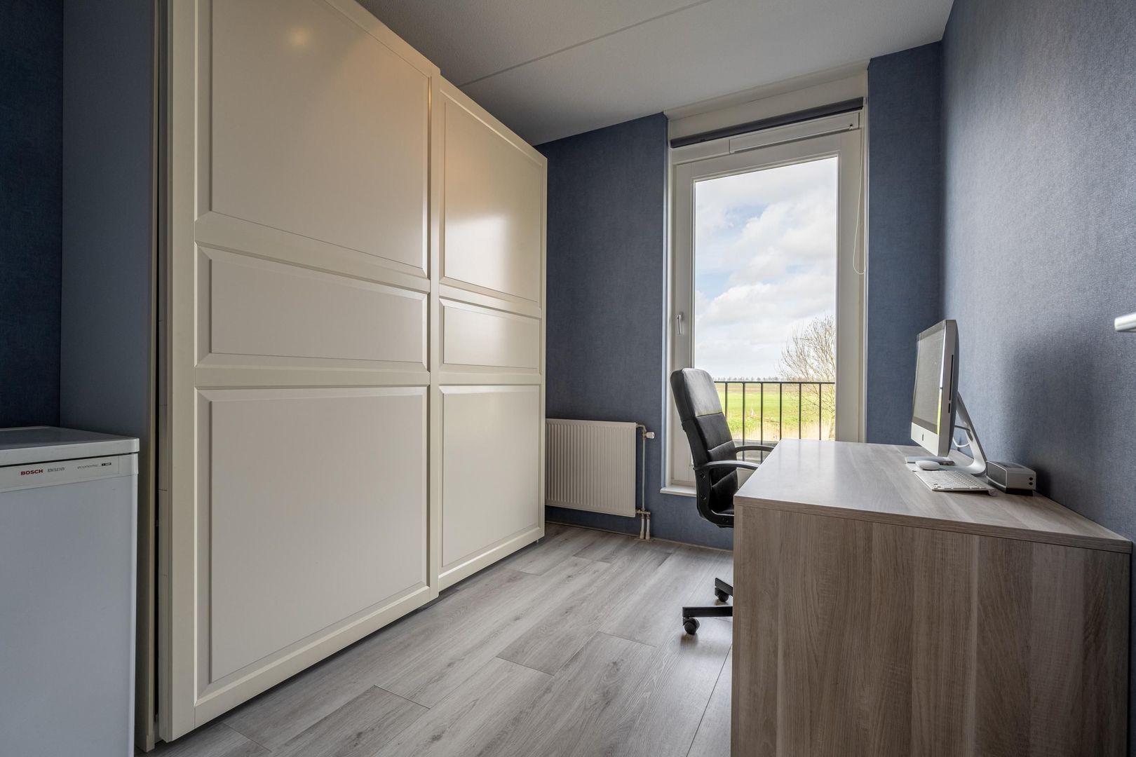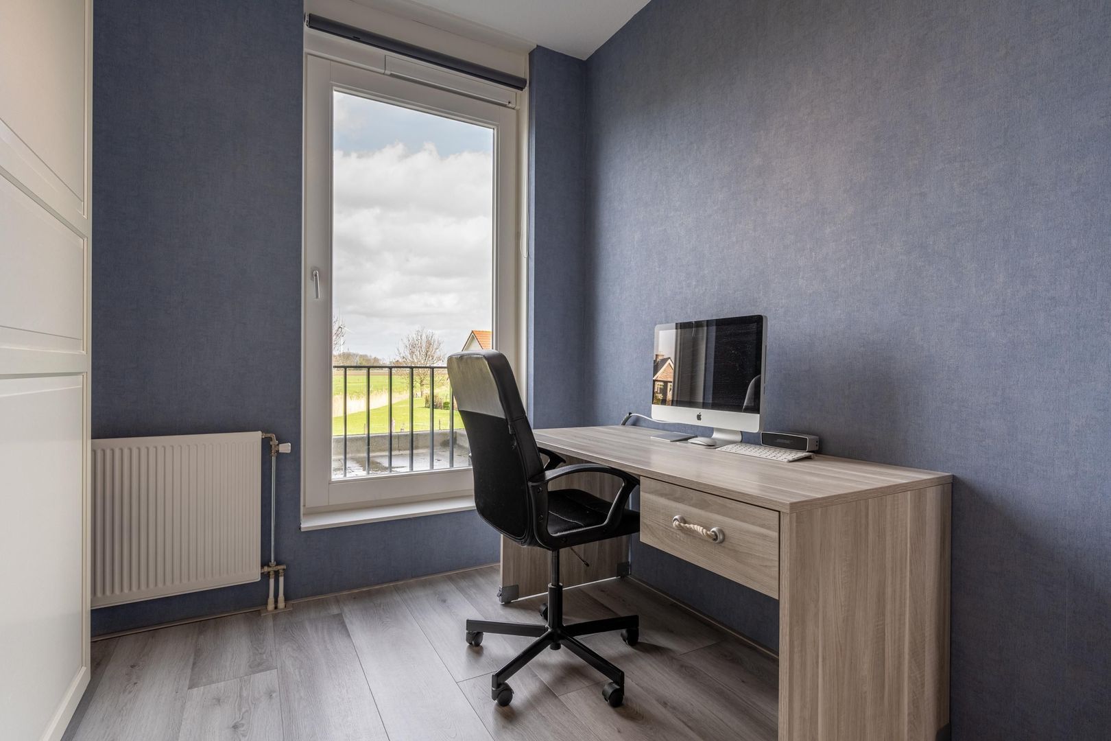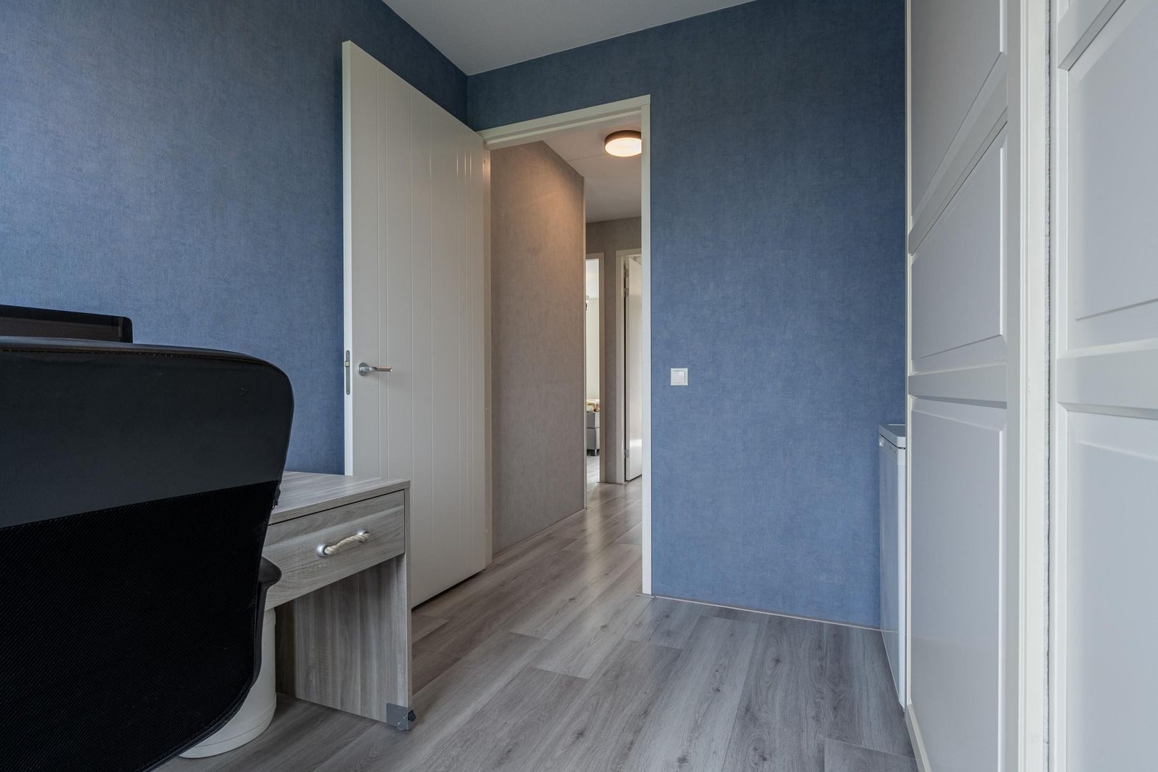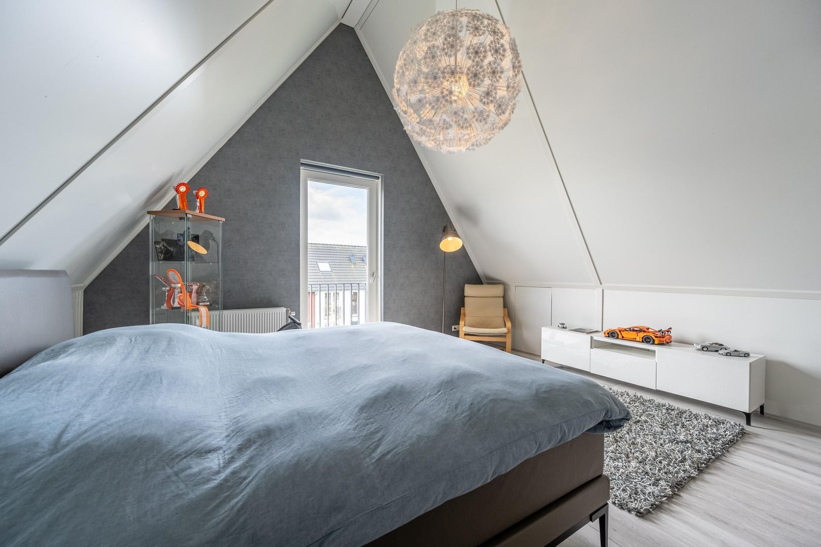 De tweede verdieping is met een vaste trap bereikbaar. Omdat het huis zo hoog is, konden hier met gemak nog twee extra slaapkamers worden gerealiseerd. Op de overloop/voorzolder is ruimte voor de wasapparatuur en in de kast hangt de cv-ketel.