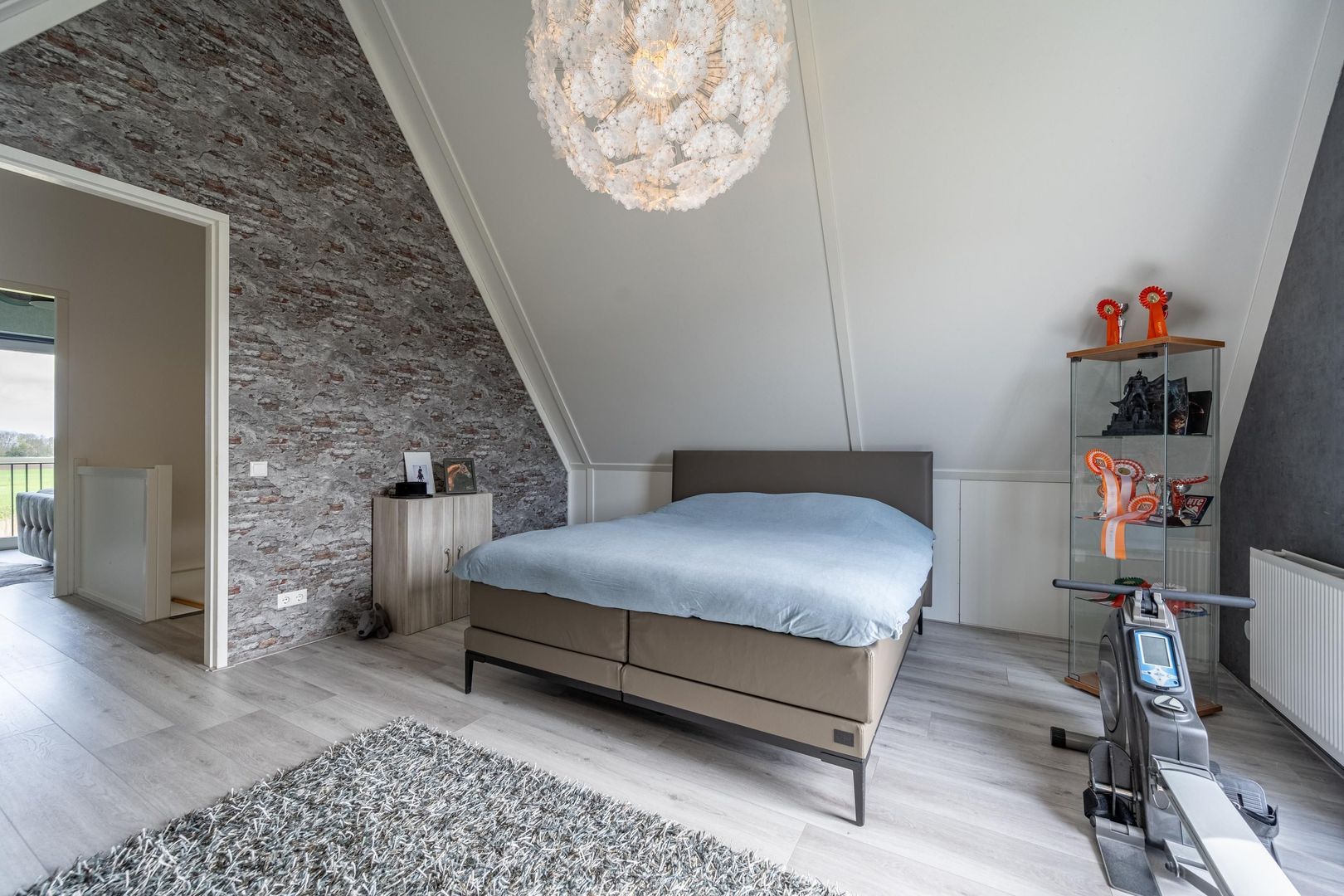 Op de eerste verdieping zijn vier slaapkamers en de badkamer. Ook hier weer veel licht door de plafondhoge kiep-kantelramen. De vloeren zijn afgewerkt met laminaat.