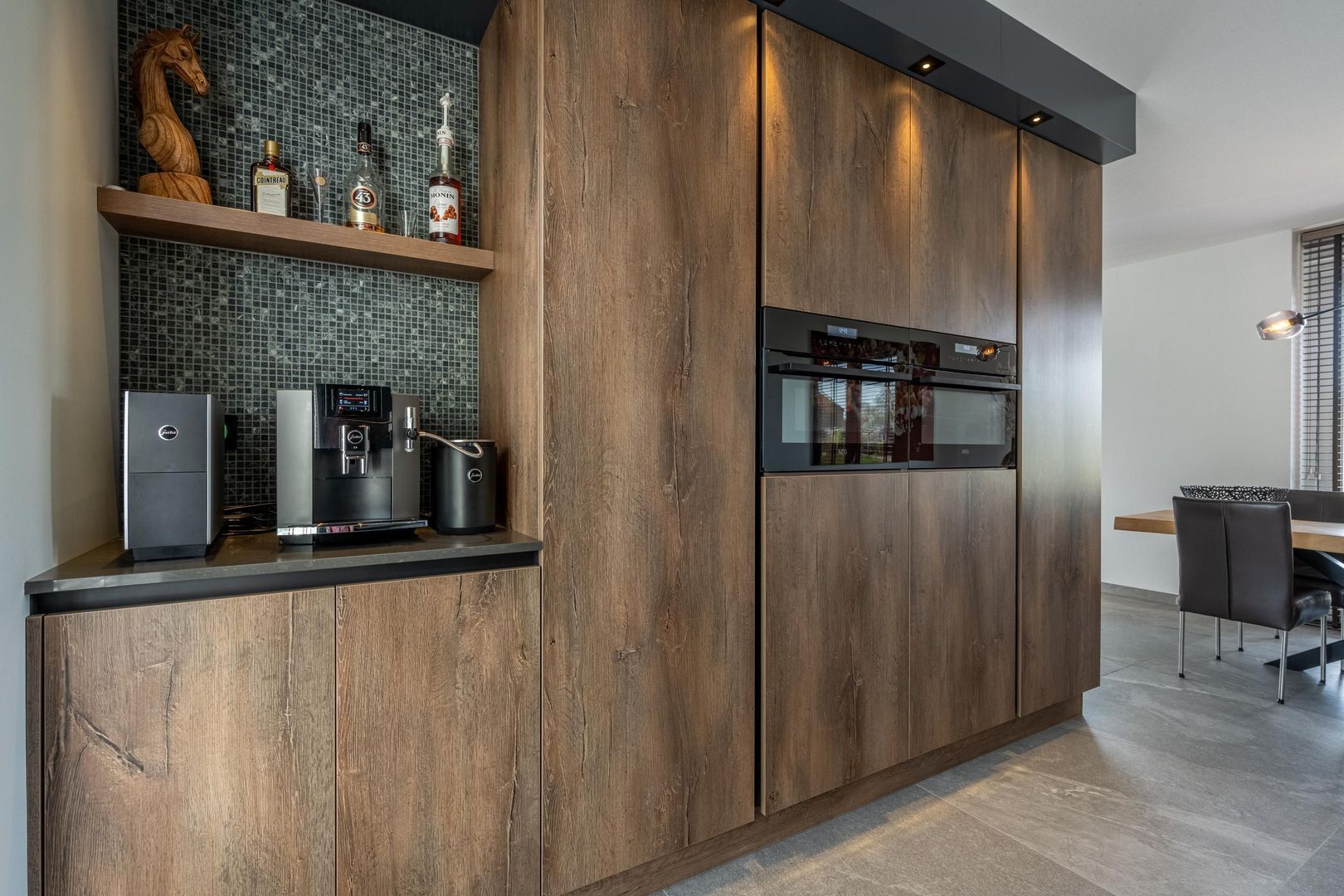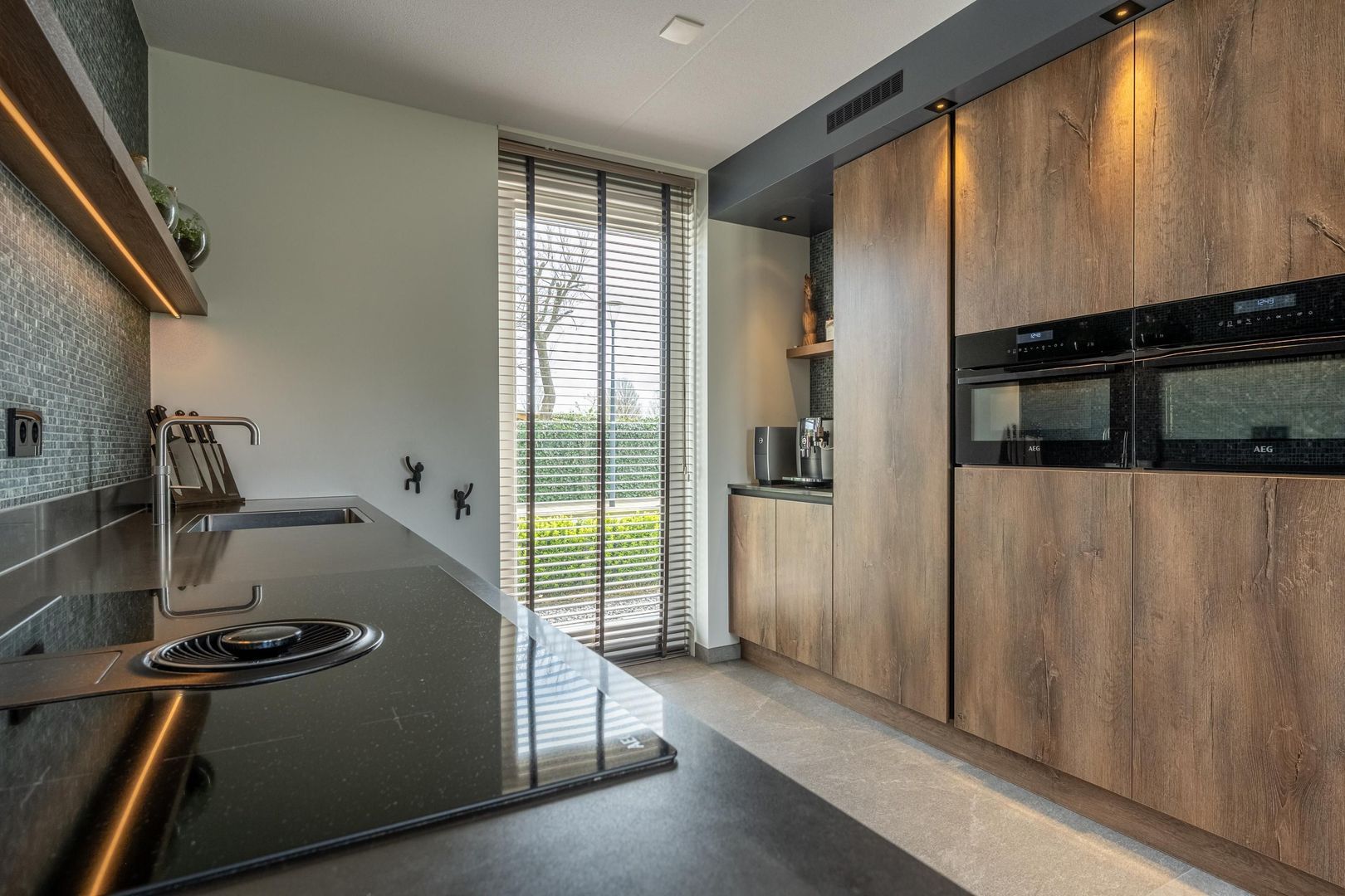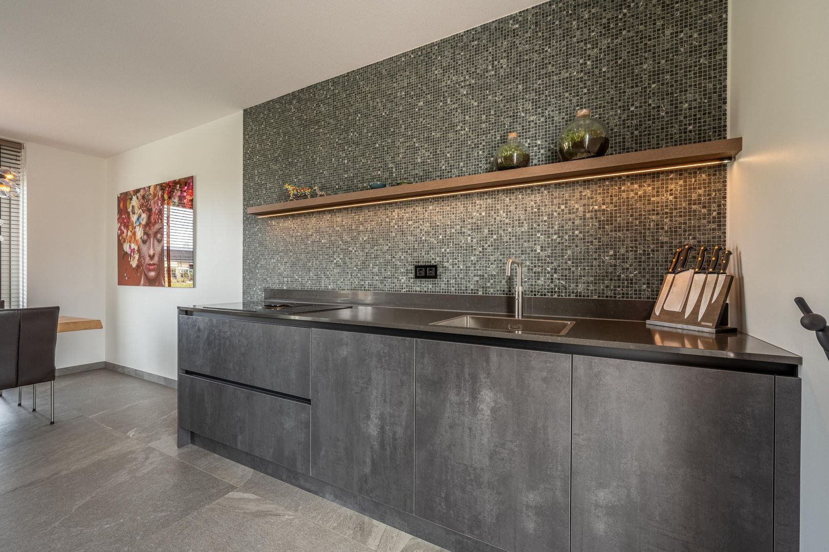 De open keuken is stoer en ingericht met een dubbele wandopstelling met complete inbouwapparatuur, waaronder een kookplaat met geïntegreerde afzuigkap, stoomoven, combimagnetron, grote koelkast met koelzone, vaatwasser en (7-liter)Quooker. Er is voldoende kastruimte en het aanrechtblad bestaat uit hoogwaardig materiaal.