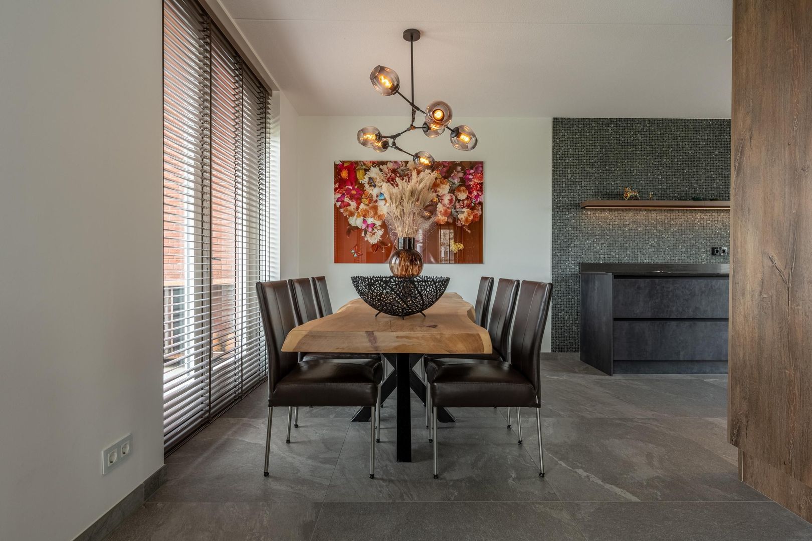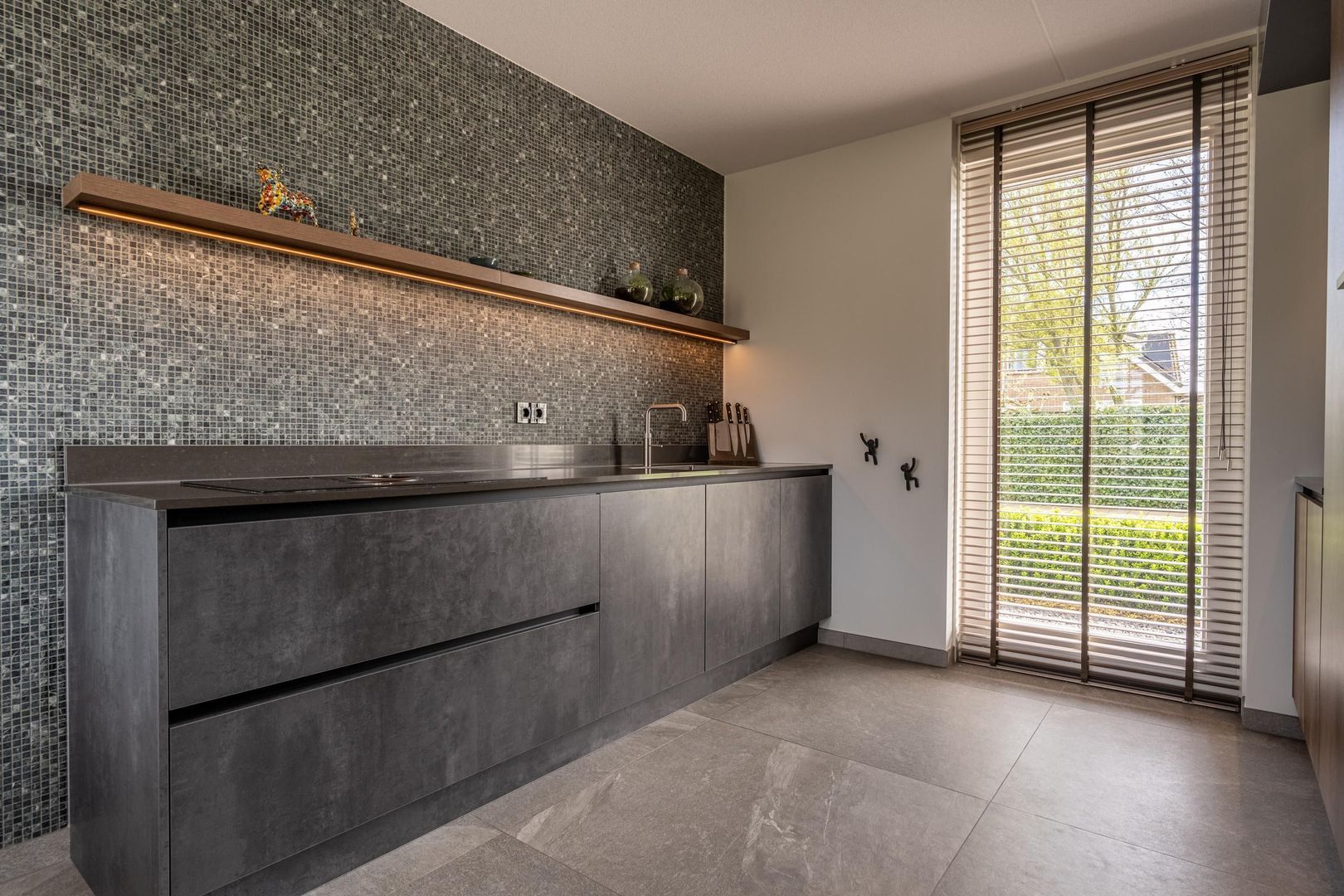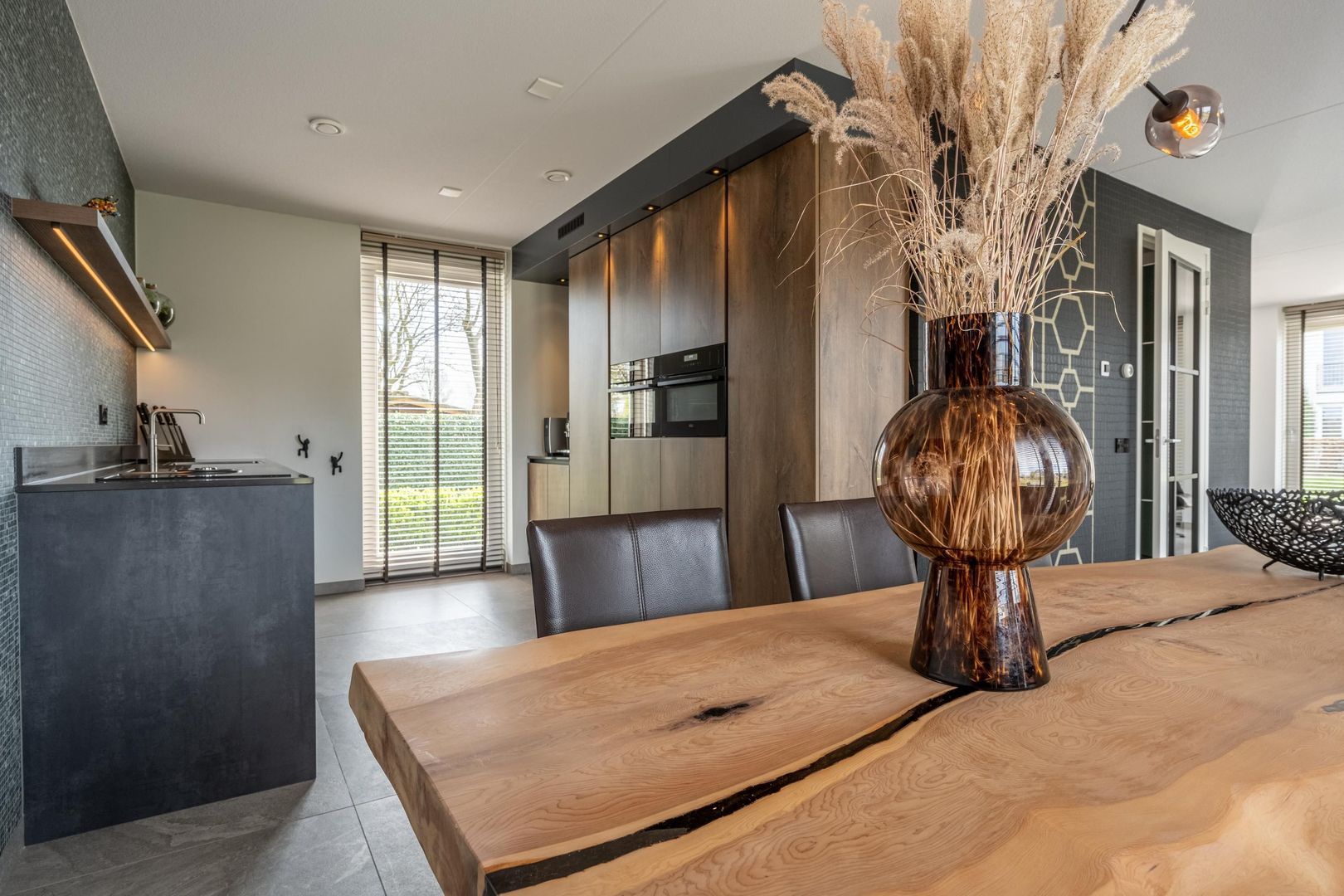 De open keuken is stoer en ingericht met een dubbele wandopstelling met complete inbouwapparatuur, waaronder een kookplaat met geïntegreerde afzuigkap, stoomoven, combimagnetron, grote koelkast met koelzone, vaatwasser en (7-liter)Quooker. Er is voldoende kastruimte en het aanrechtblad bestaat uit hoogwaardig materiaal.