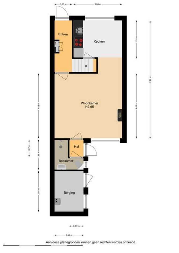 De indeling is als volgt: entree, hal met meterkast en trapopgang.