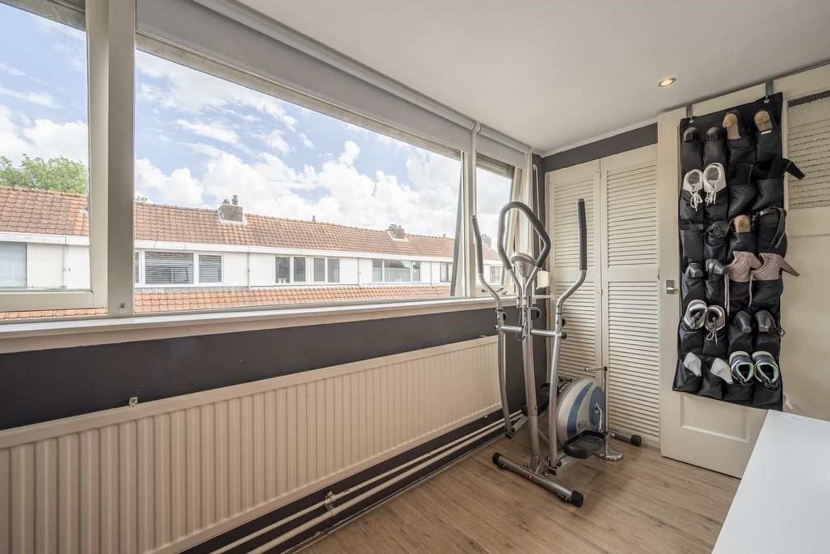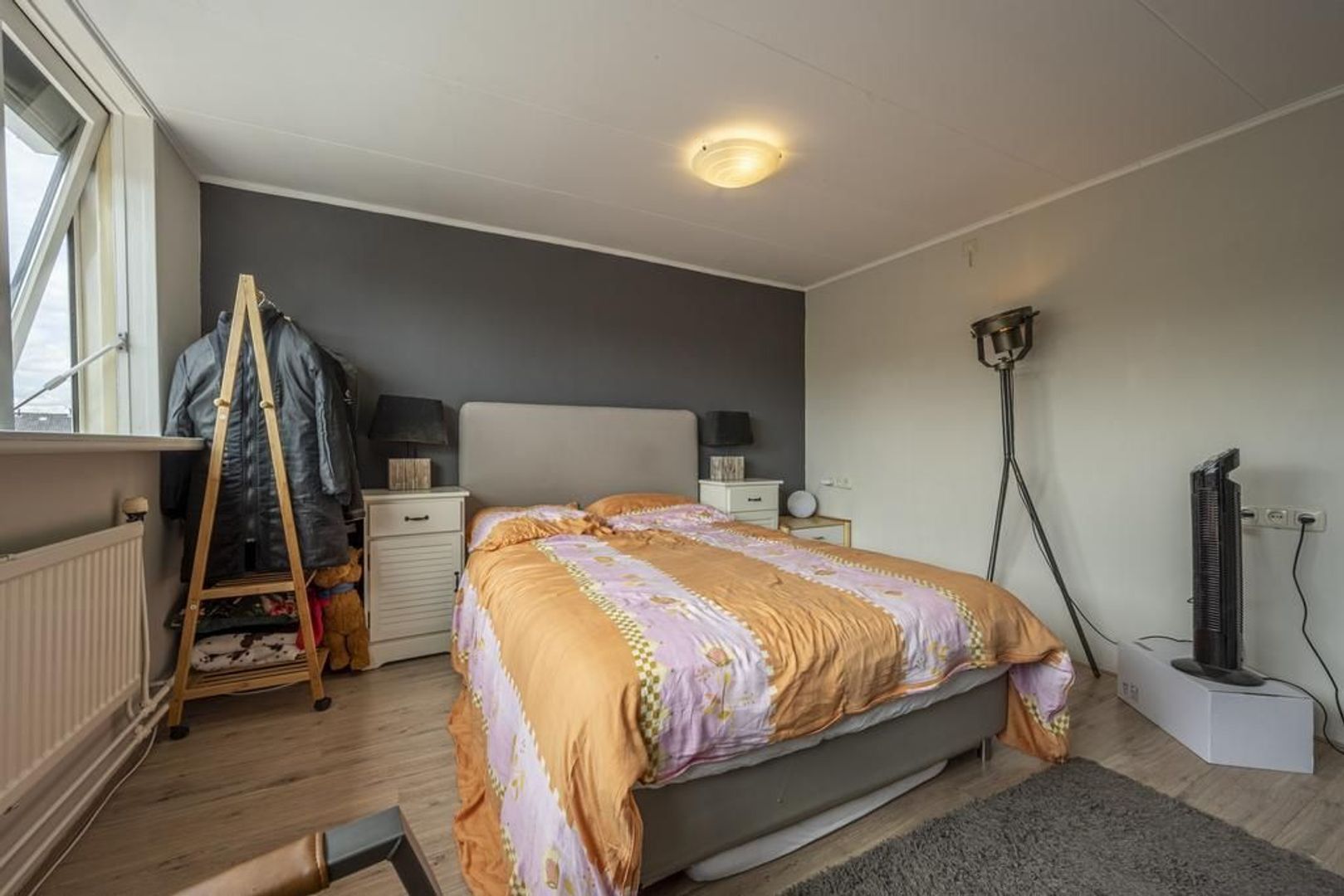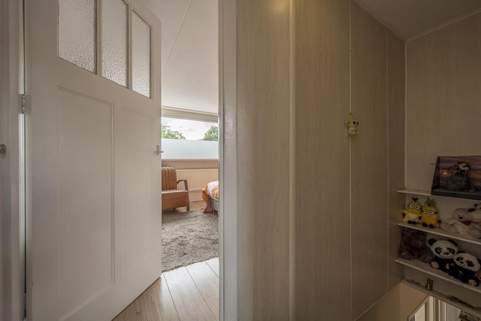 Op de verdieping zijn twee slaapkamers en diverse vaste kasten. De dakkapellen zorgen voor extra ruimte en licht, waardoor de kamers nog best ruim zijn. De vloer is afgewerkt met laminaat.