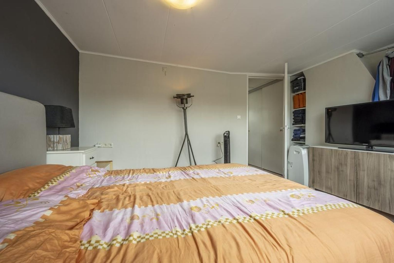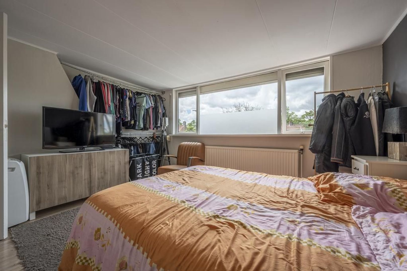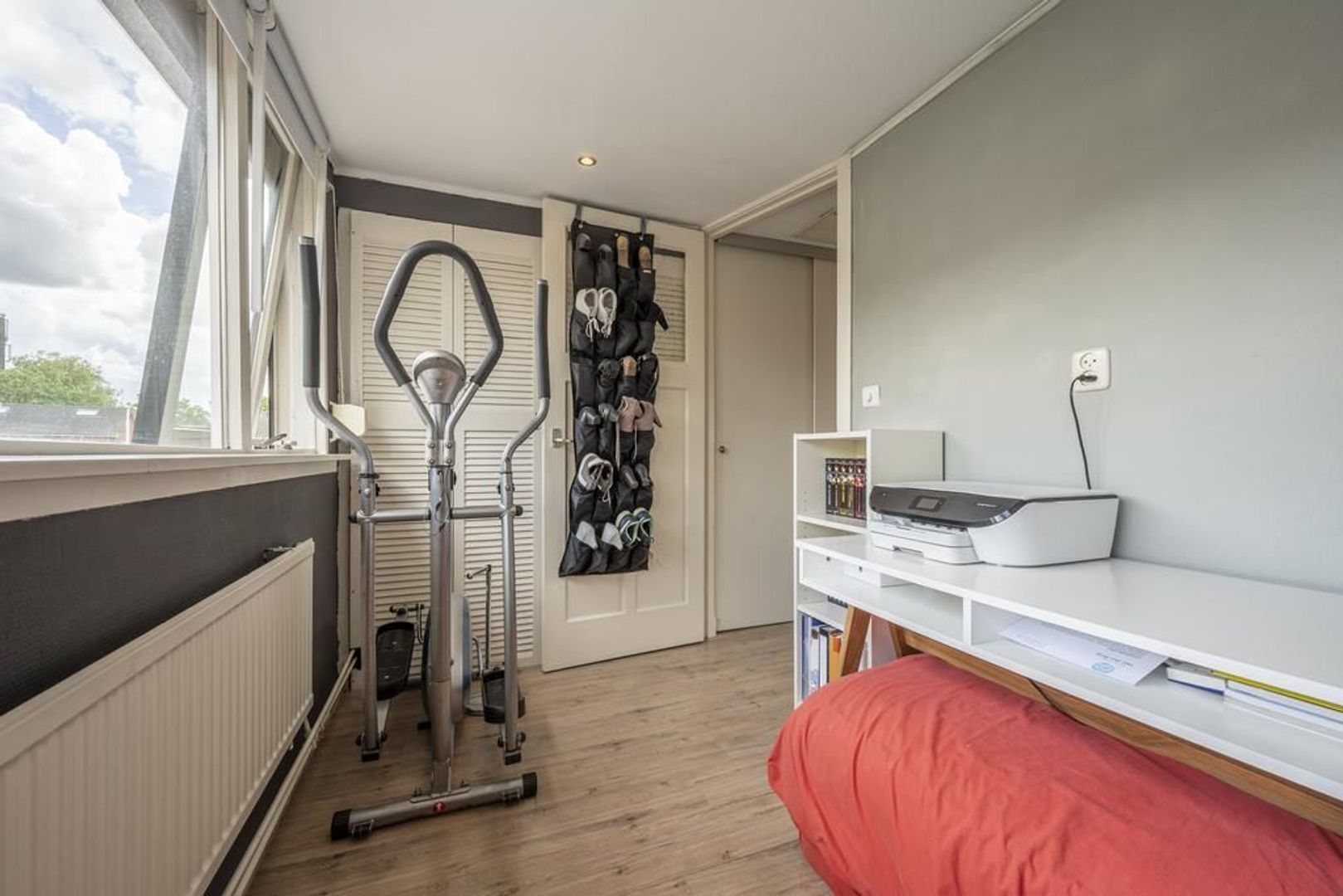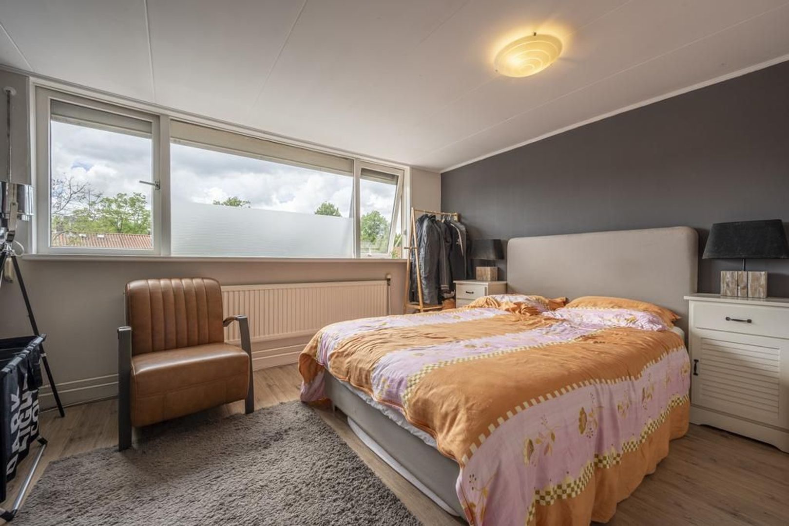 Op de verdieping zijn twee slaapkamers en diverse vaste kasten. De dakkapellen zorgen voor extra ruimte en licht, waardoor de kamers nog best ruim zijn. De vloer is afgewerkt met laminaat.
